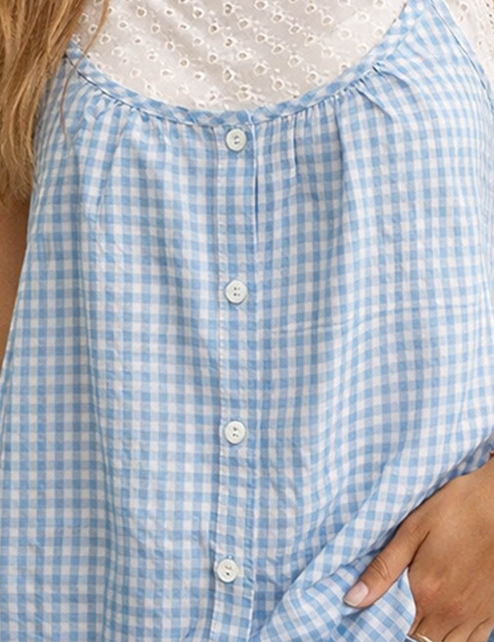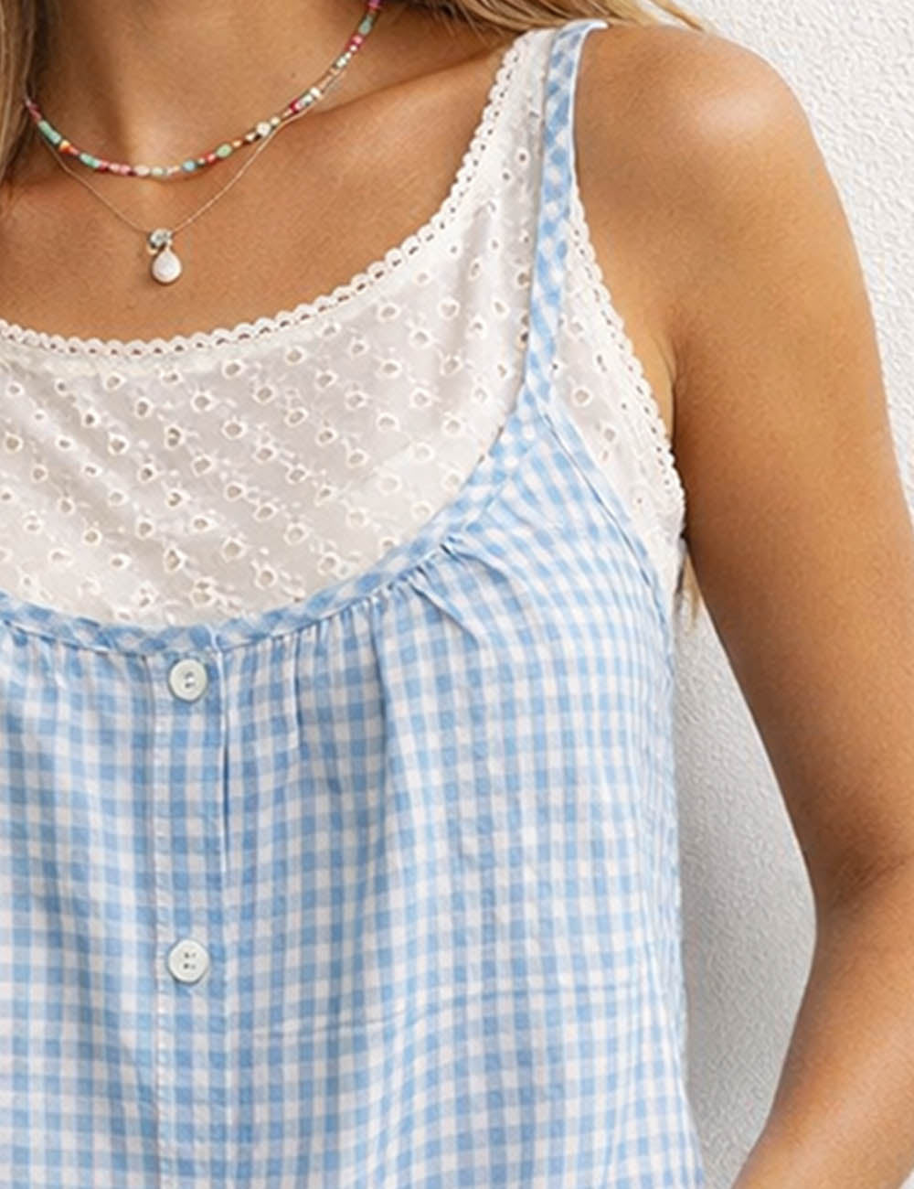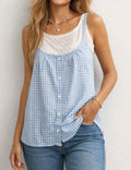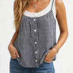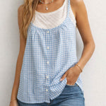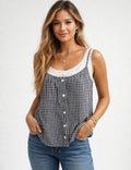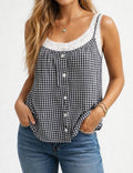 Ladies Checked Button Front Two-Piece Sleeveless Cami Top