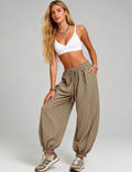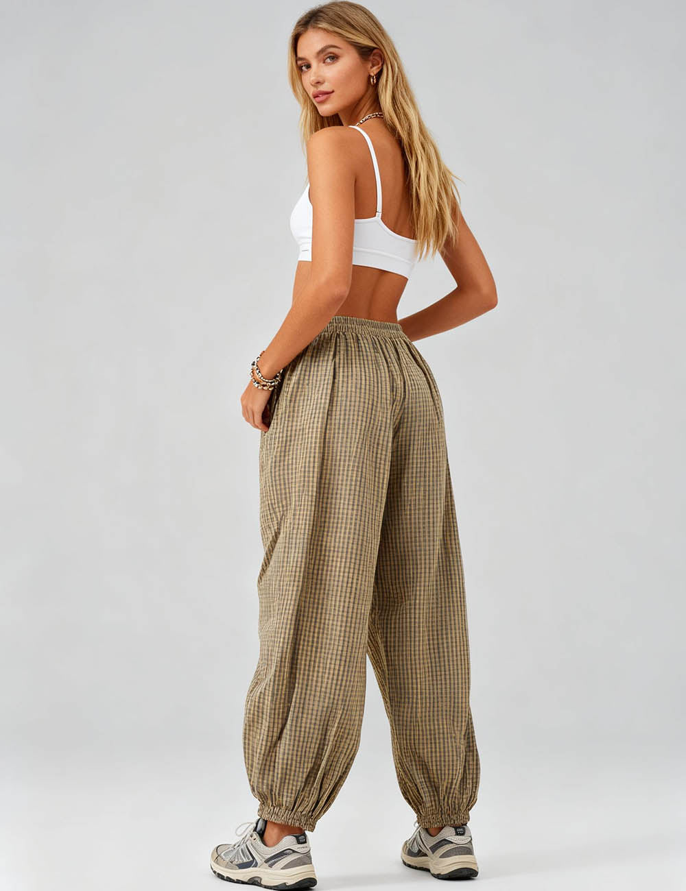 Ladies Checked Elastic Waist Drawstring Lantern Pants