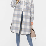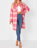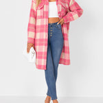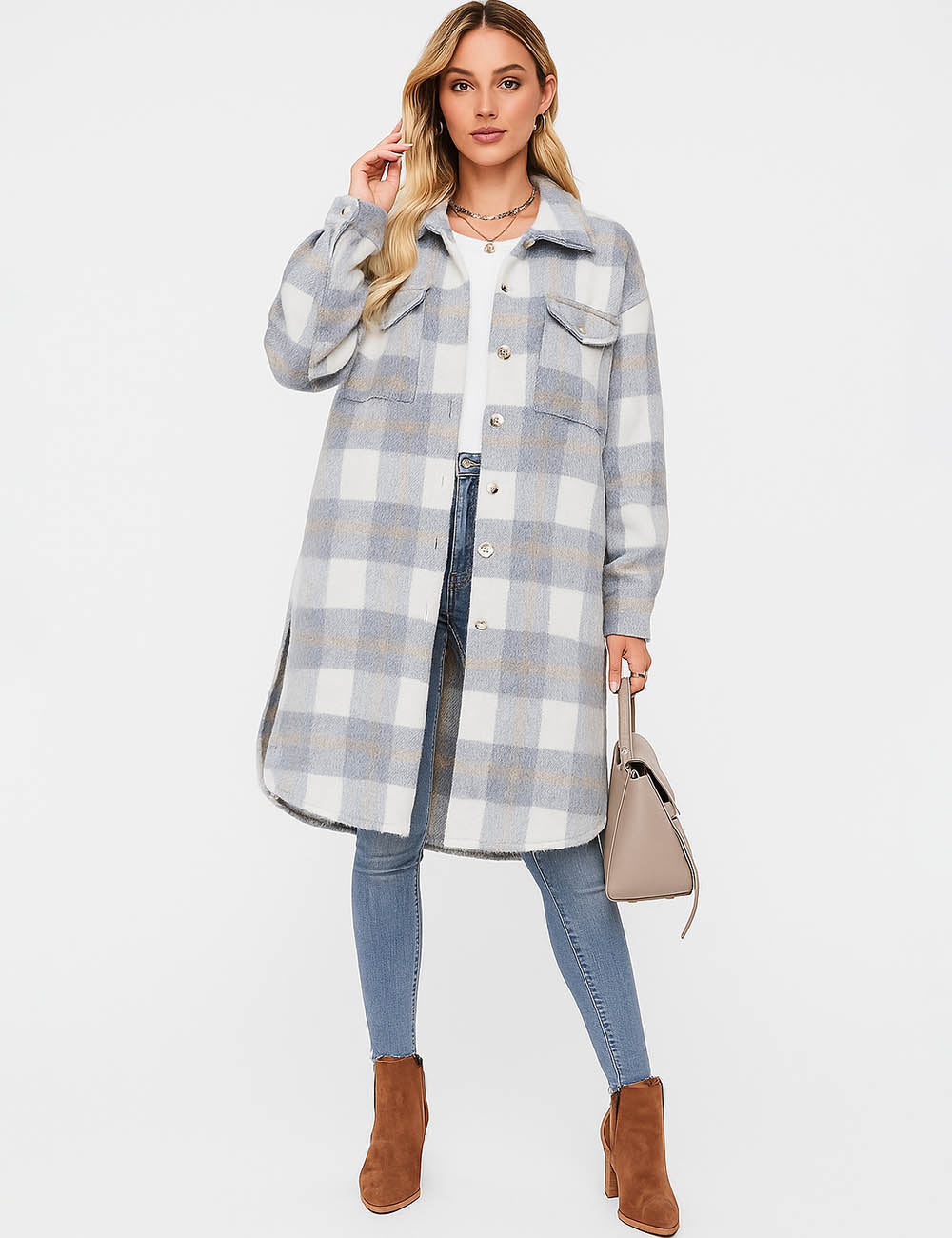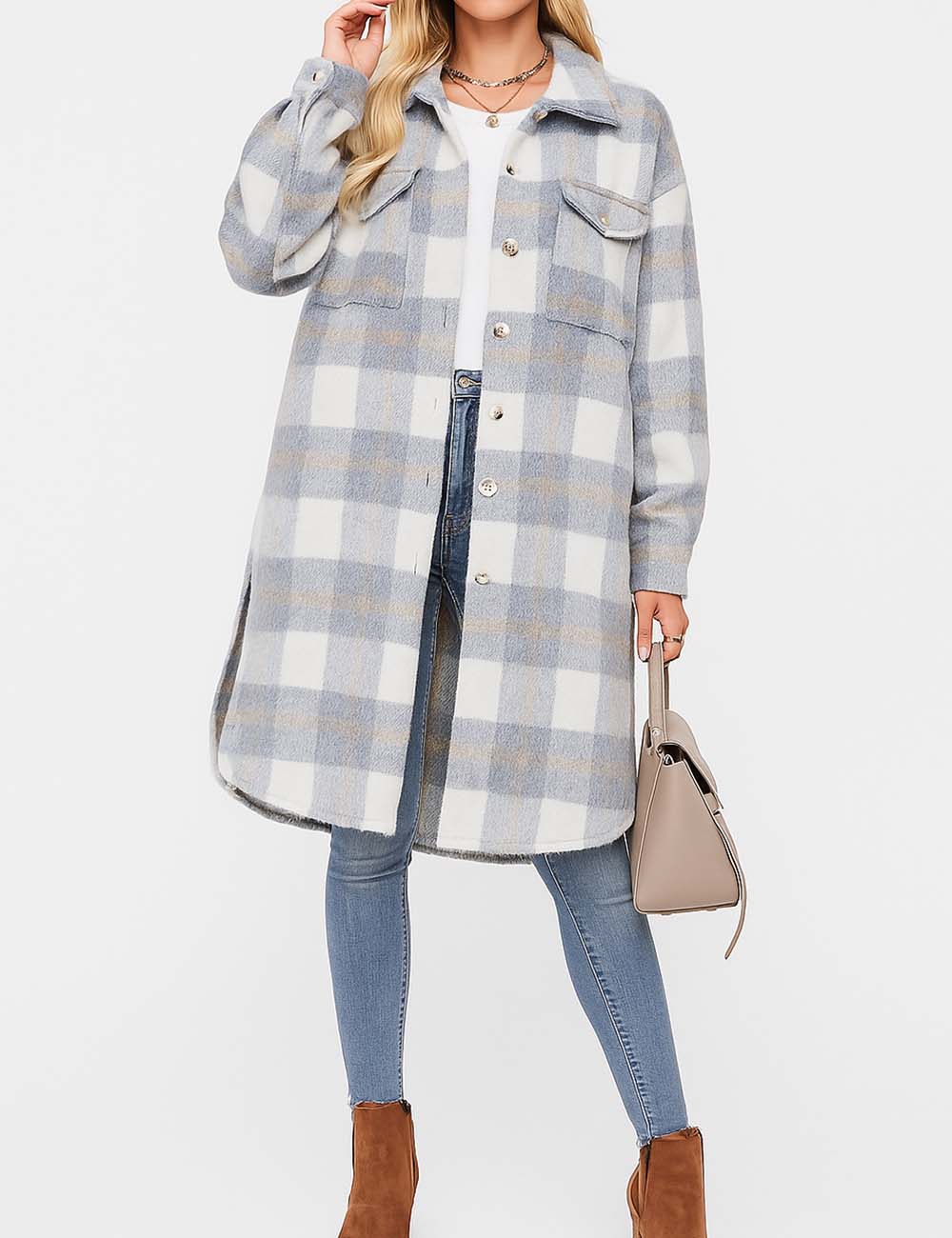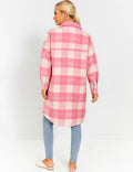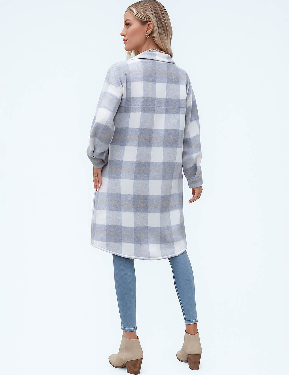 Ladies Checked Shirt Button Down Flap Pocket Mohair Coat