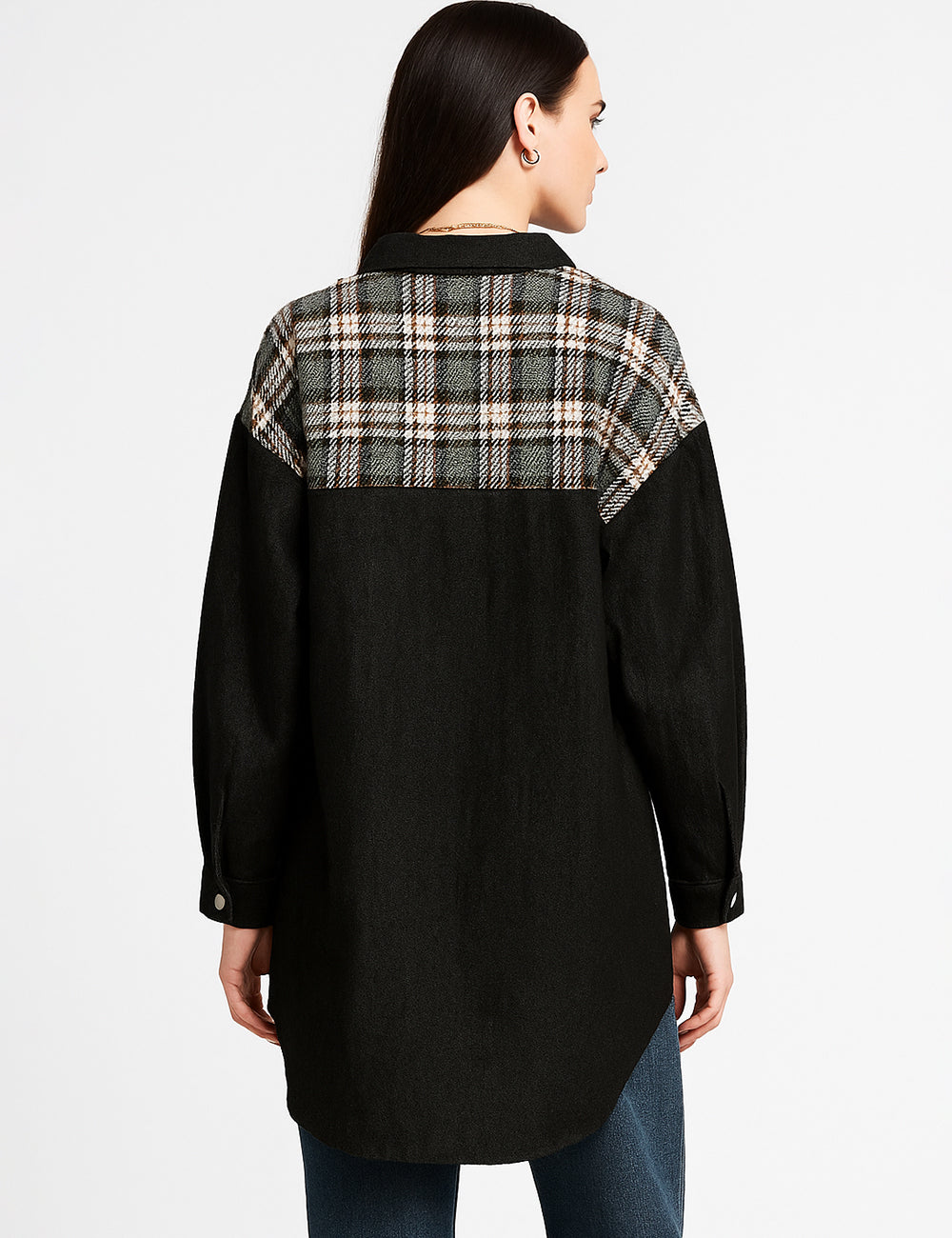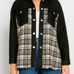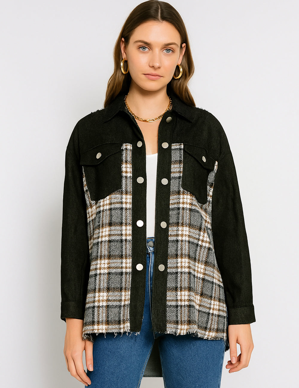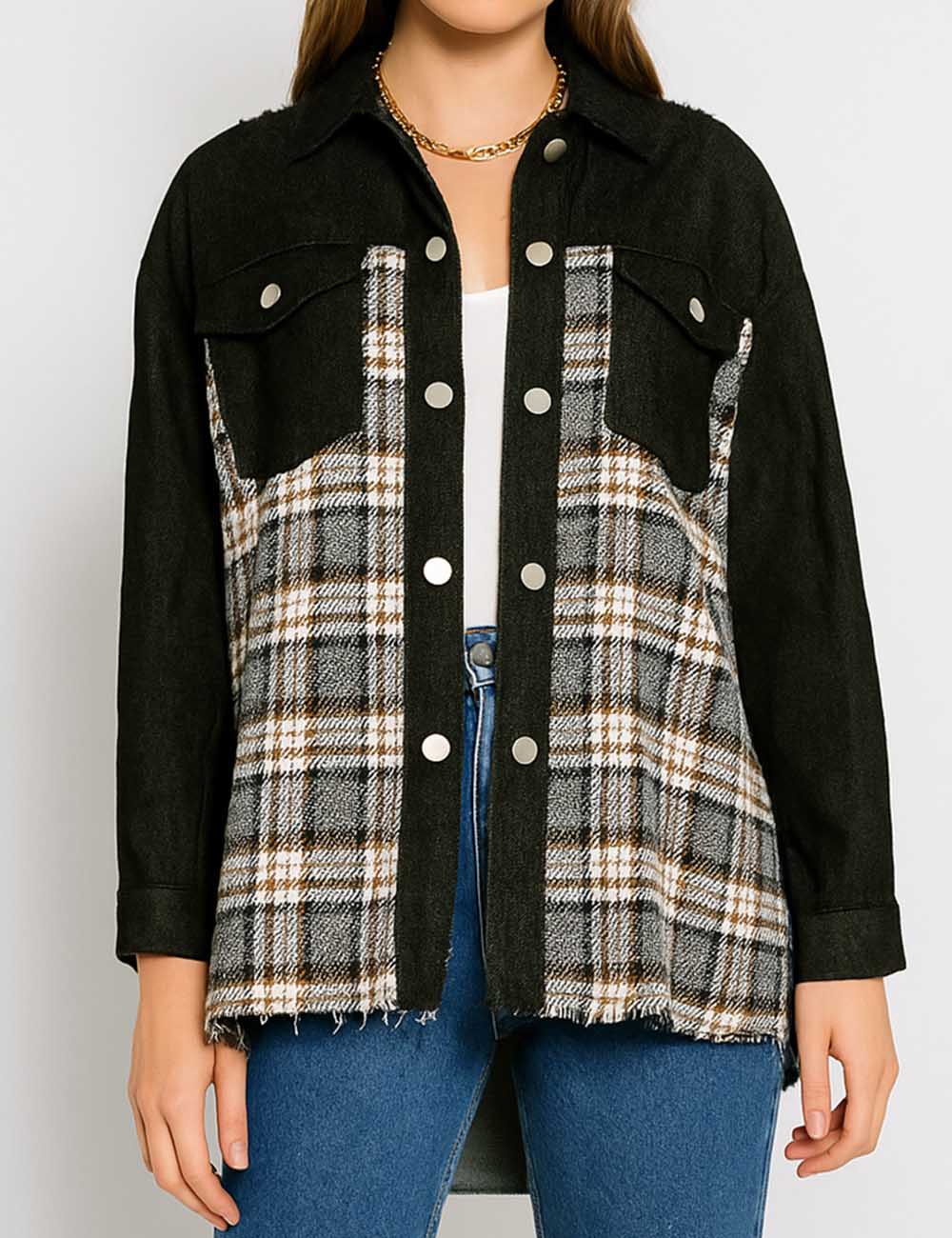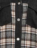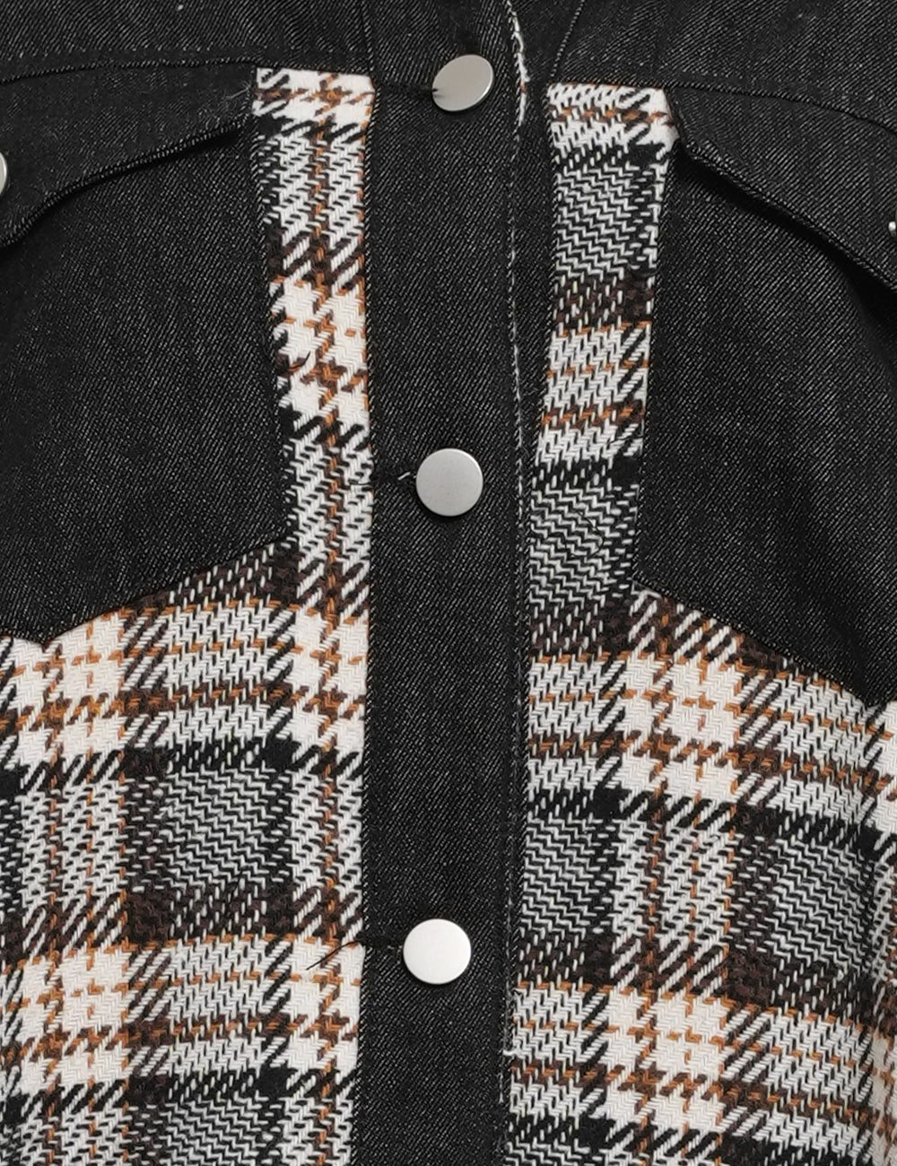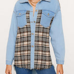 Ladies Plaid Patchwork Button Down Denim Jacket