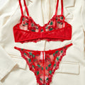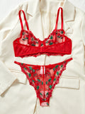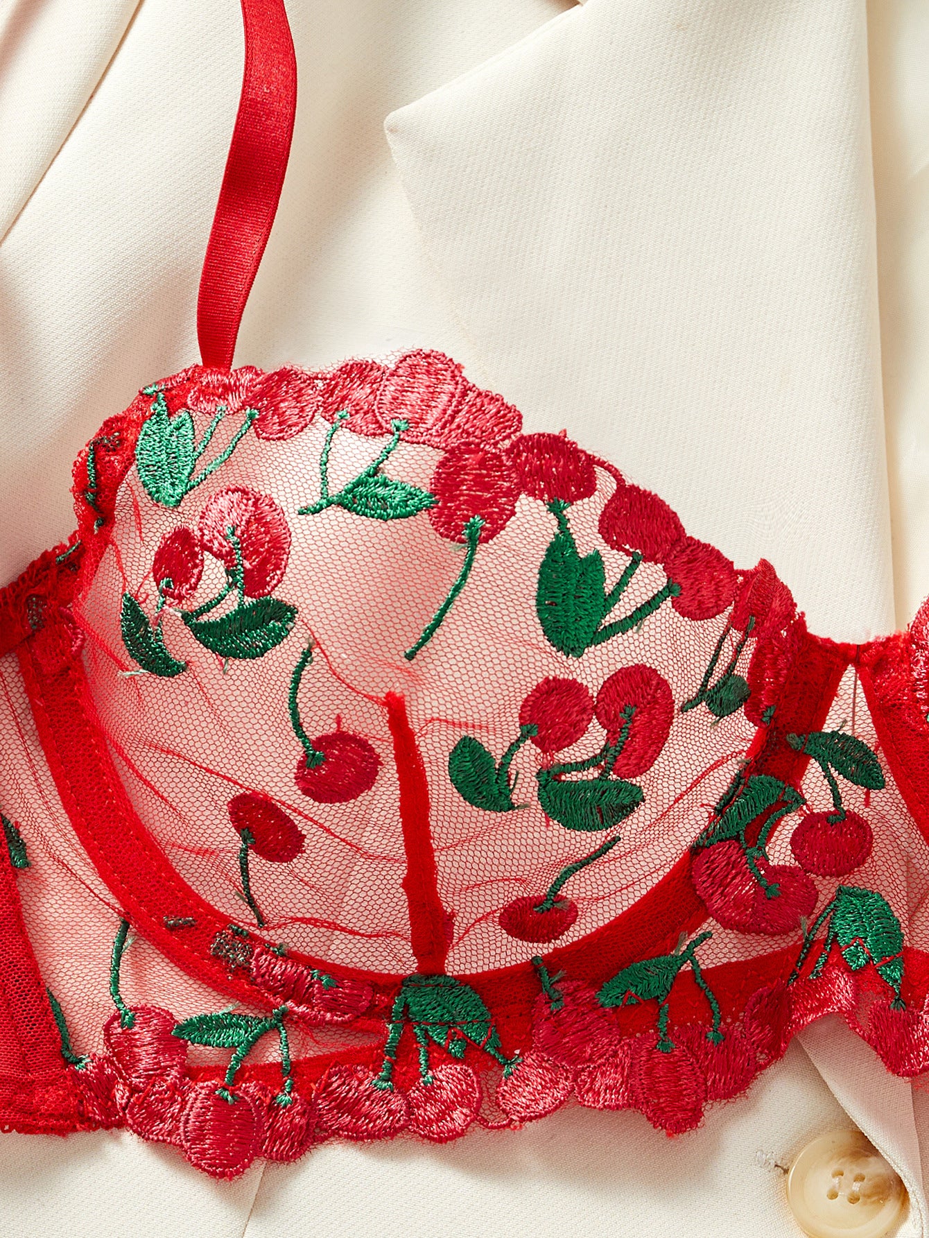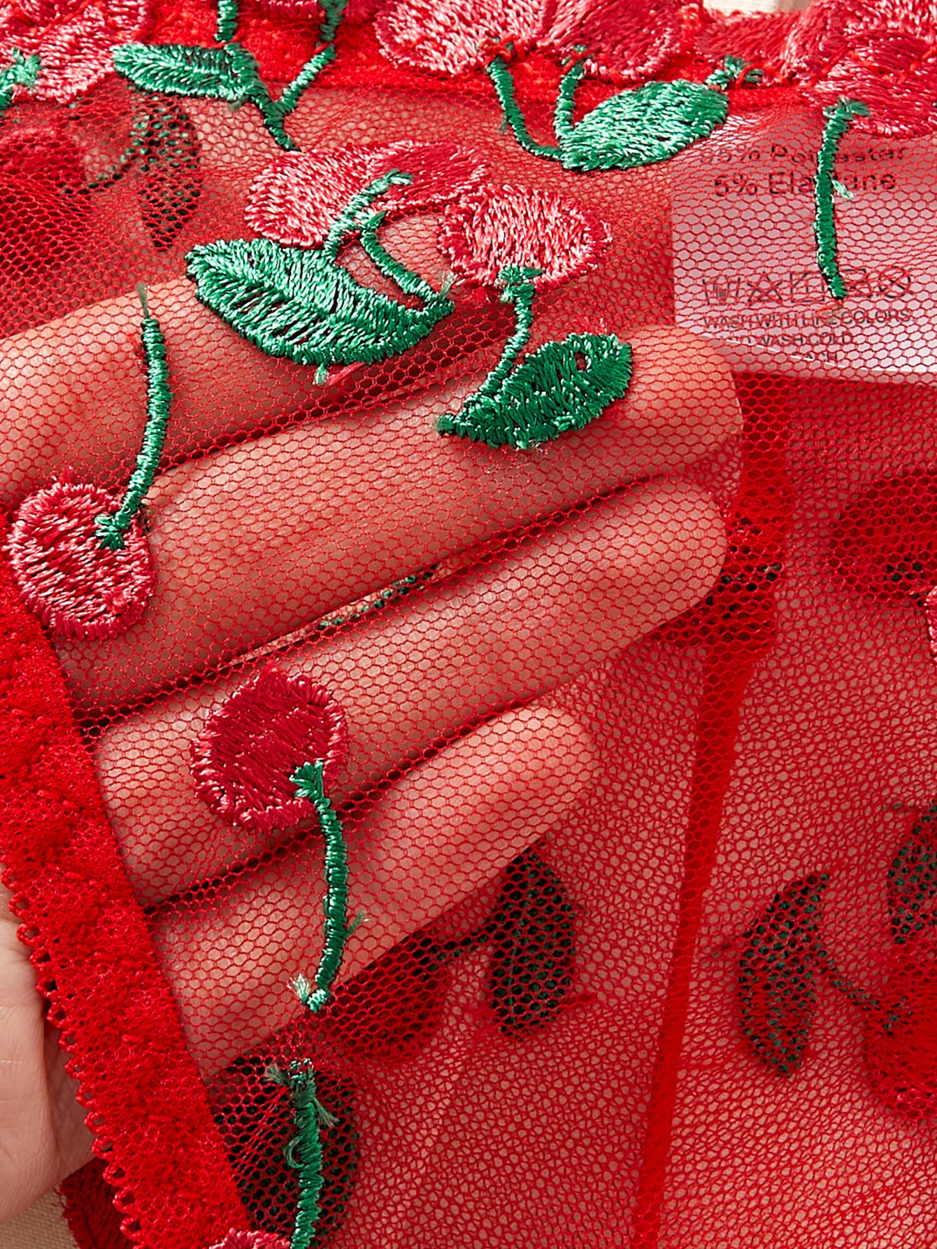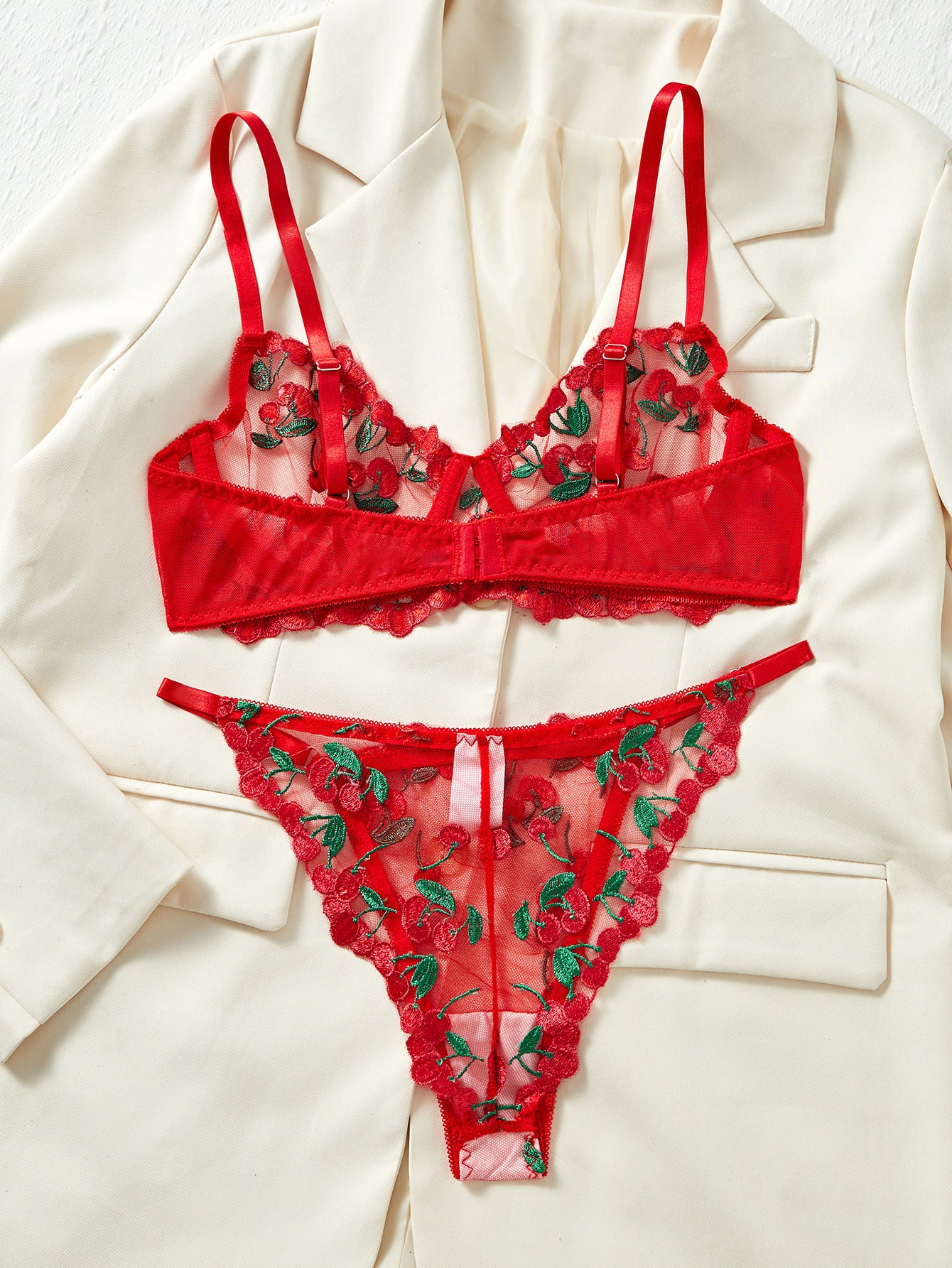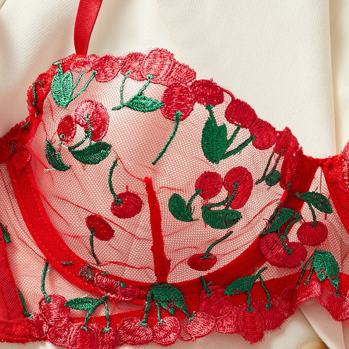 Ladies Cherry Embroidery 2PCS Lingerie Set SKLG4136