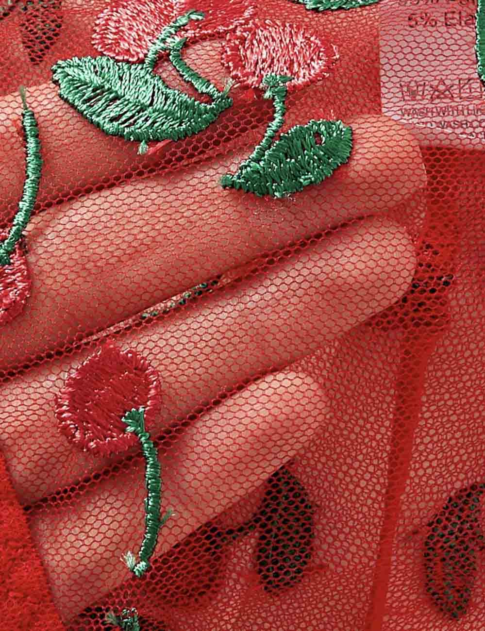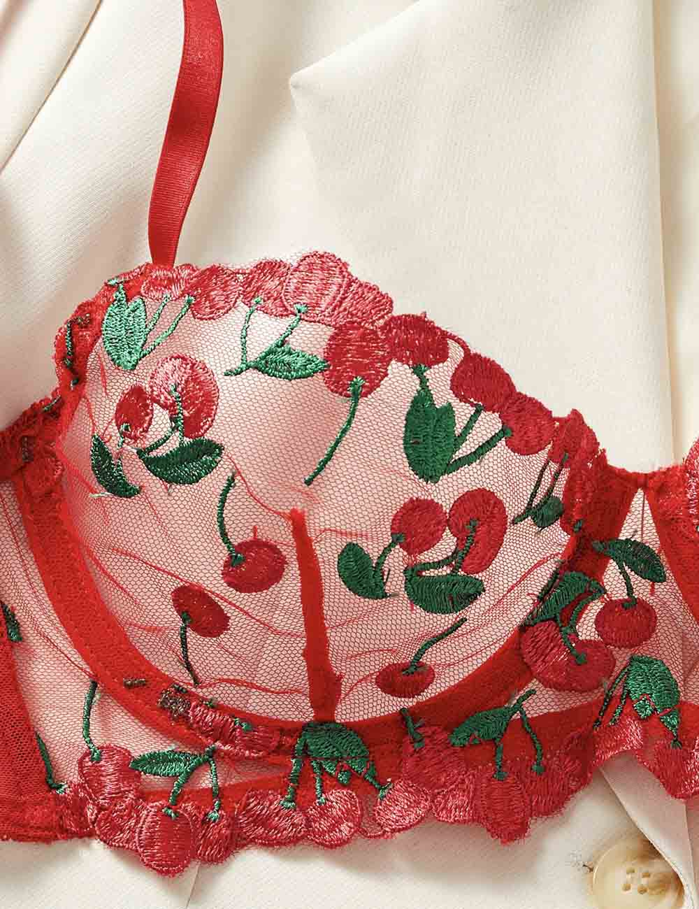 Ladies Cherry Embroidery See Through 2PCS Lingerie Set 8XX0038