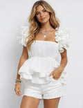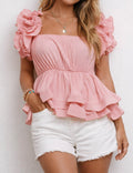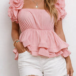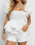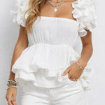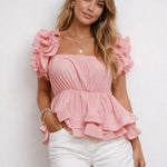 Ladies Chic 3D Ruffle Square Neck Babydoll Top