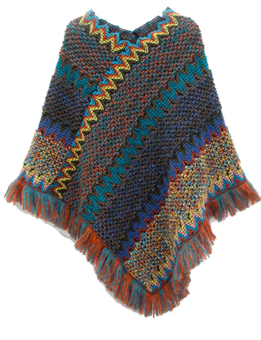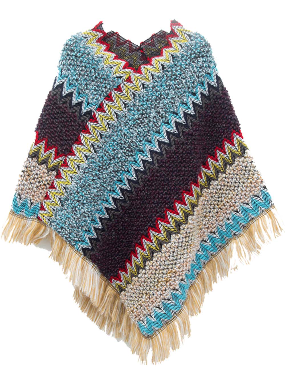 Ladies Chic Colorful Ethnic Knit Tassel Shawl