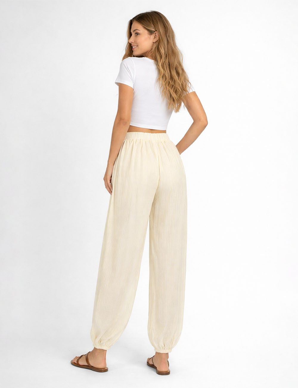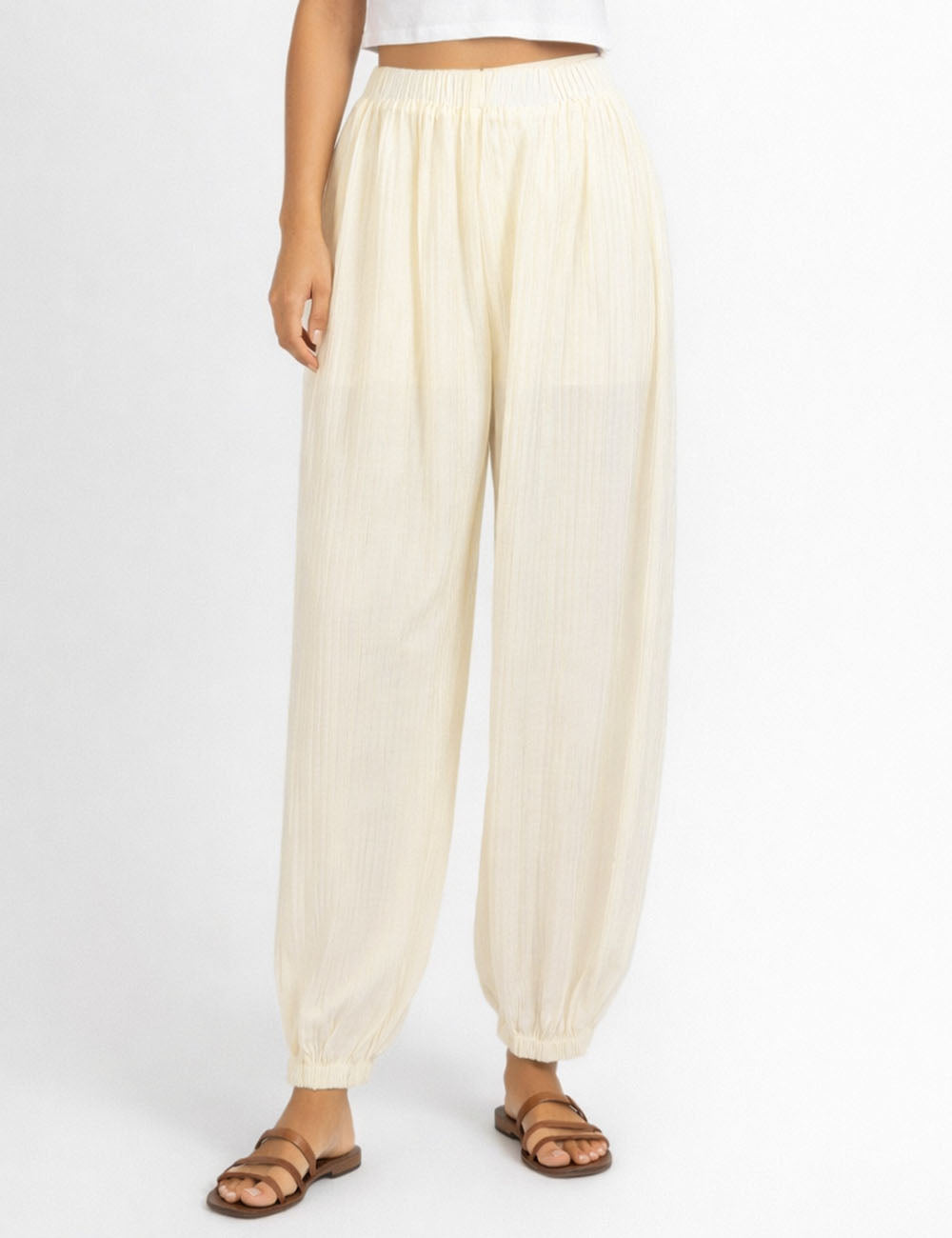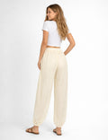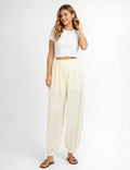 Ladies Chic Crinkle Solid Color Elastic Cuff Balloon Pants