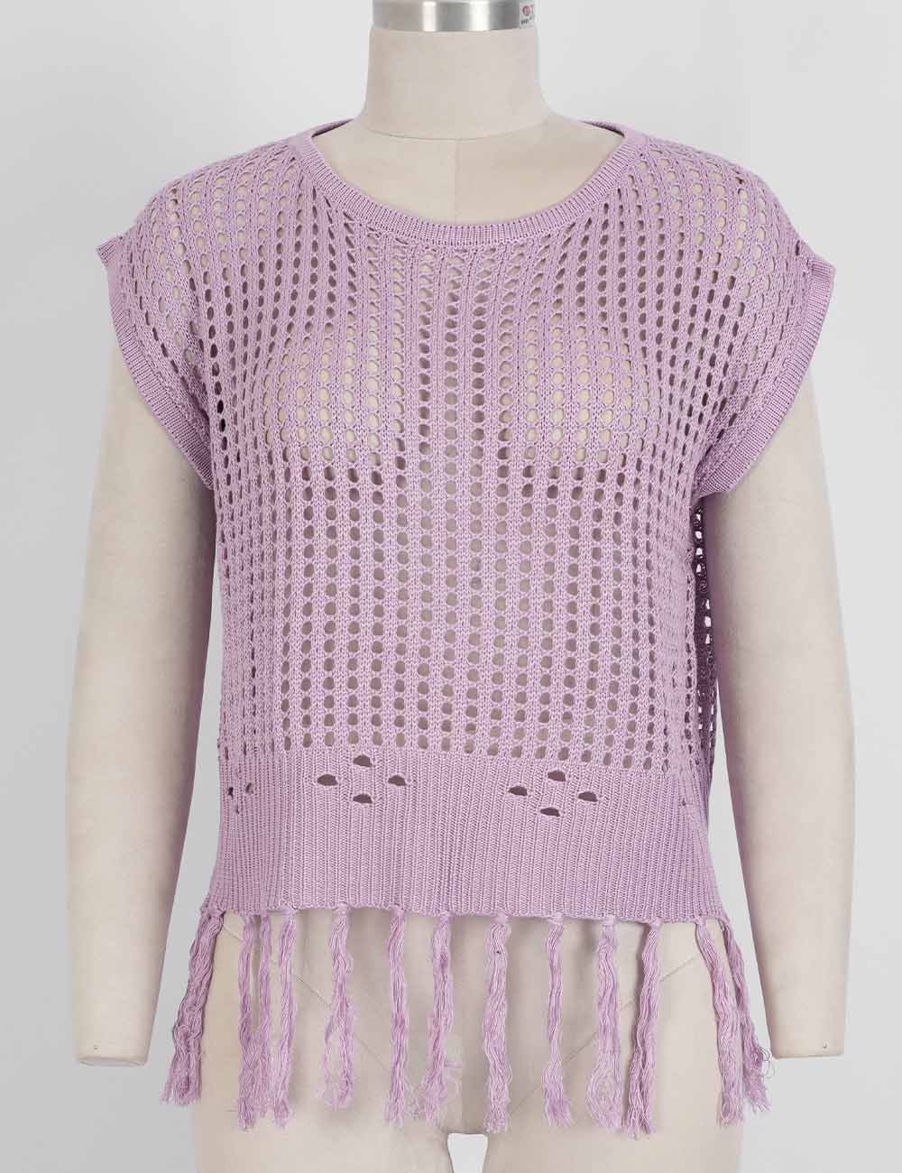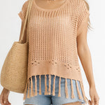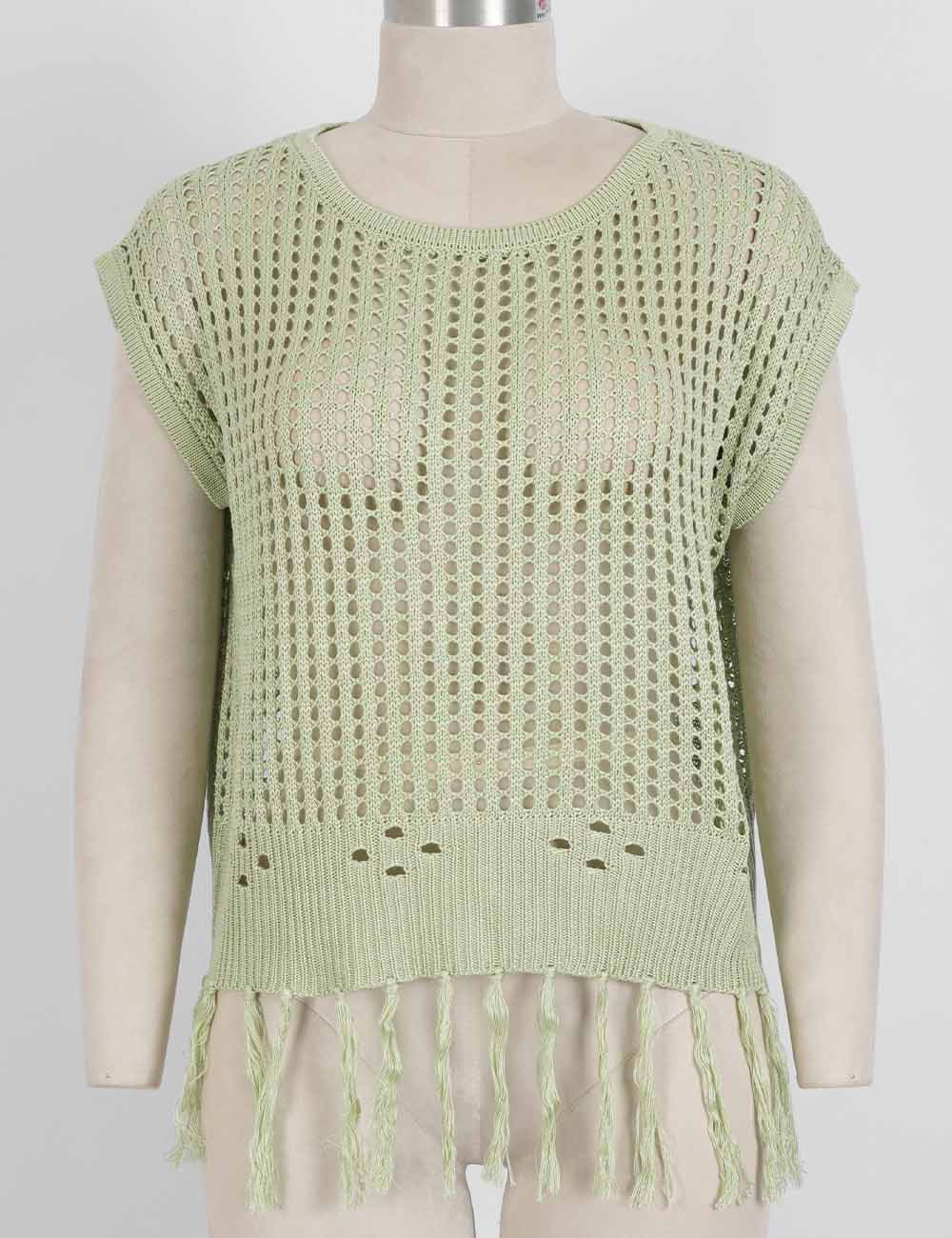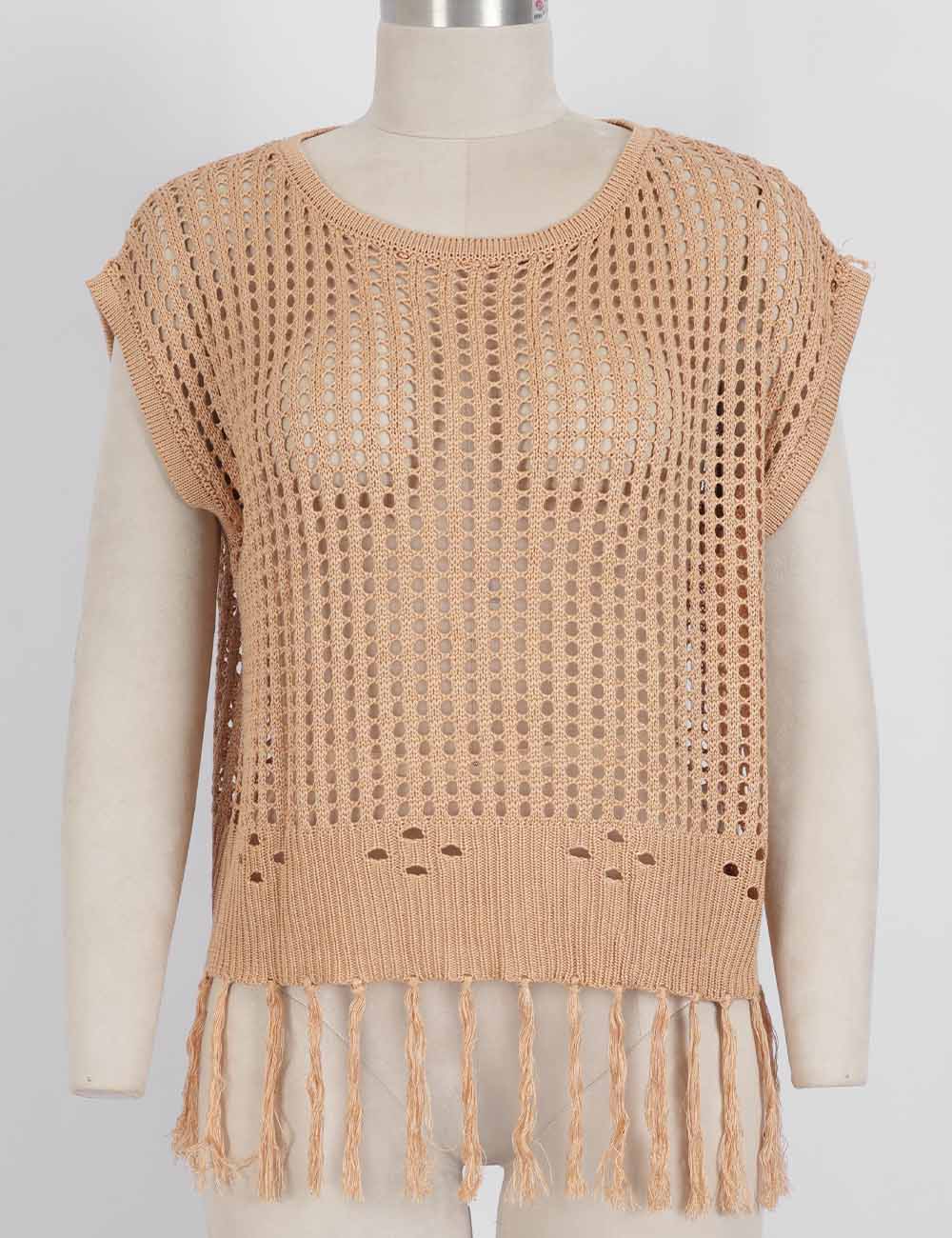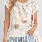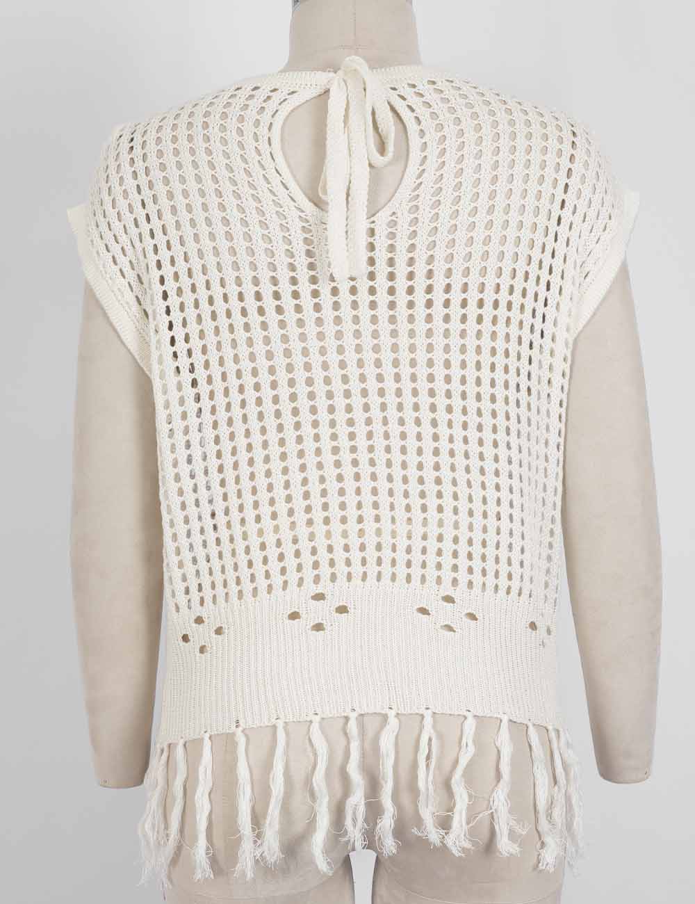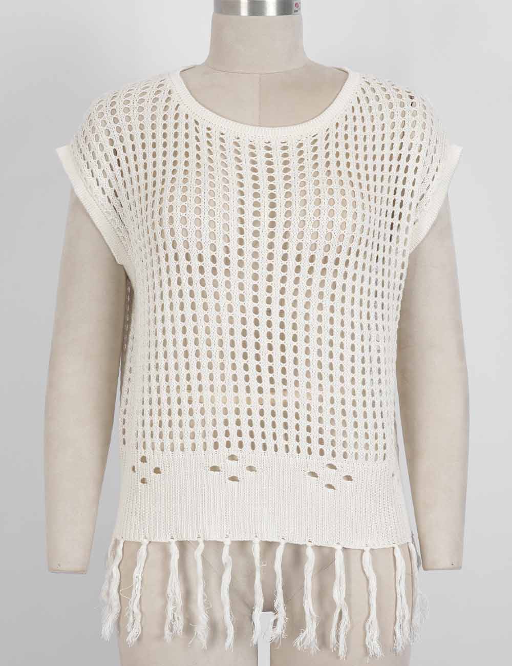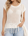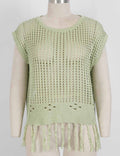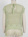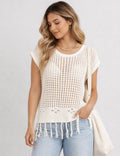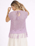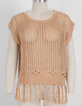 Ladies Chic Crochet Knit Hollow-Out Fringe Cover-Up Top
