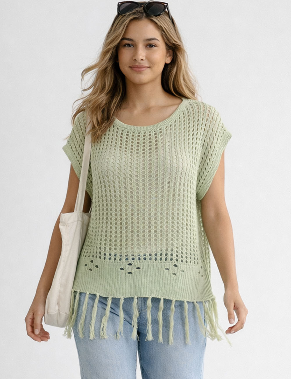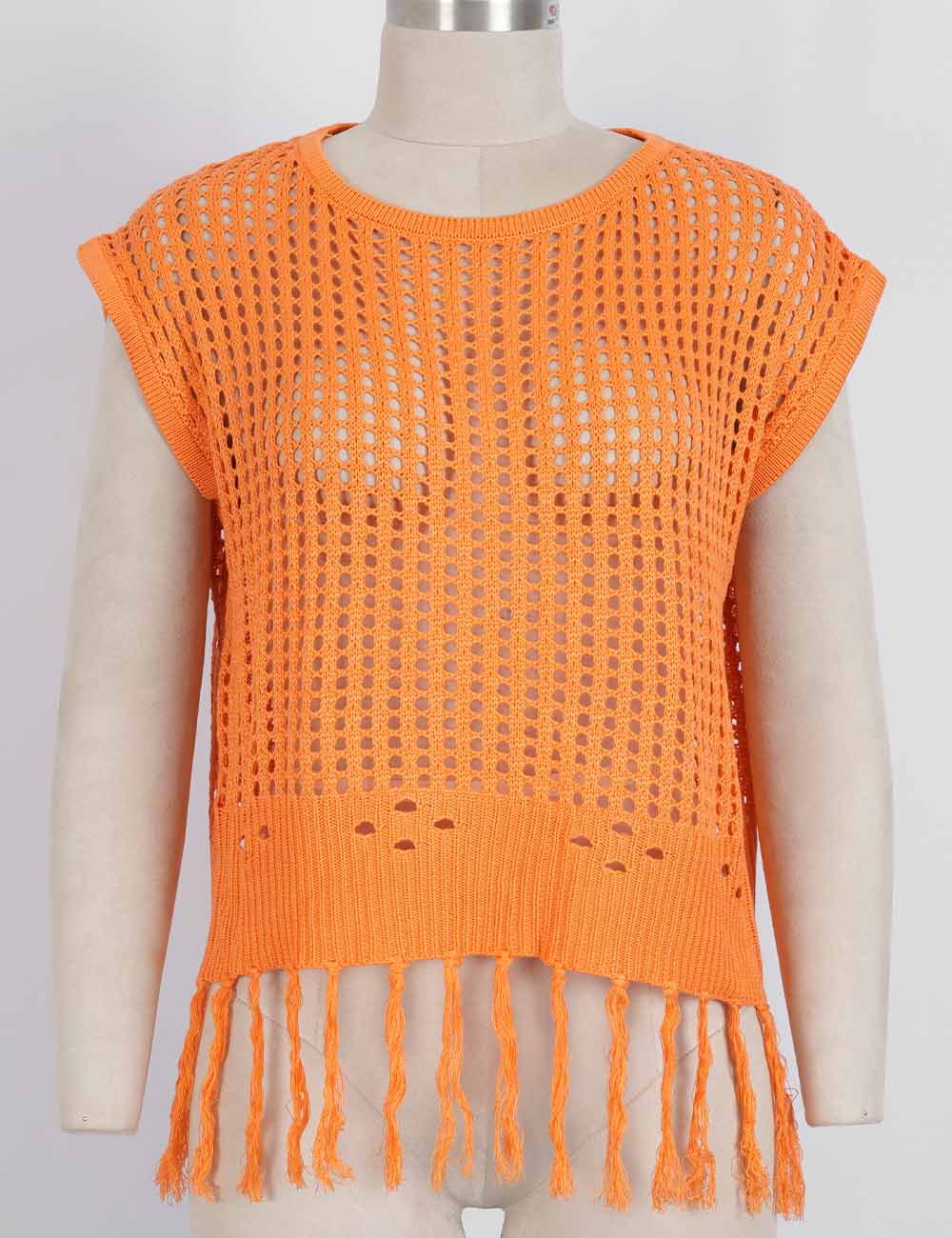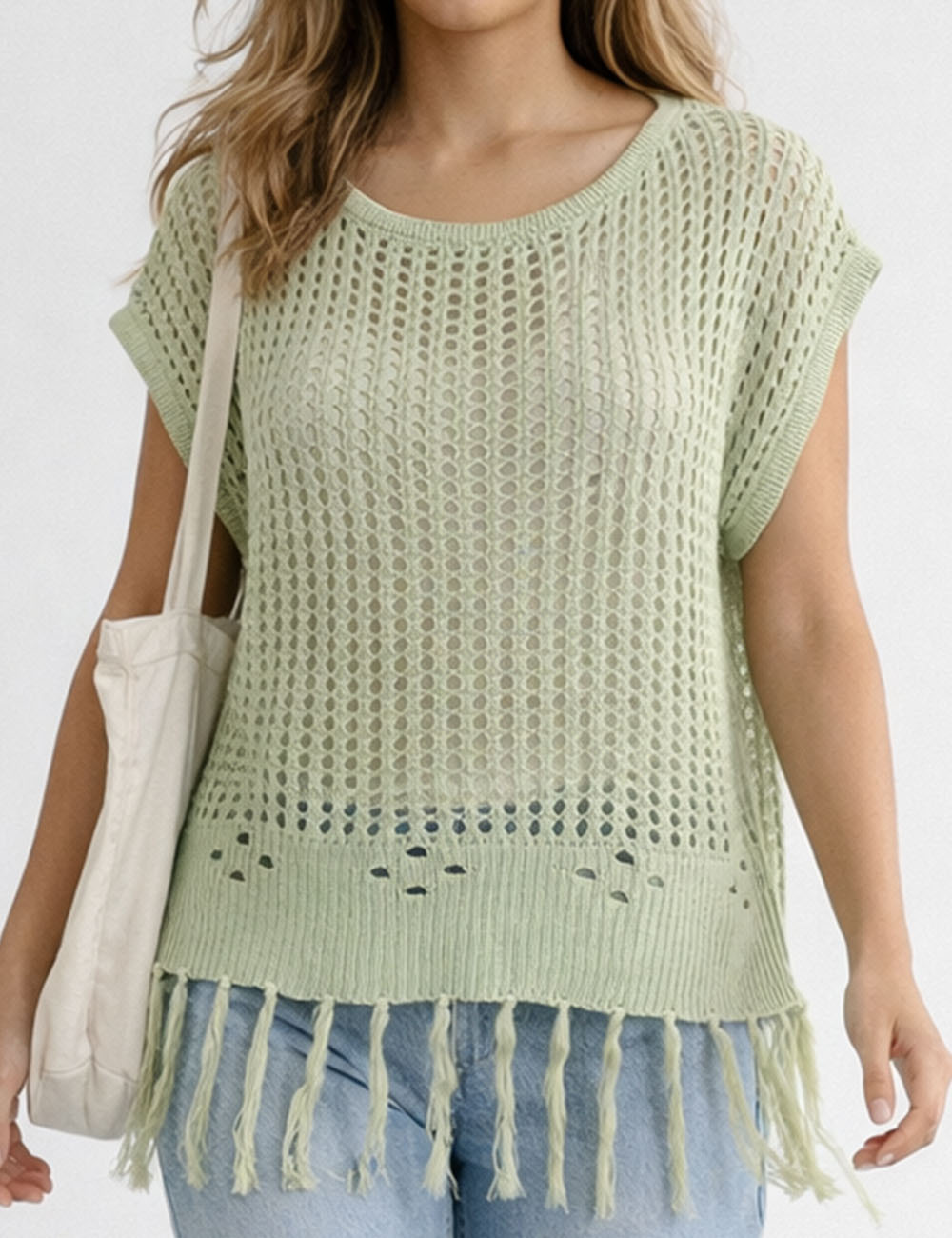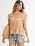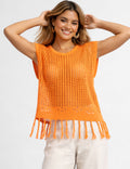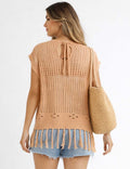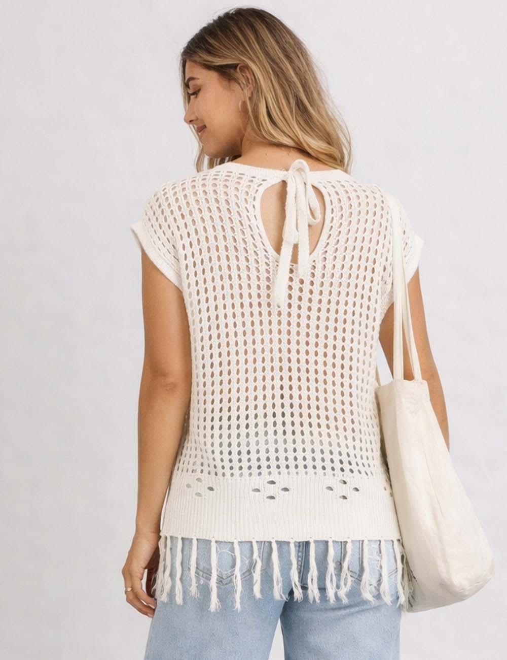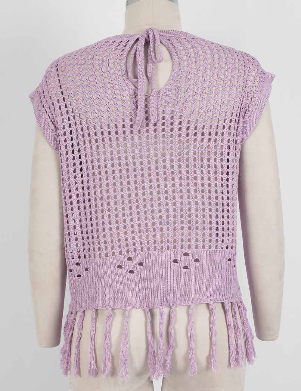 Ladies Chic Crochet Knit Hollow-Out Fringe Cover-Up Top