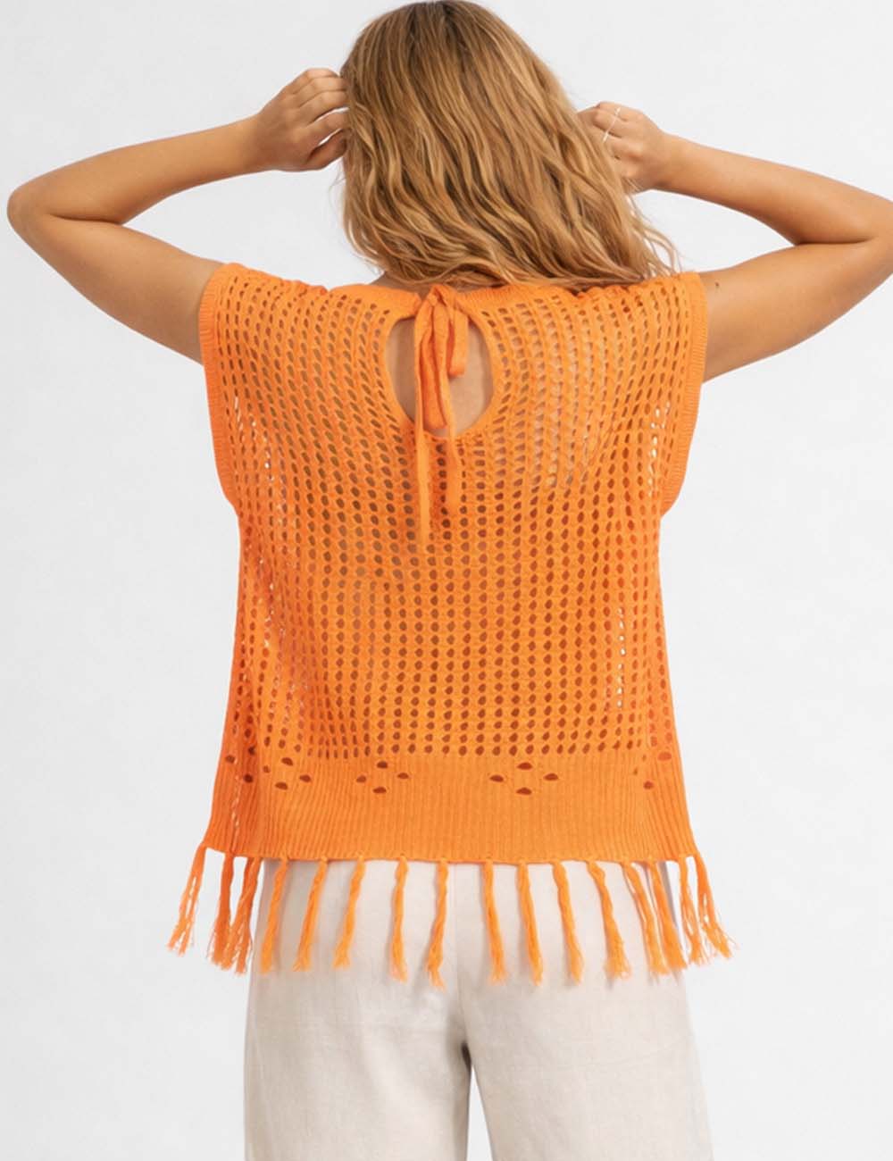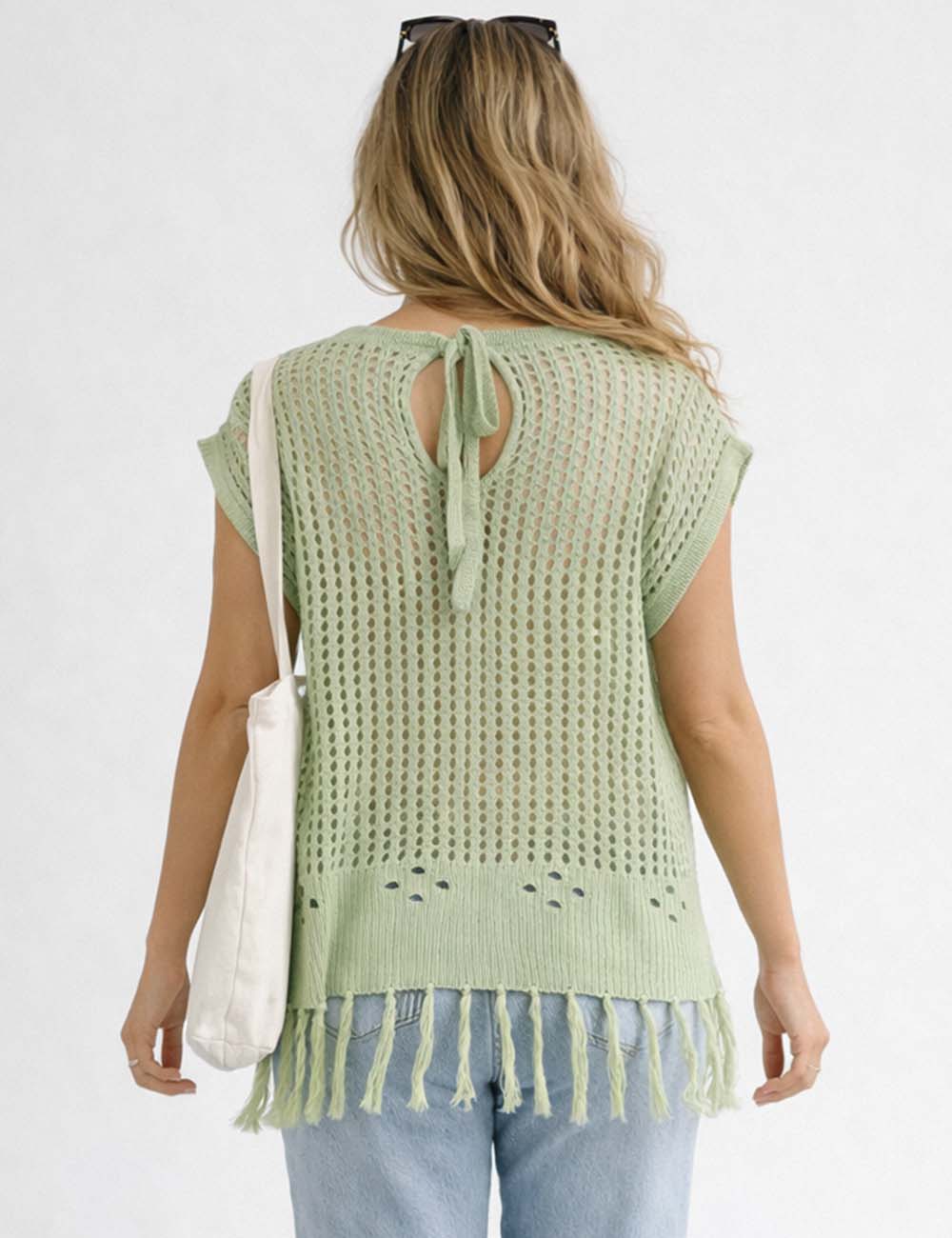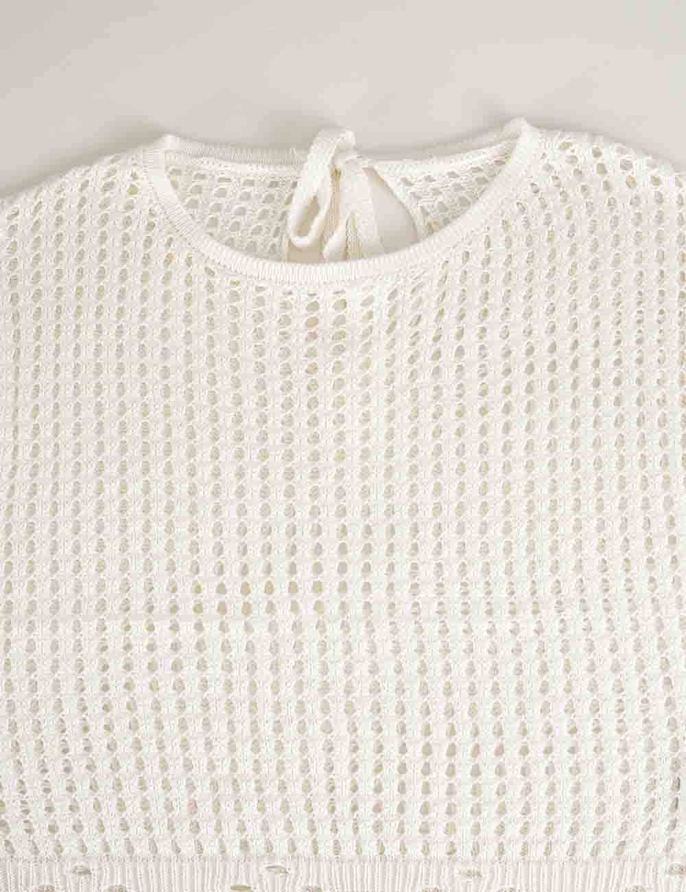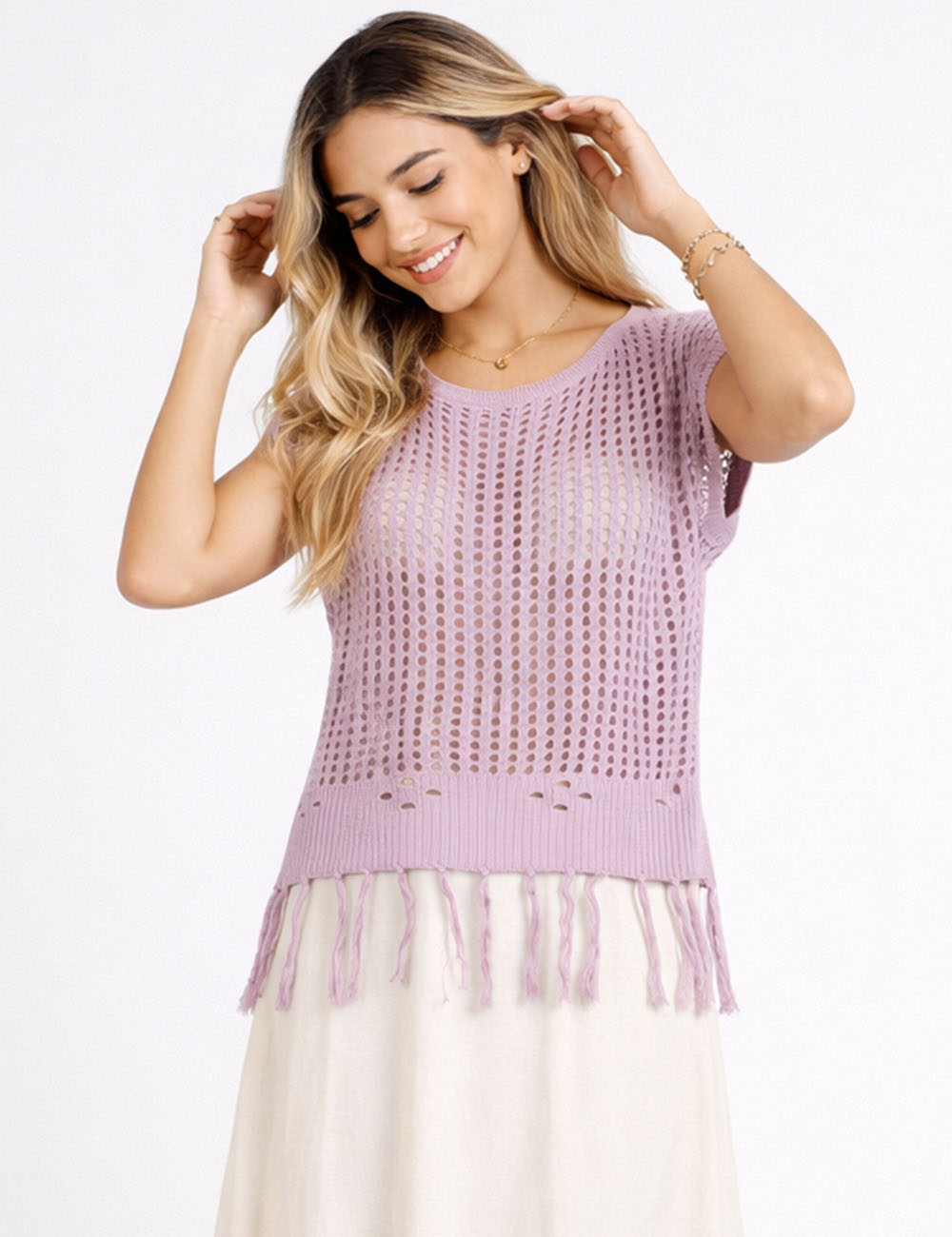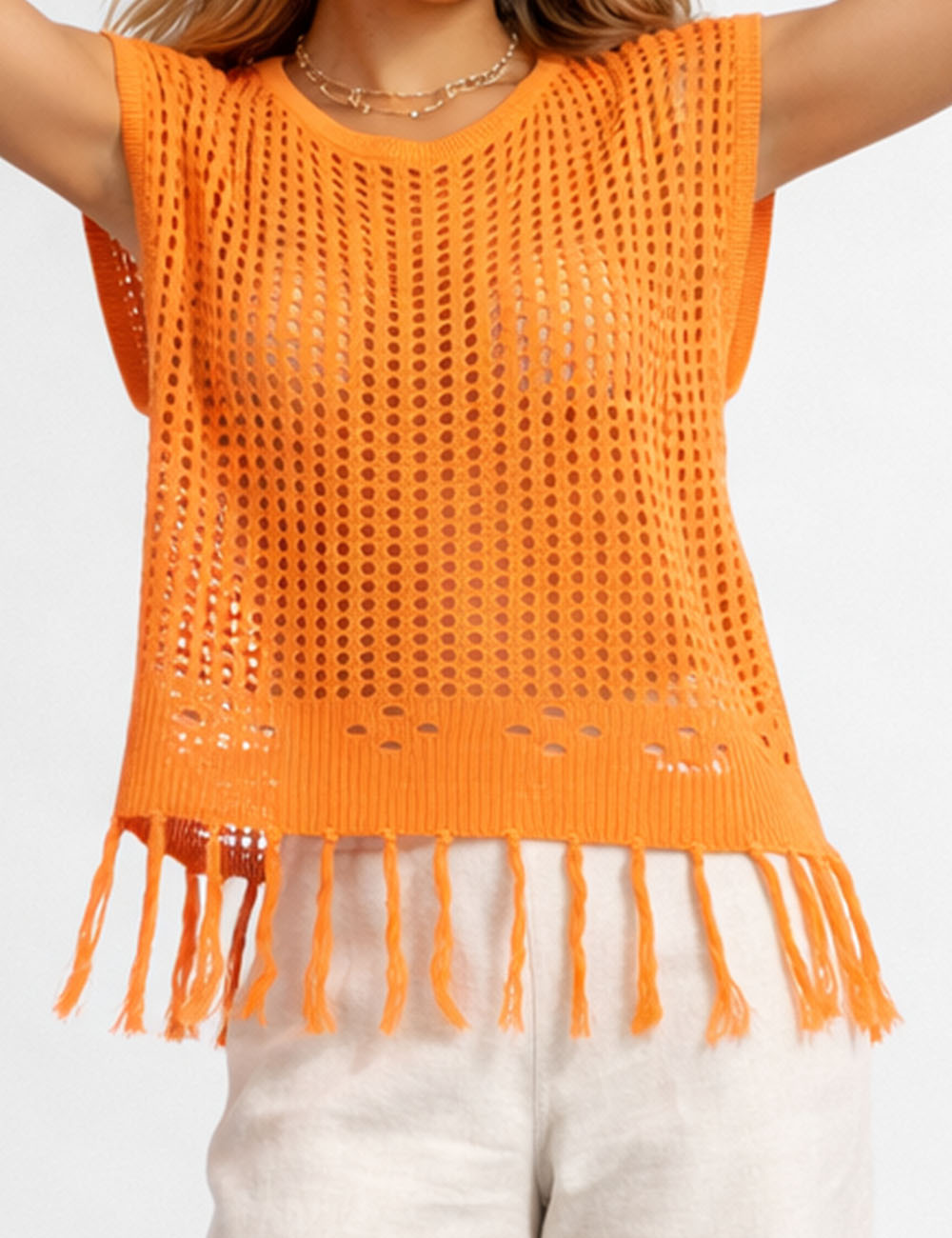 Ladies Chic Crochet Knit Hollow-Out Fringe Cover-Up Top