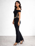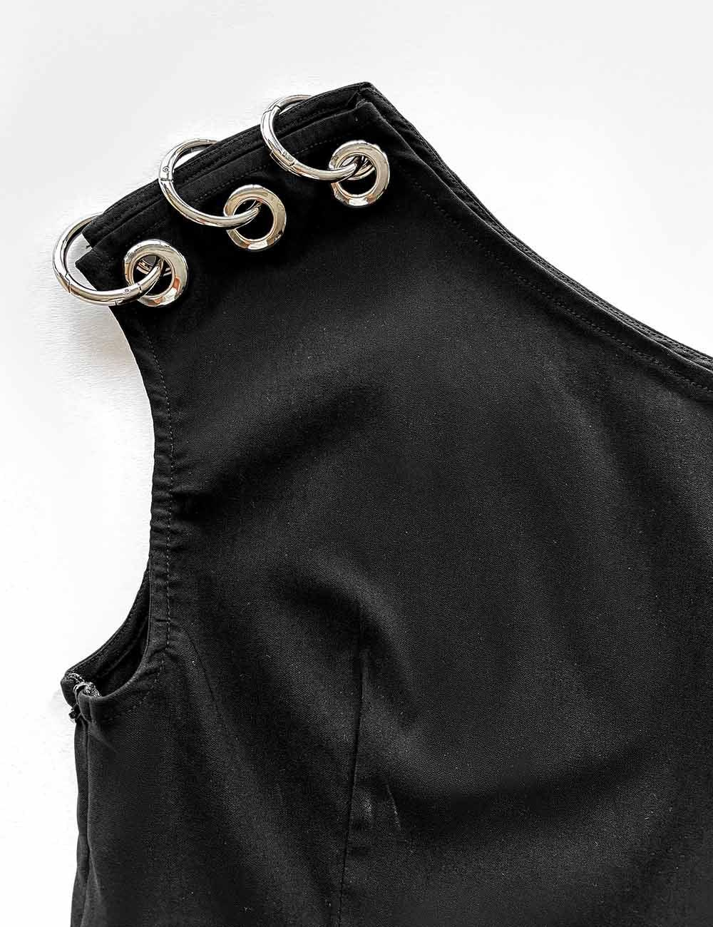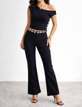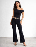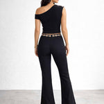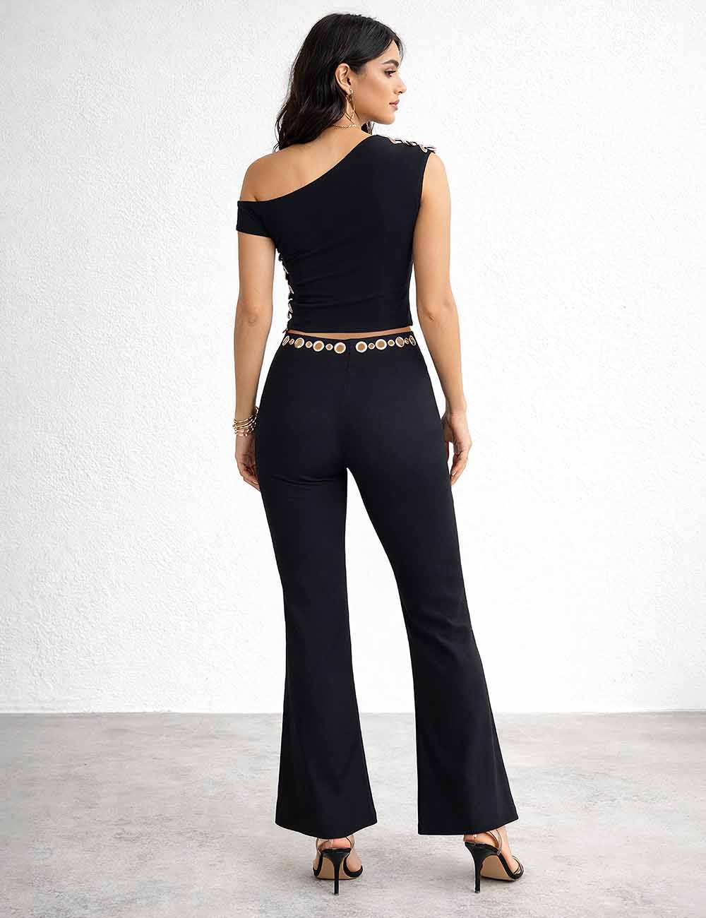Ladies Chic Metal Eyelet One Shoulder Top & Pants Matching Set