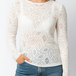 Ladies Chic See Sheer Layering Rhombus Pullover Mesh Top