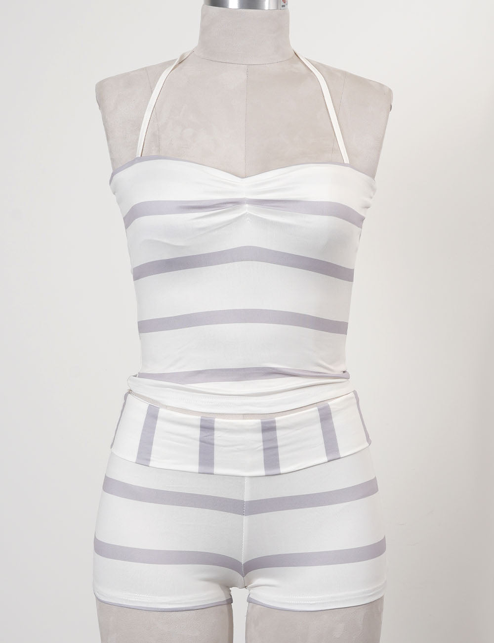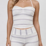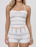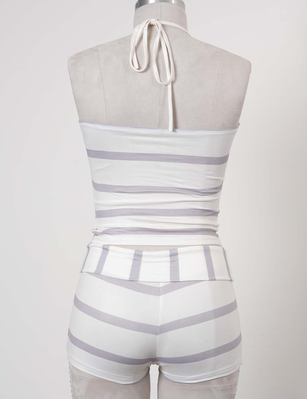 Ladies Chic Striped Halter Top & Foldover Shorts Matching Set
