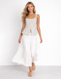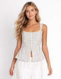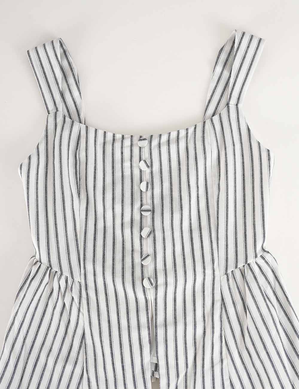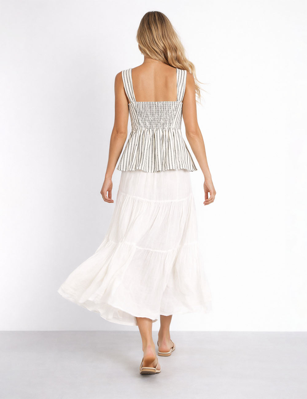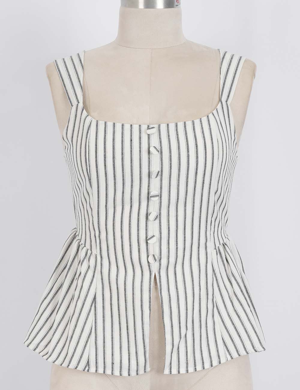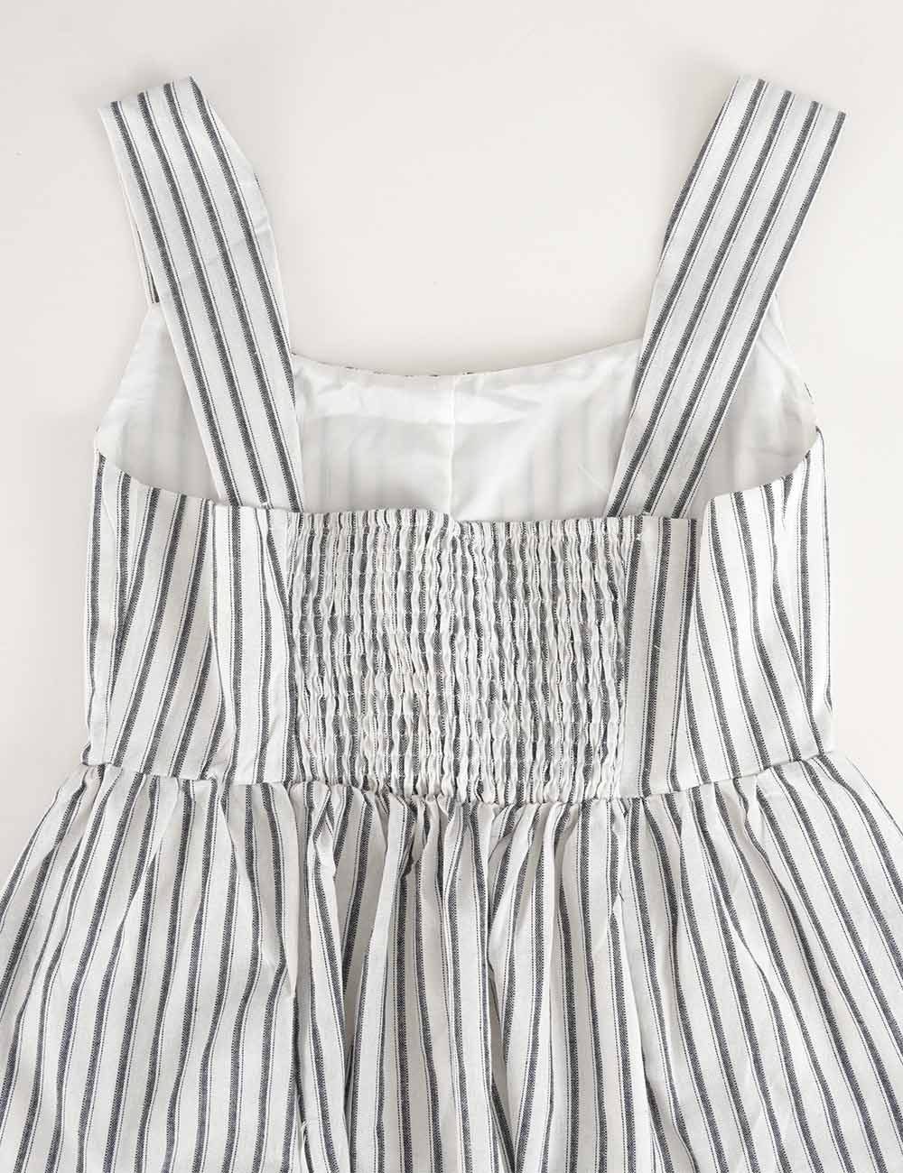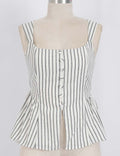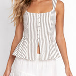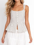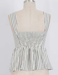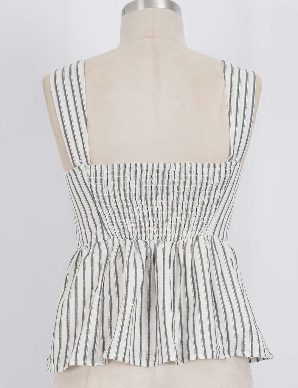 Ladies Chic Striped Square Neck Button Back Smocked Top