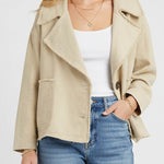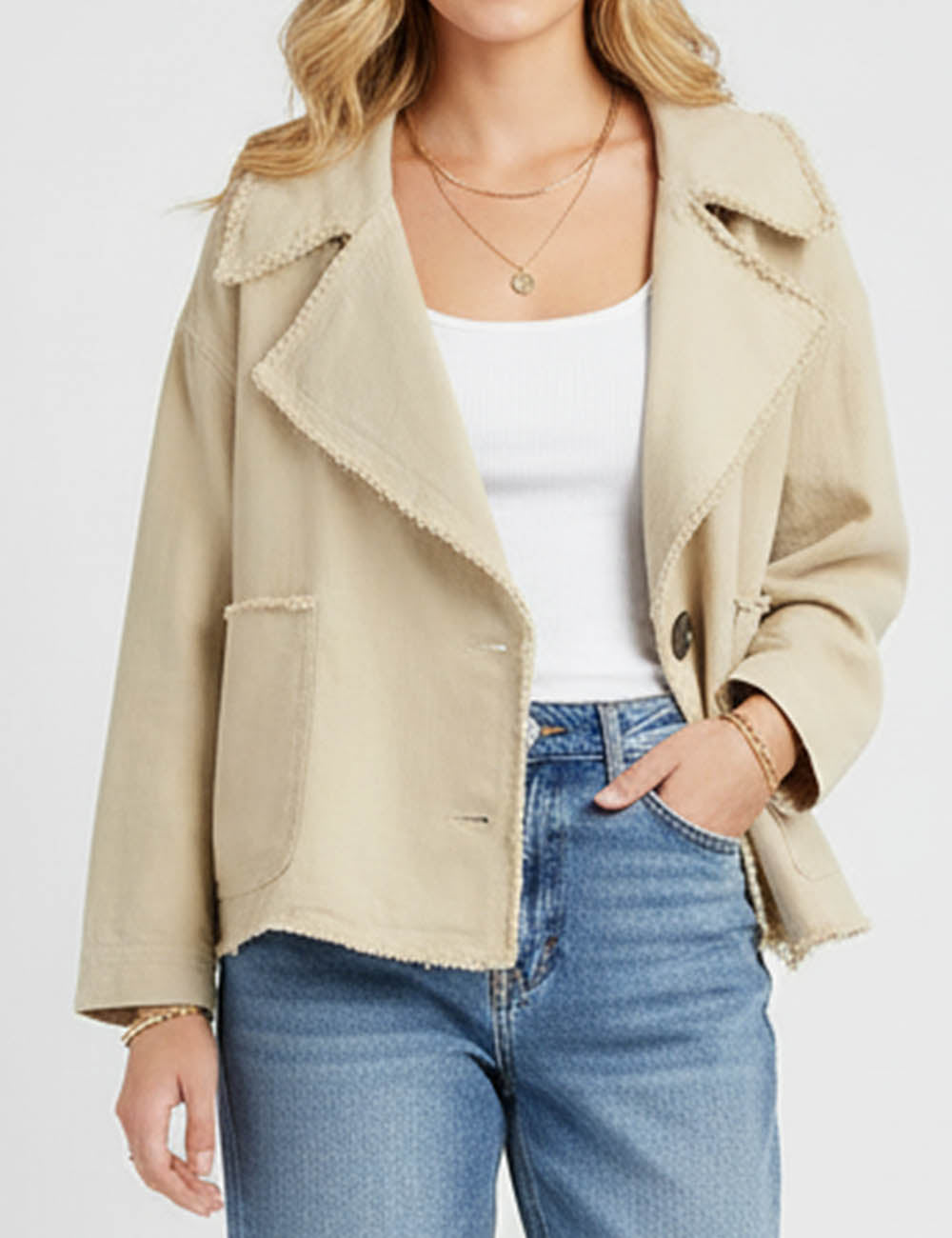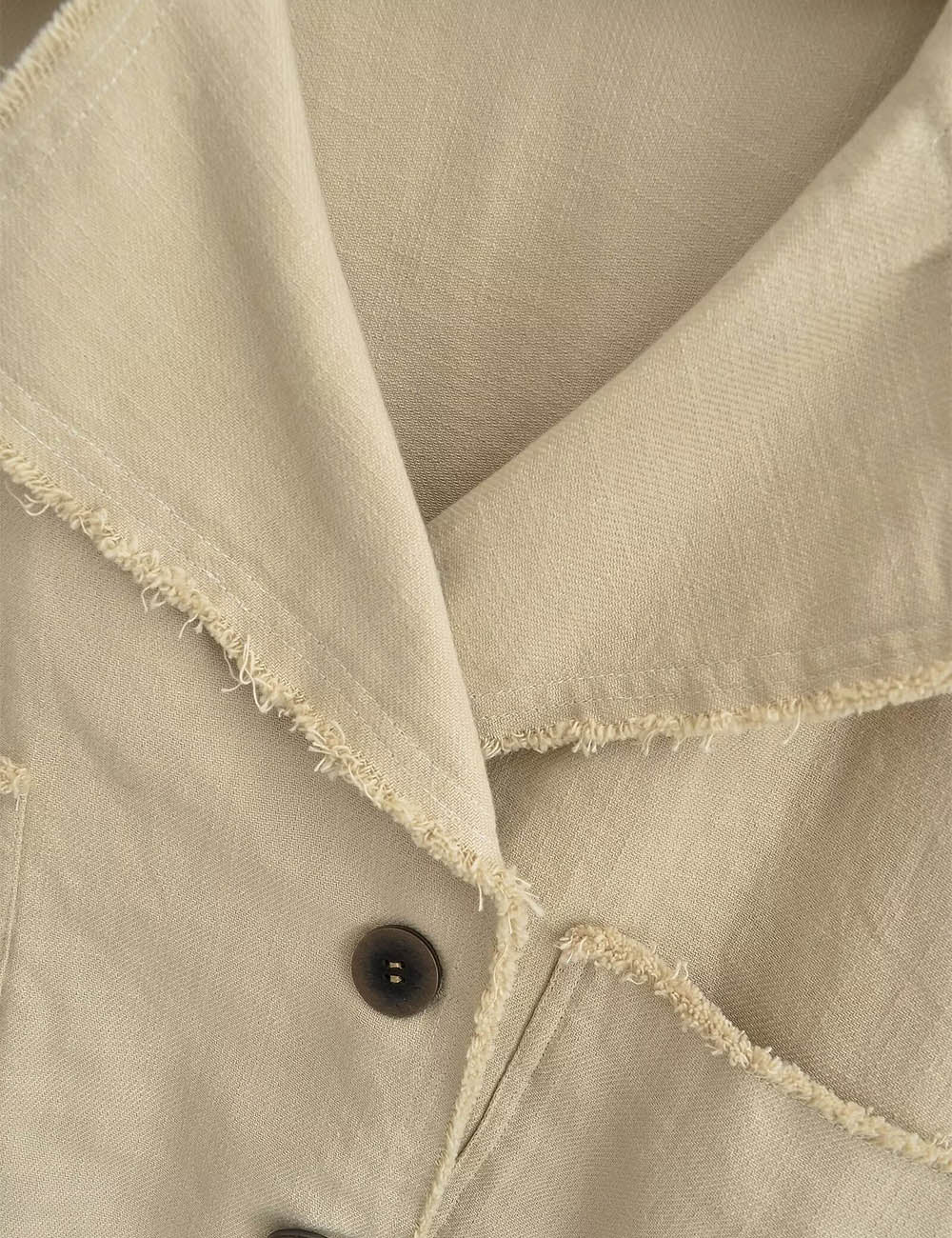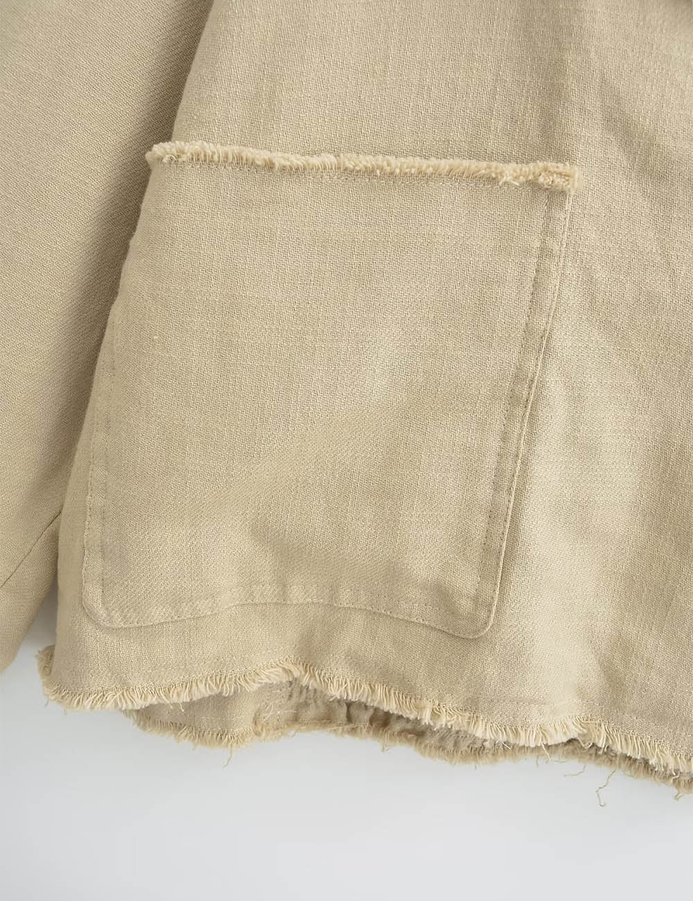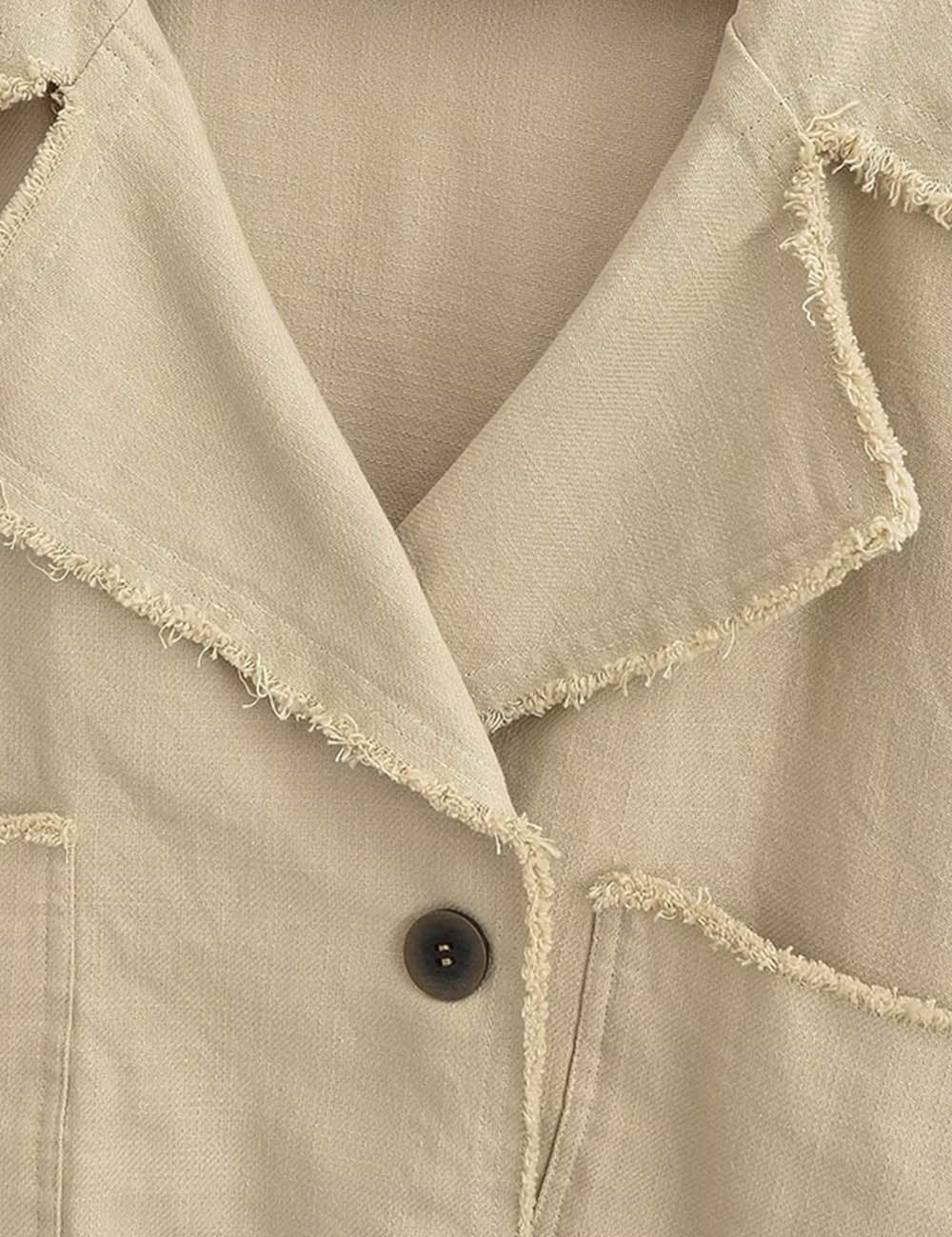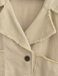 Ladies Chic Wide Lapel Frayed Edge Long Sleeves Jacket