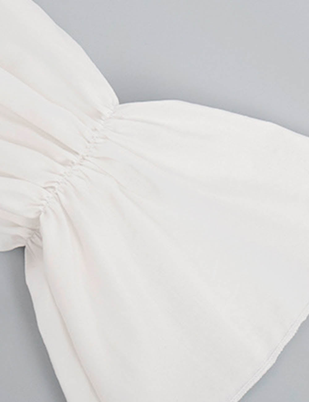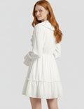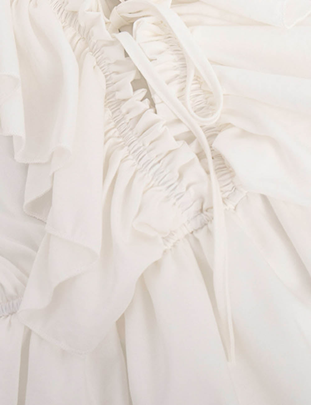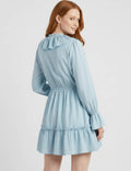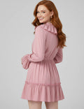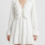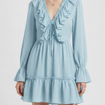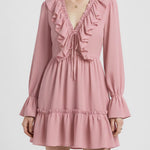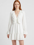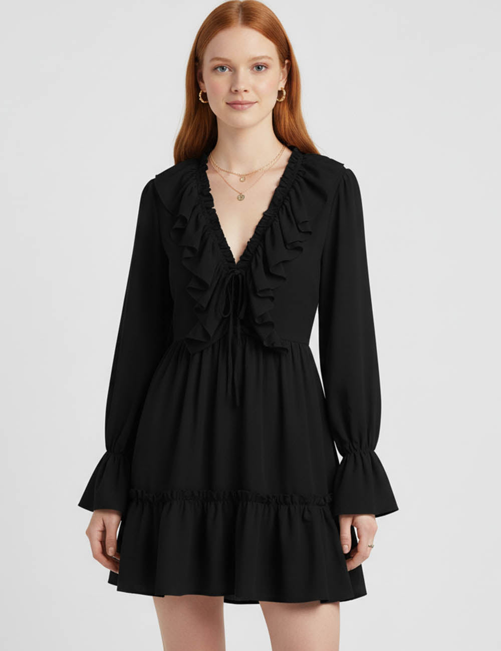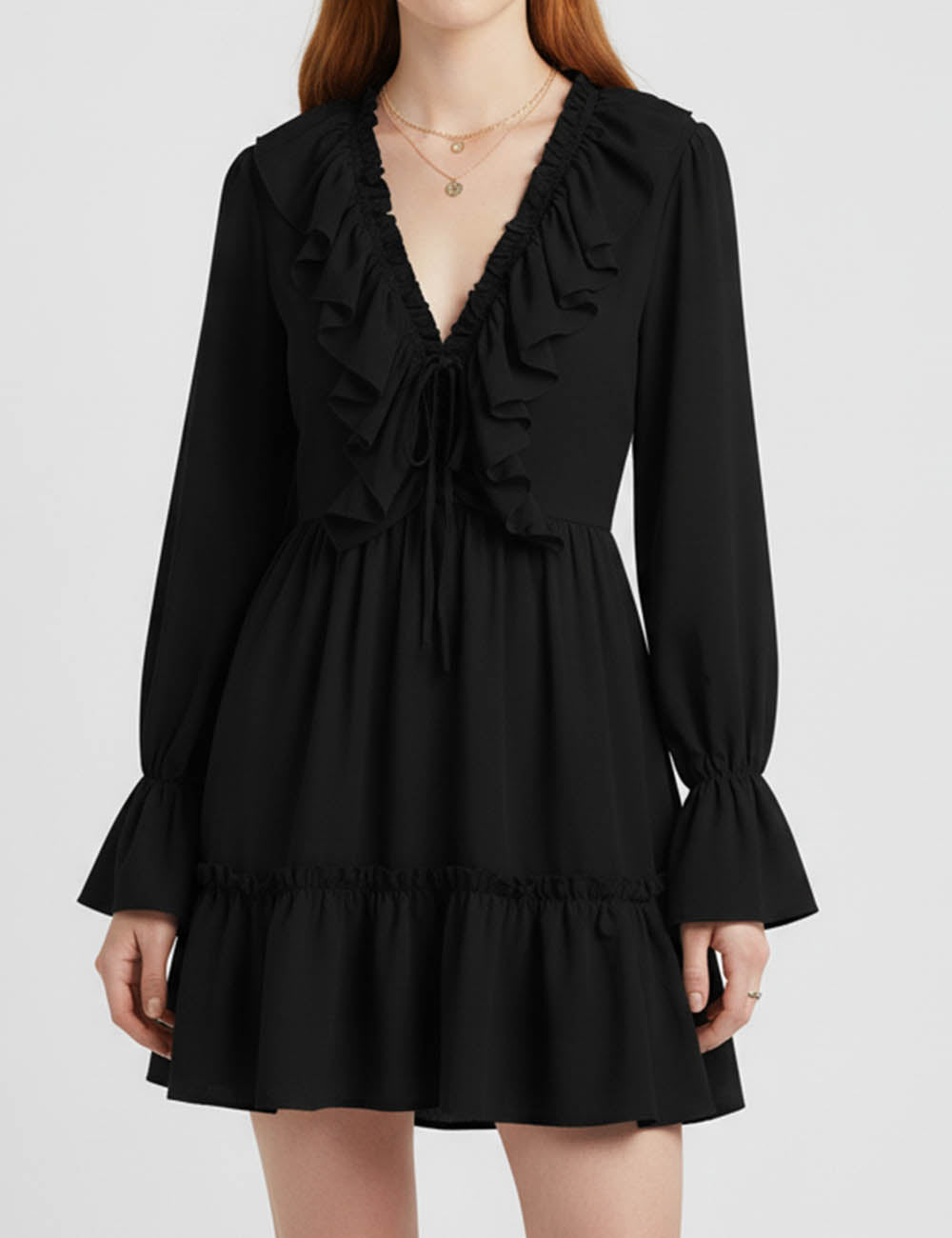 Ladies Chiffon Ruched V-Neck Ruffle Trim Mini Dress