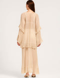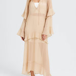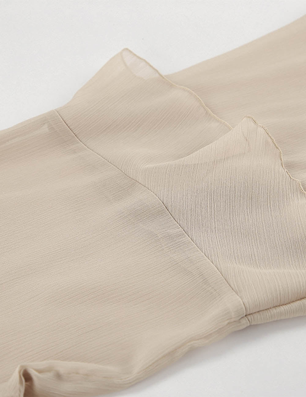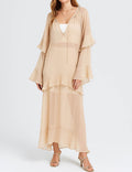 Ladies Chiffon See Sheer Dress Ruffle Flared Sleeves Maxi Dress