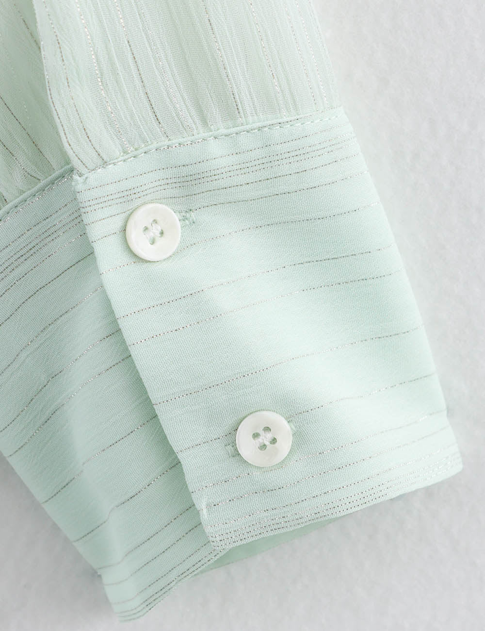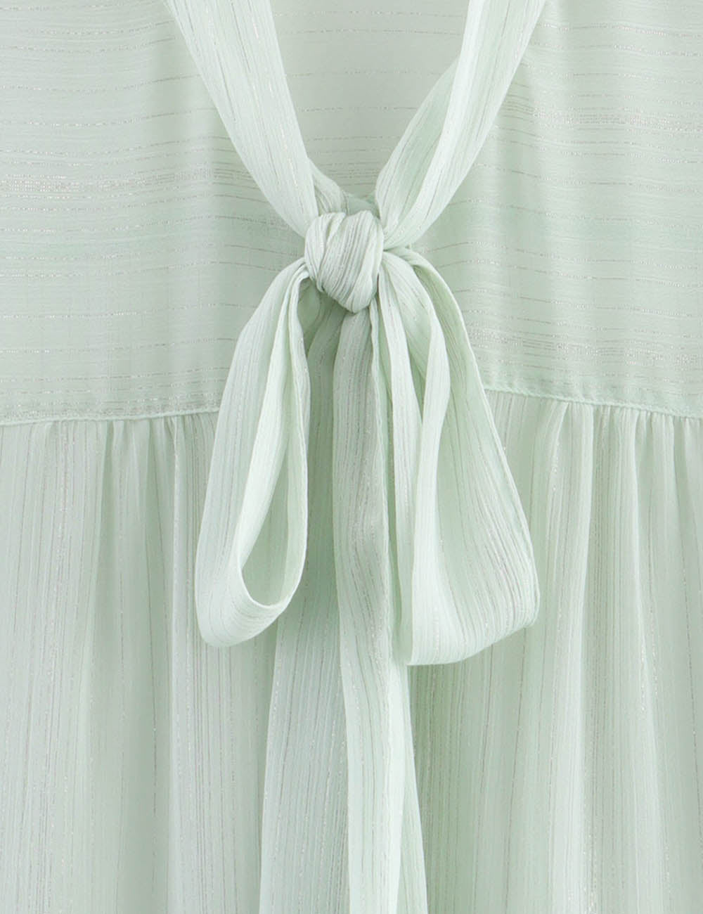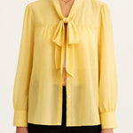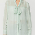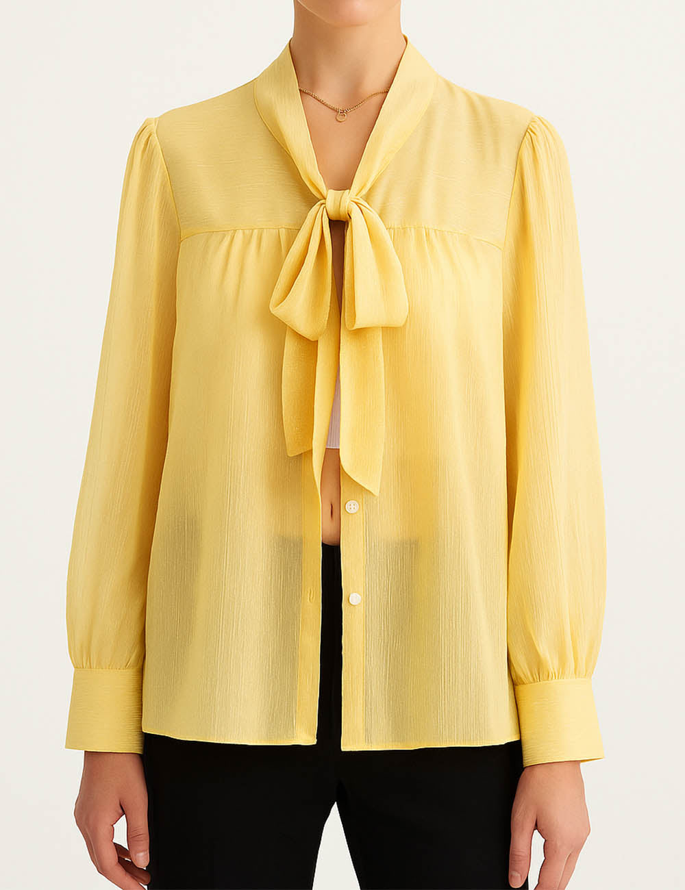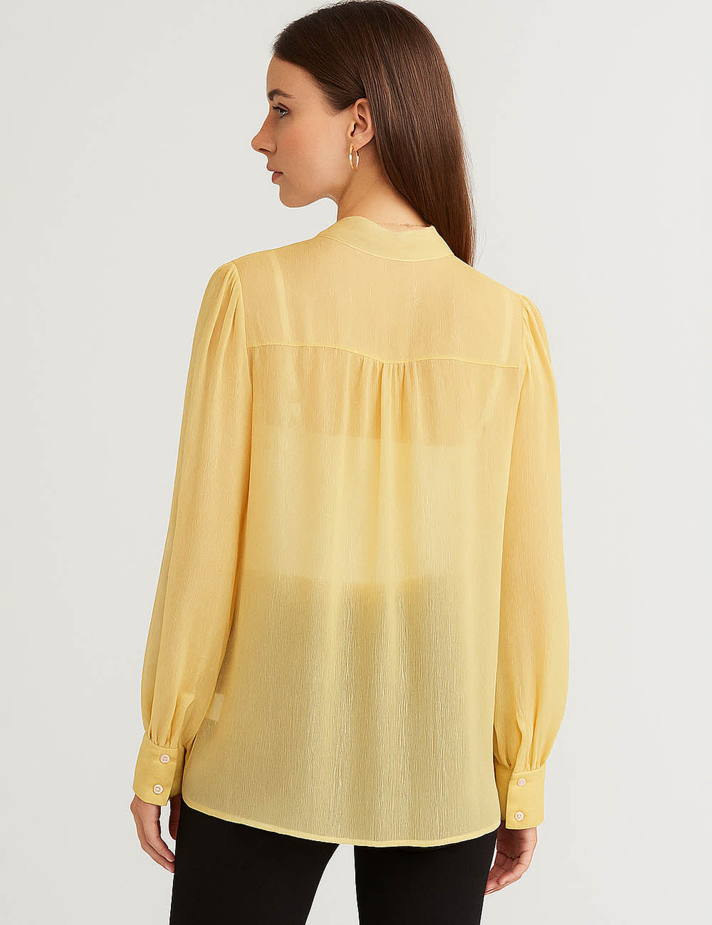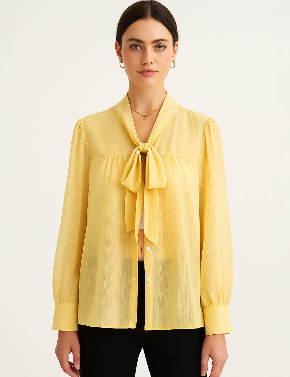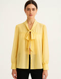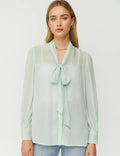 Ladies Chiffon Sheer Tie Neckline Long Sleeves Blouse