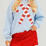 Ladies Christmas 2025 Candy Cane Sequin Pullover Sweatshirt