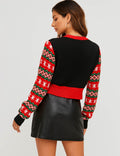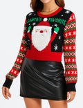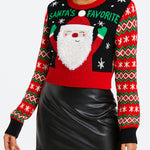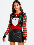 Ladies Christmas 2025 Holiday Santa Claus Cropped Pullover Sweater