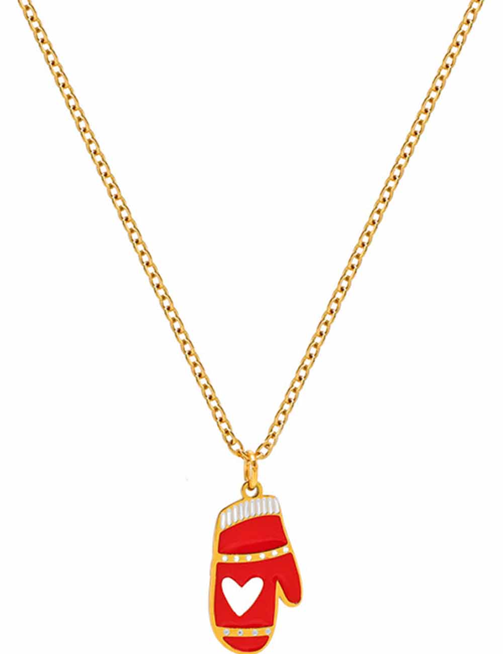 Ladies Christmas Love Glove Pendant Holiday Necklace