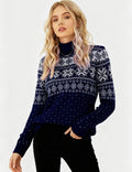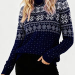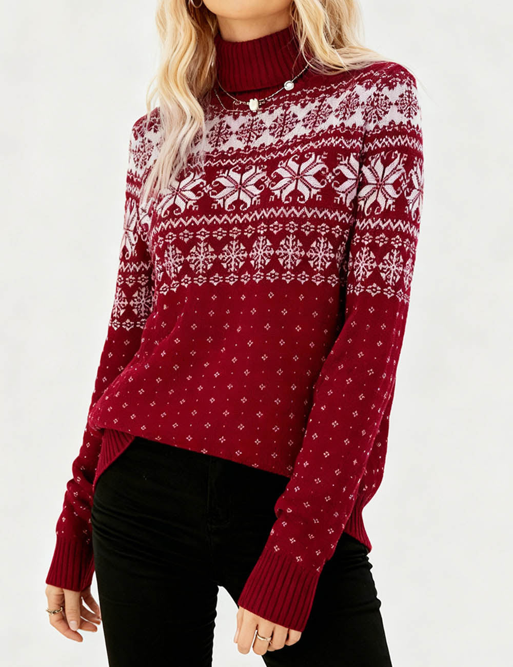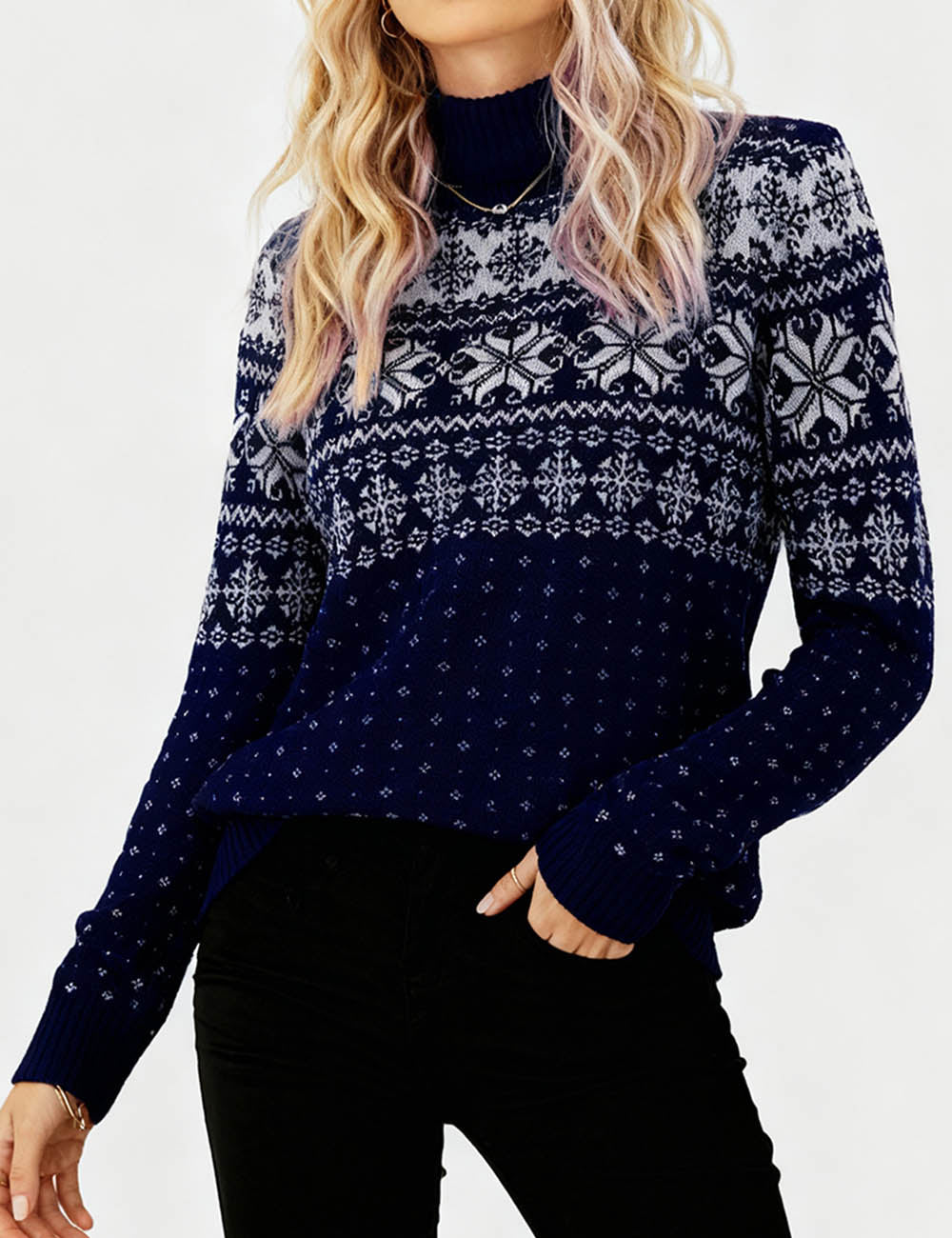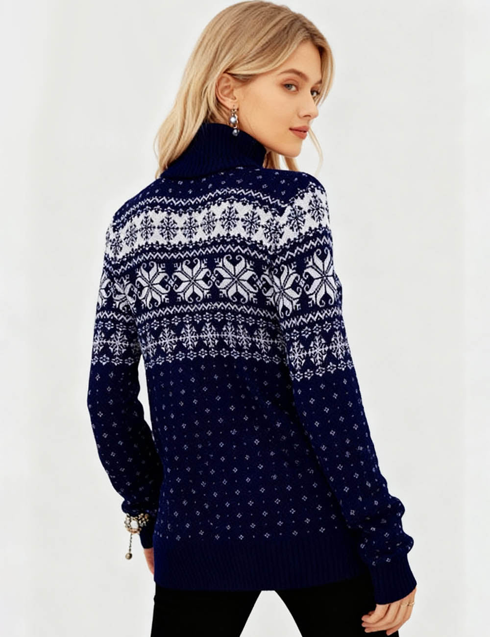 Ladies Christmas 2025 Snowflake Festive Turtle Neck Sweater