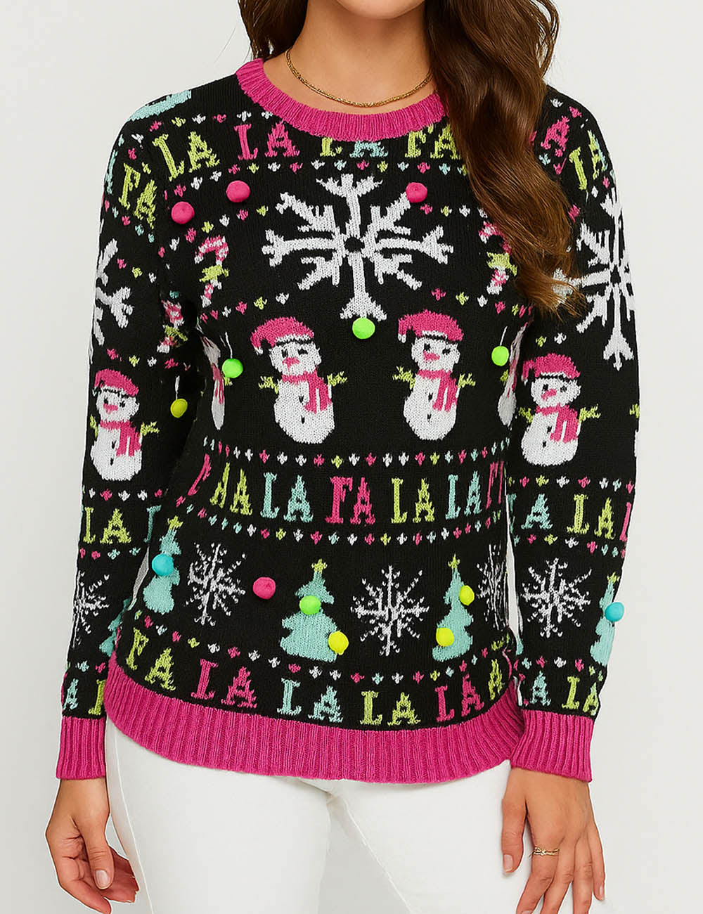 Ladies Christmas 2025 Snowflake & Snowman Holiday Sweater