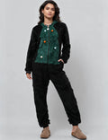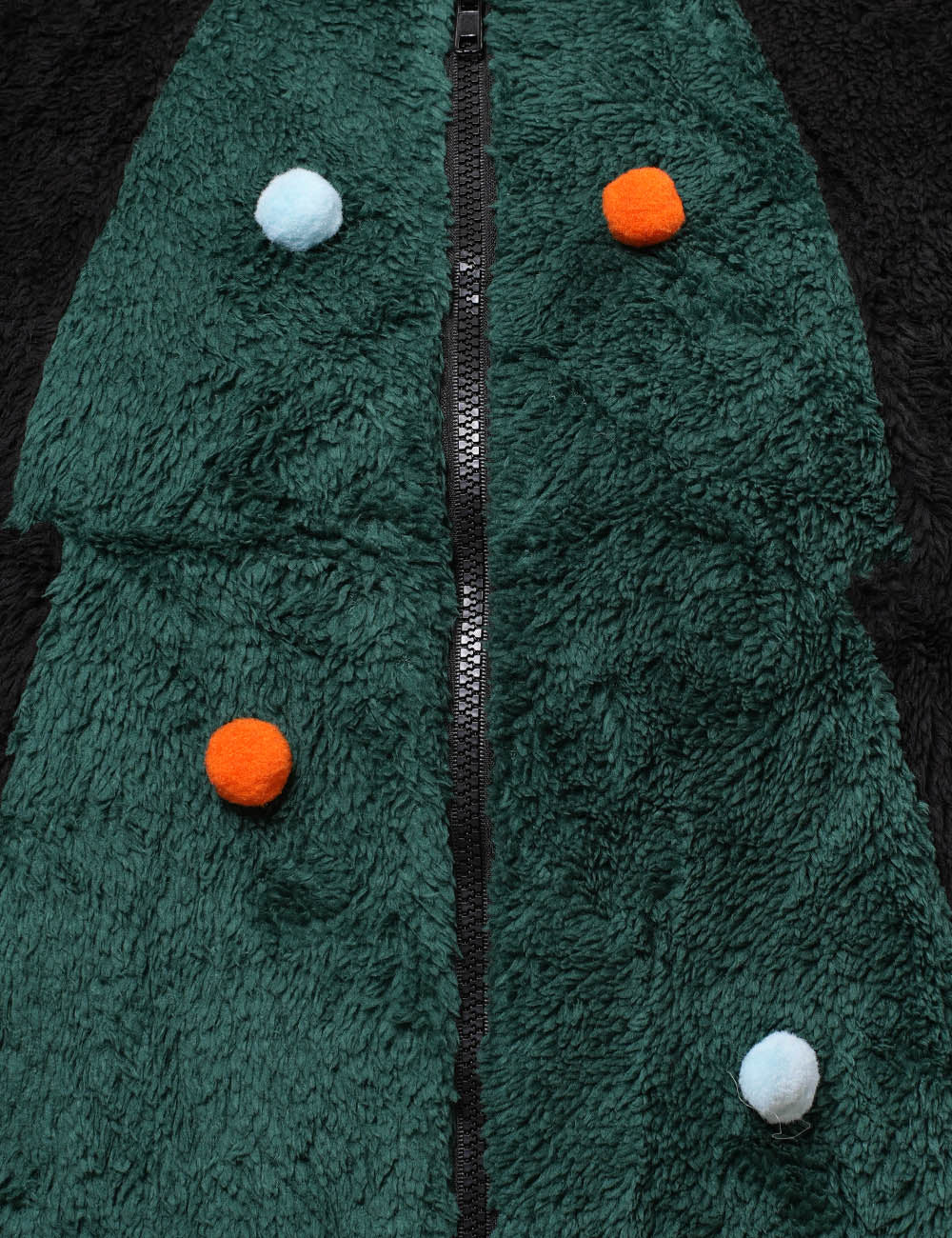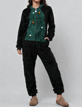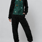 Ladies Christmas Color Block Fleece Jumpsuit Hooded Overall