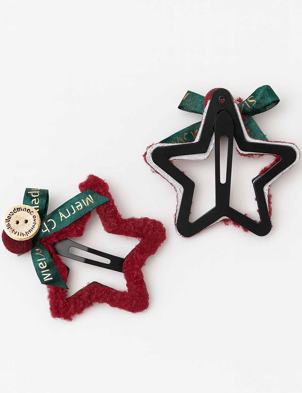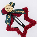 Ladies Christmas Fuzzy Star Bow Barrette Snap Hair Clip