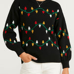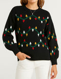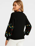 Ladies Christmas Light Jacquard Pattern Lantern Sleeves Sweater