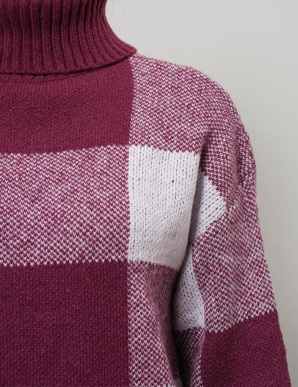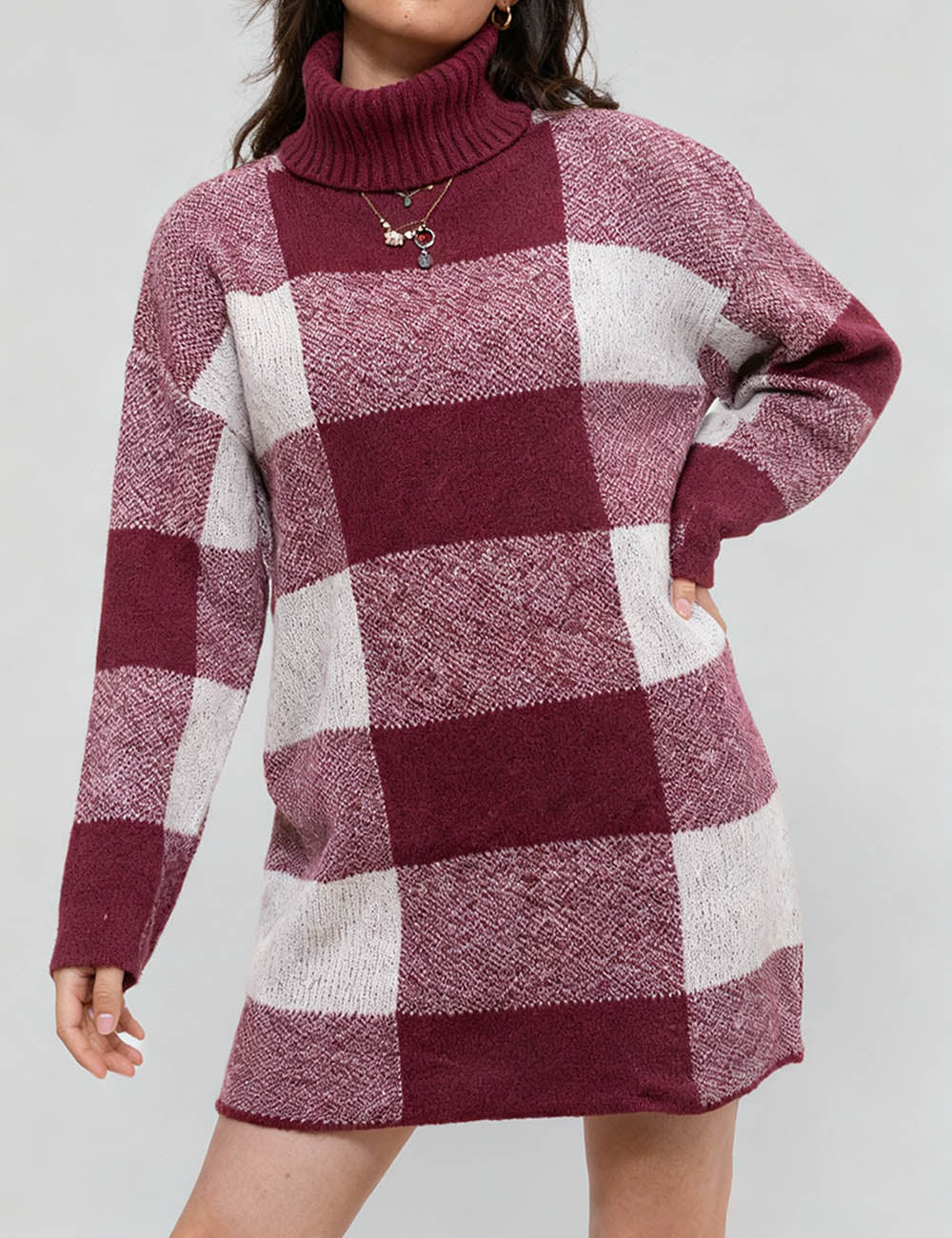 Ladies Christmas Plaid Sweater Mini Dress SKD41157