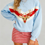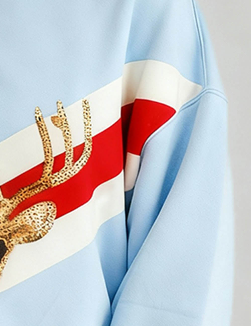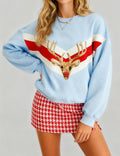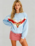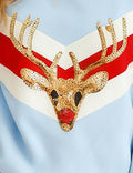 Ladies Christmas Reindeer Sequin Round Neck Sweatshirt