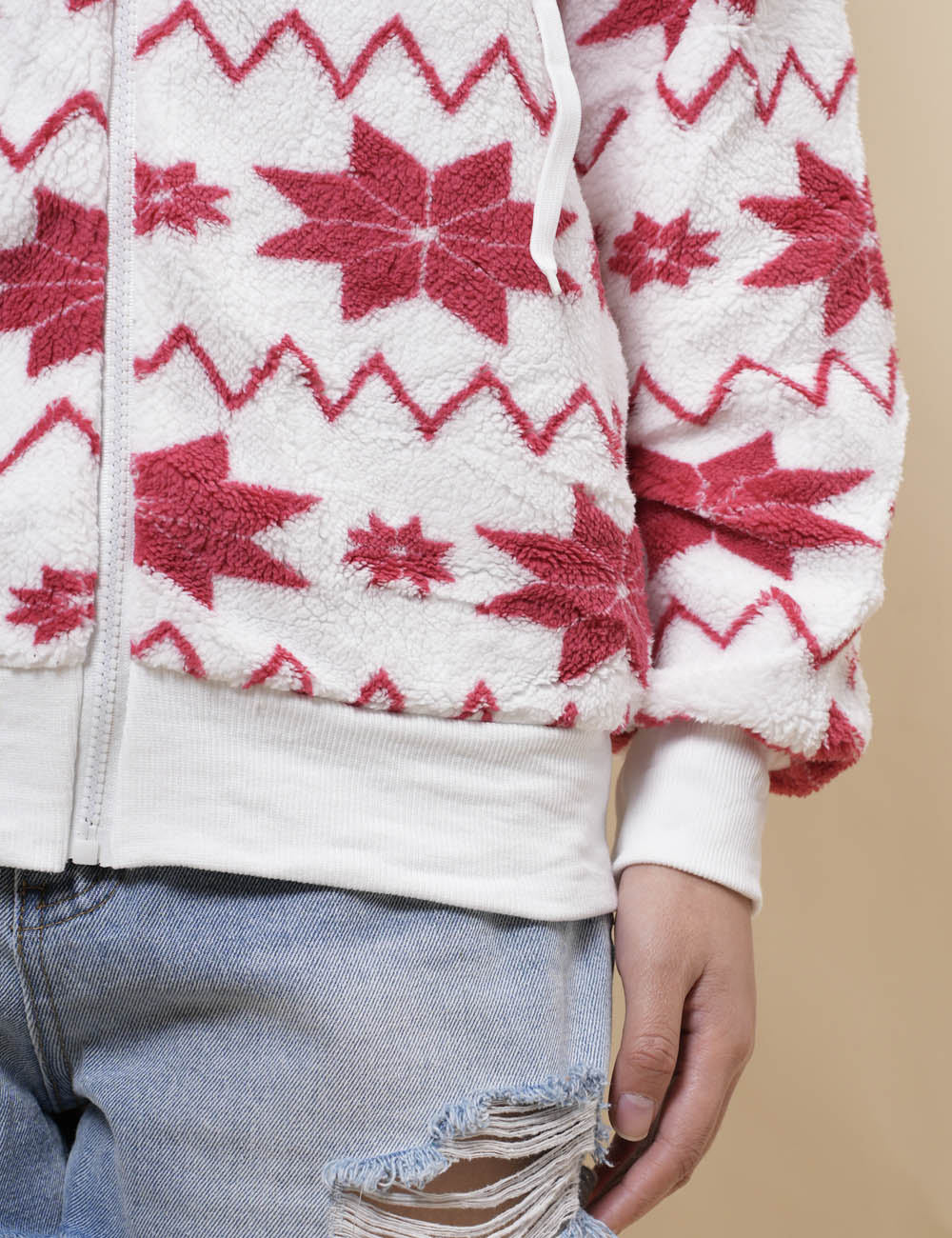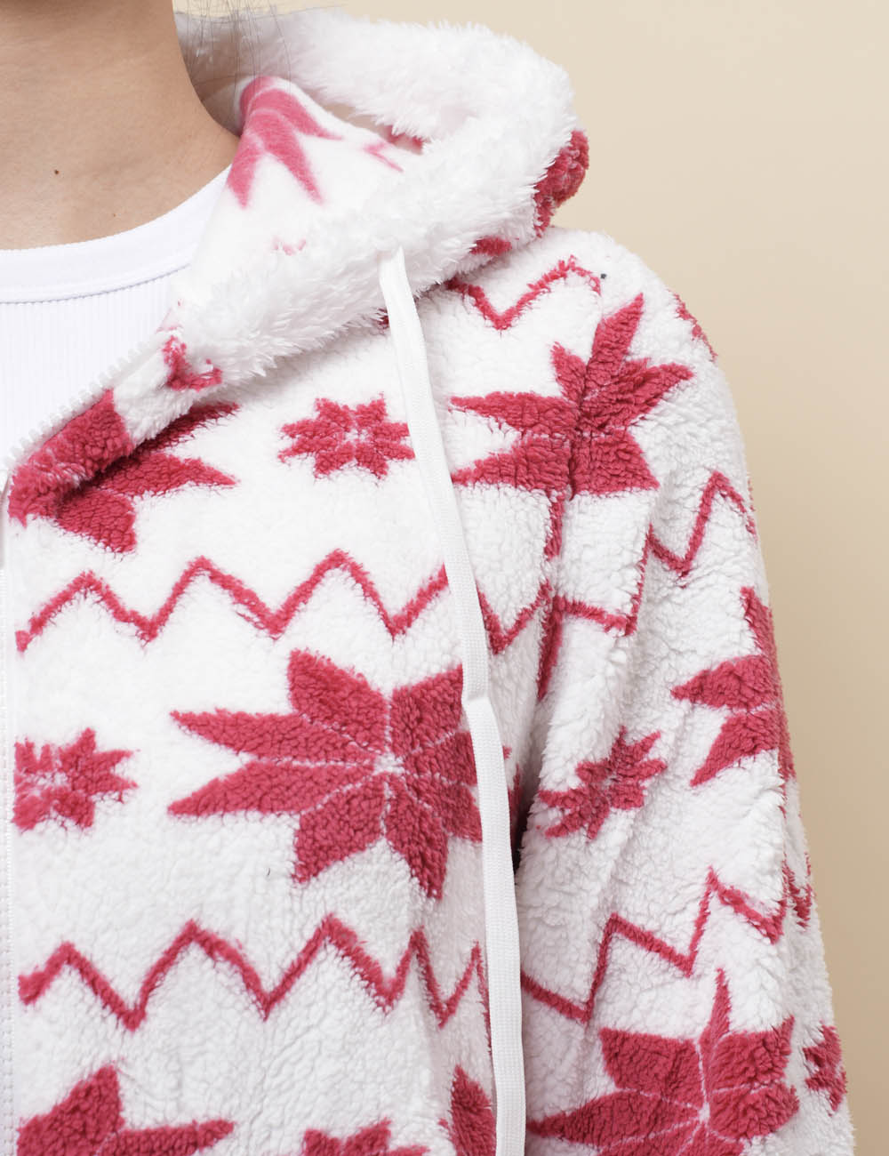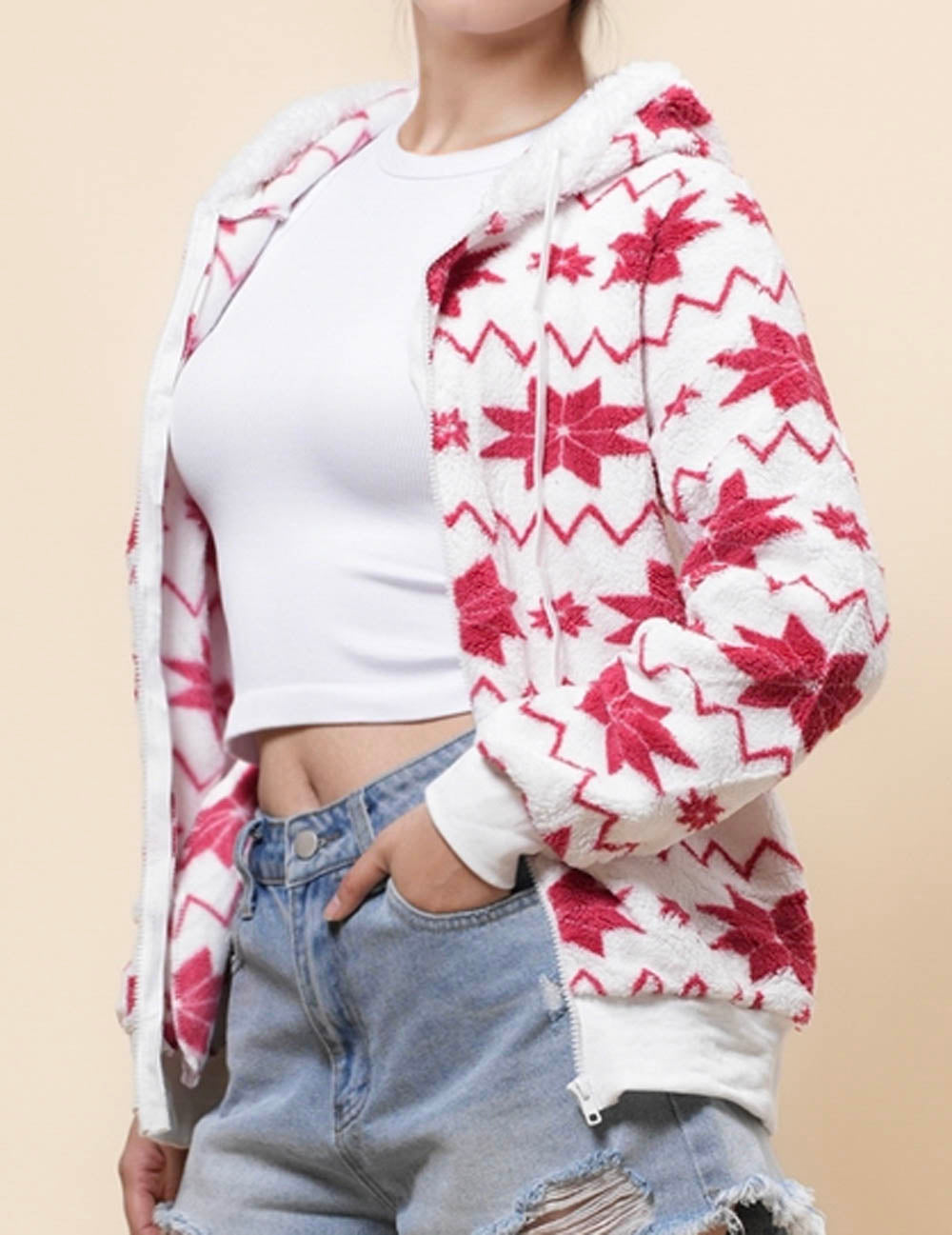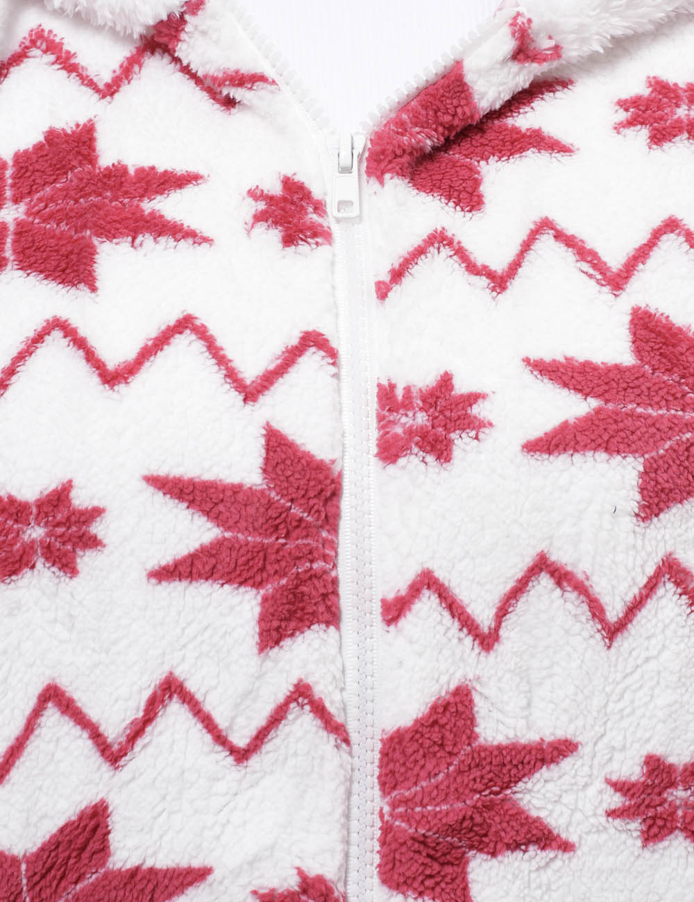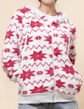 Ladies Christmas Snow Coral Fleece Zip Hooded Jacket SKT41016