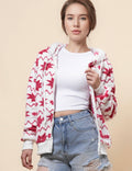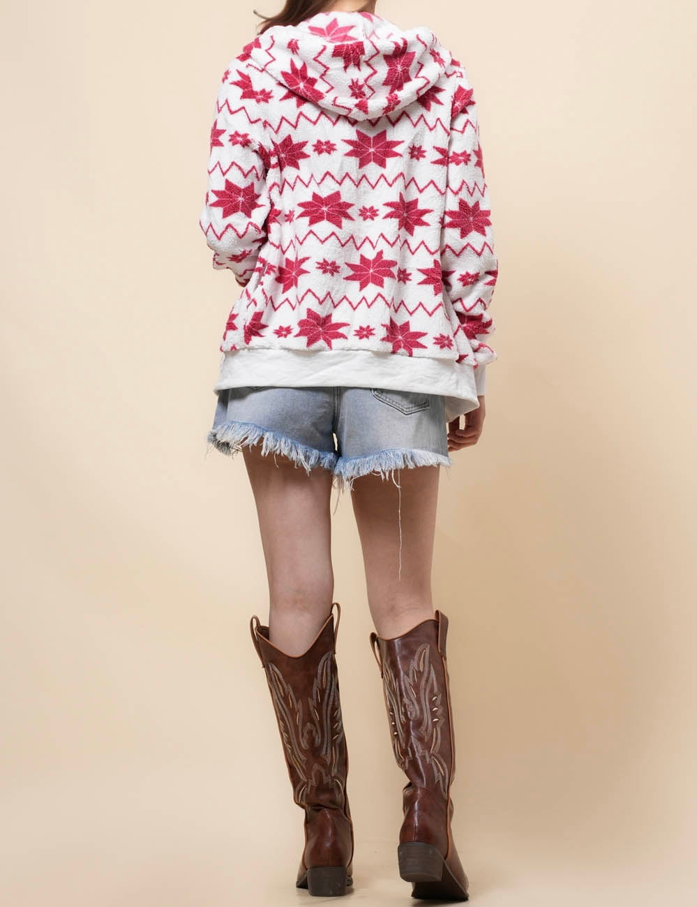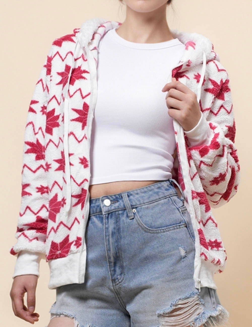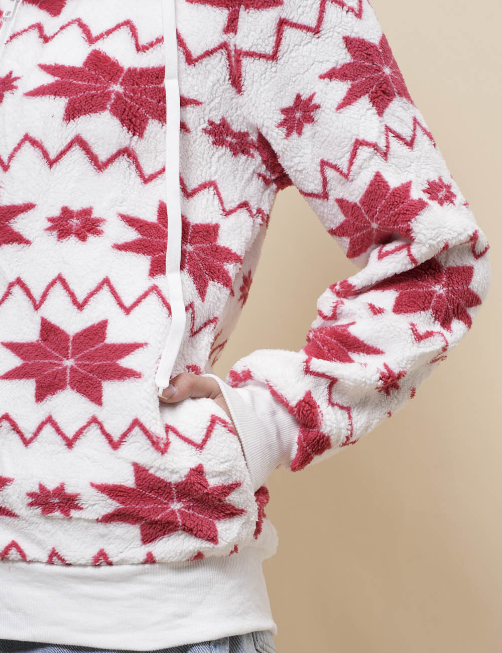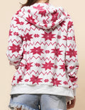 Ladies Christmas Snow Coral Fleece Zip Hooded Jacket SKT41016