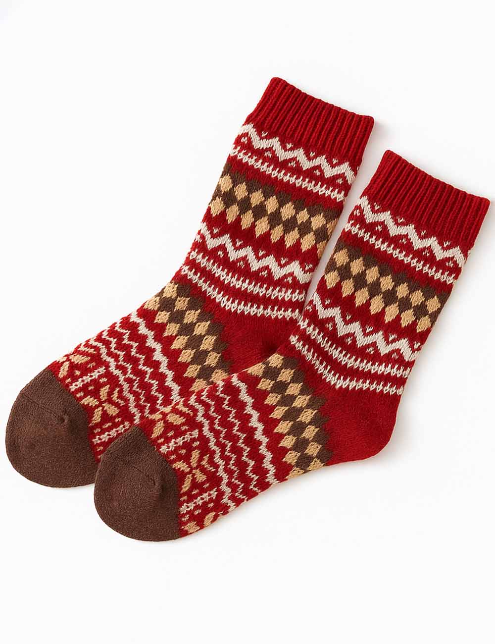 Ladies Christmas Winter Warm Fair Isle Knit Midi Calf Socks