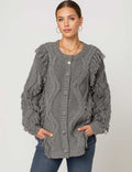 Ladies Chunky Knit Fringe Tassels Button Front Cardigan