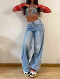 Ladies Classic Button Pocket Straight Leg Denim Pants