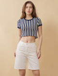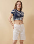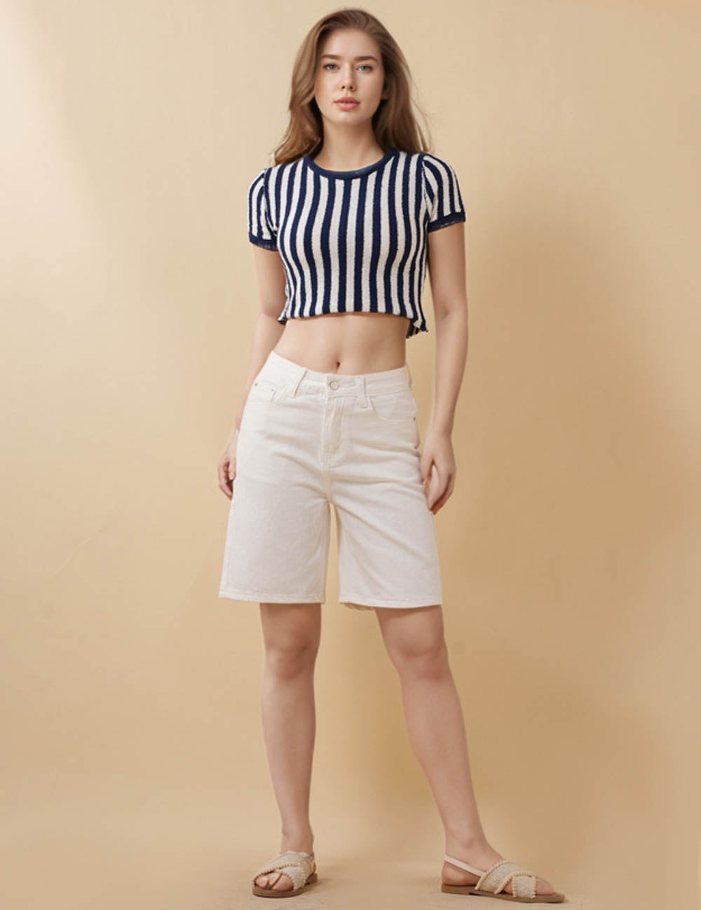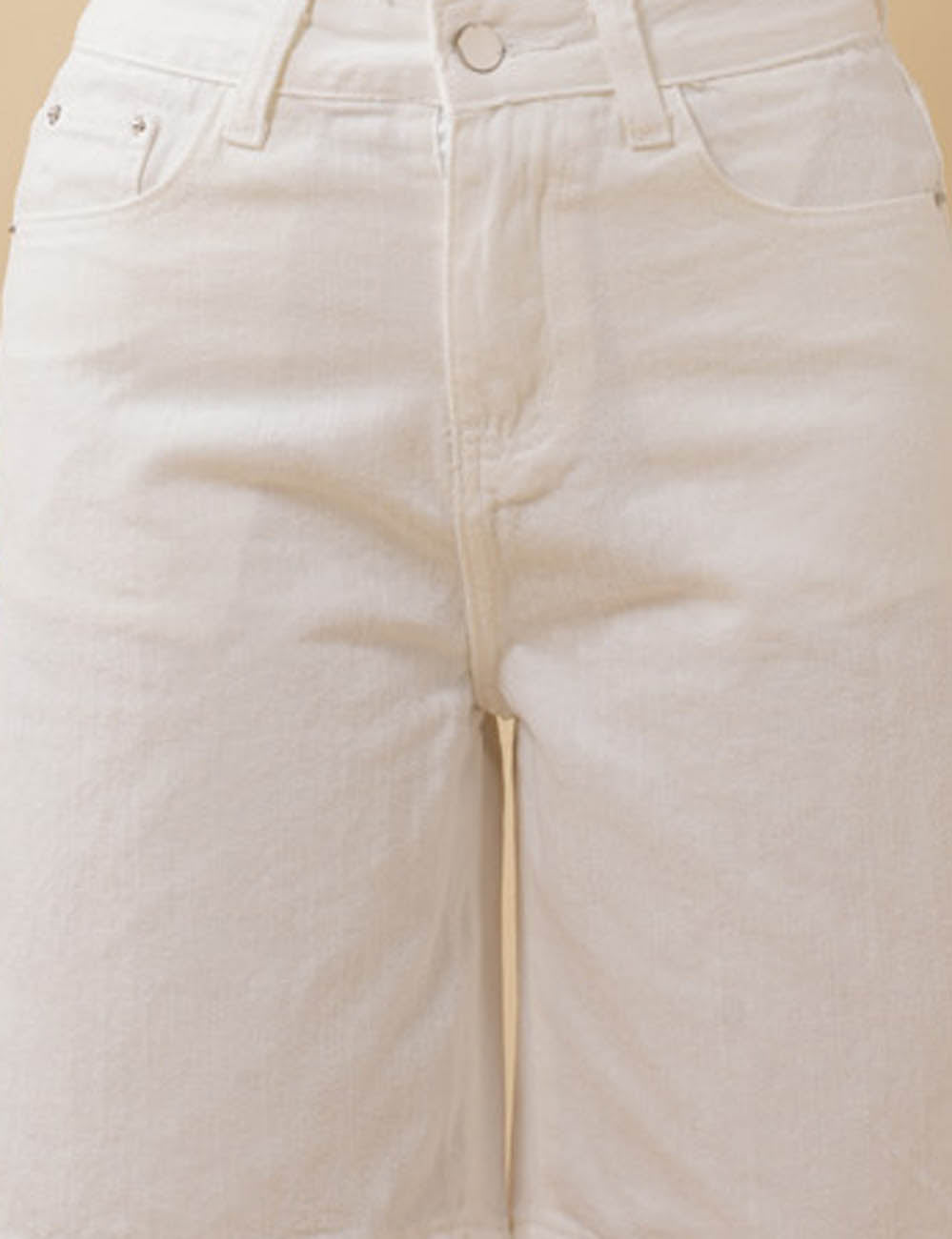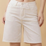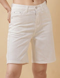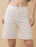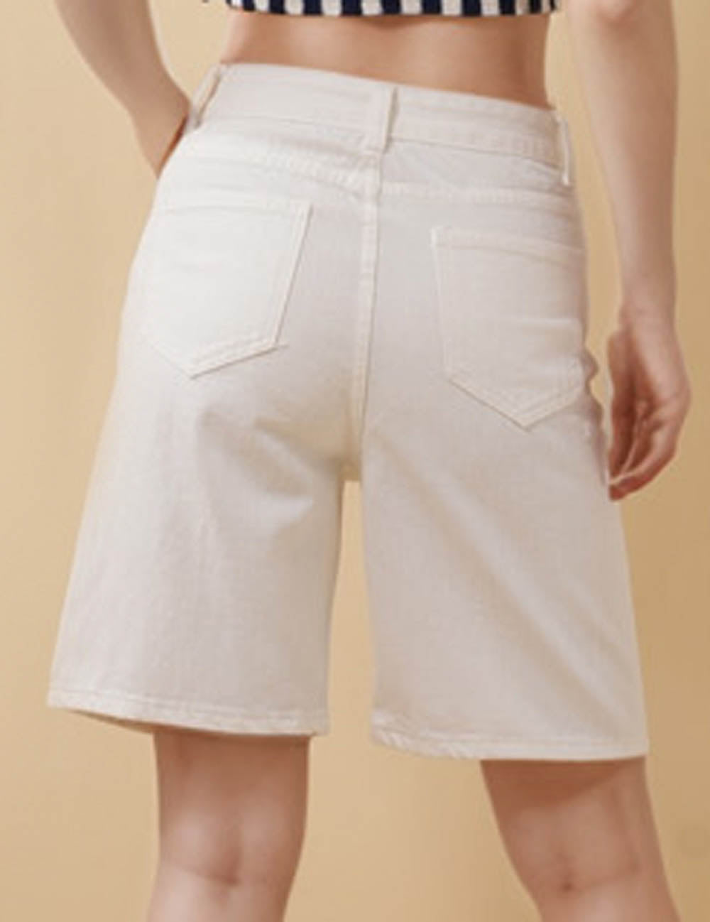 Ladies Classical Button Pocket Straight Leg Denim Shorts
