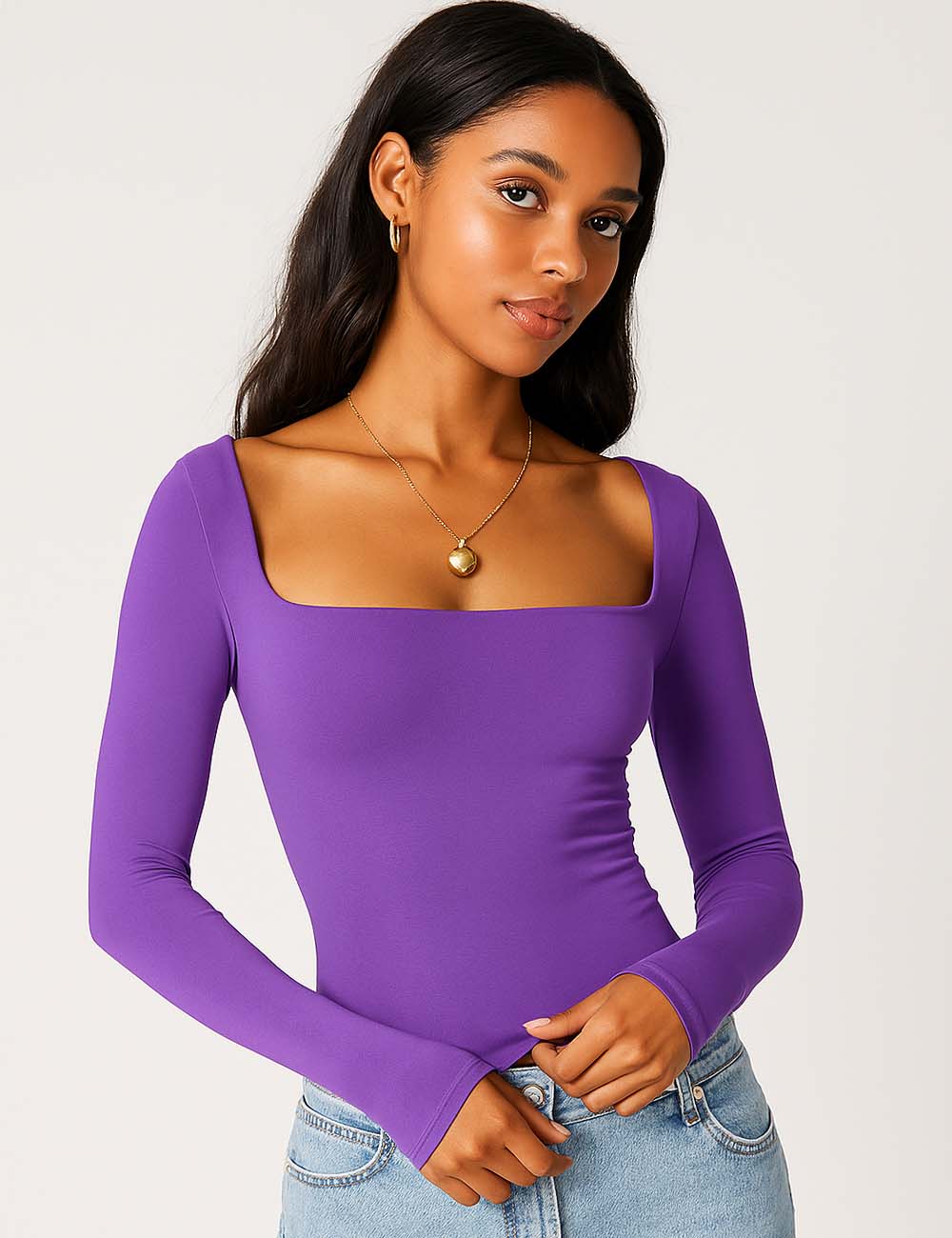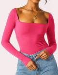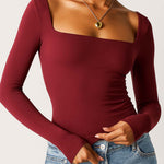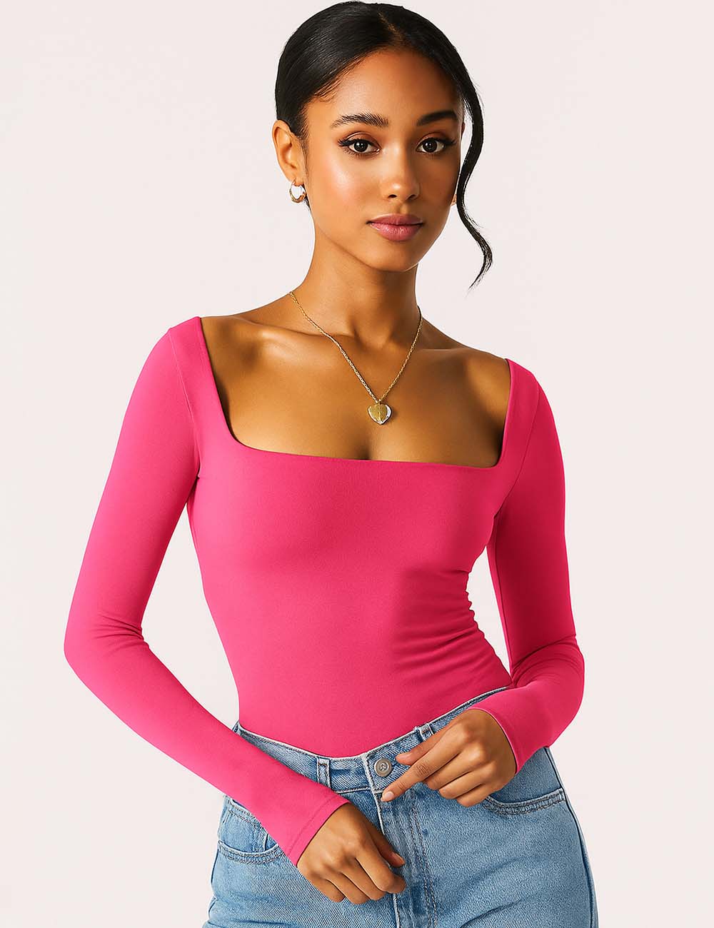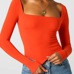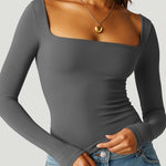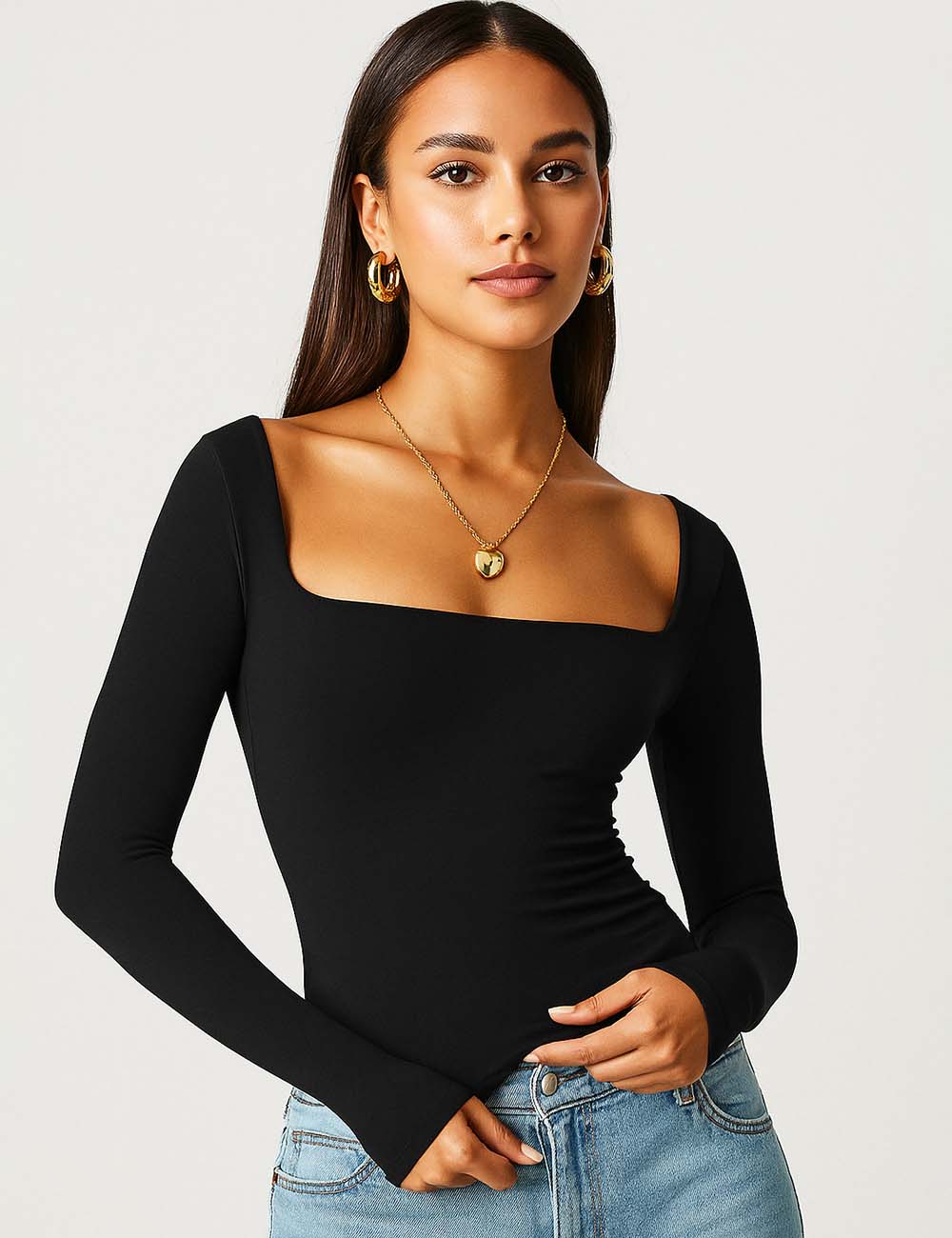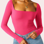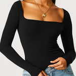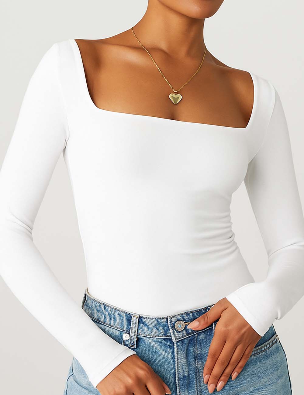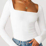 Ladies Clean Line Square Neck Cropped Basic Tee SKT610