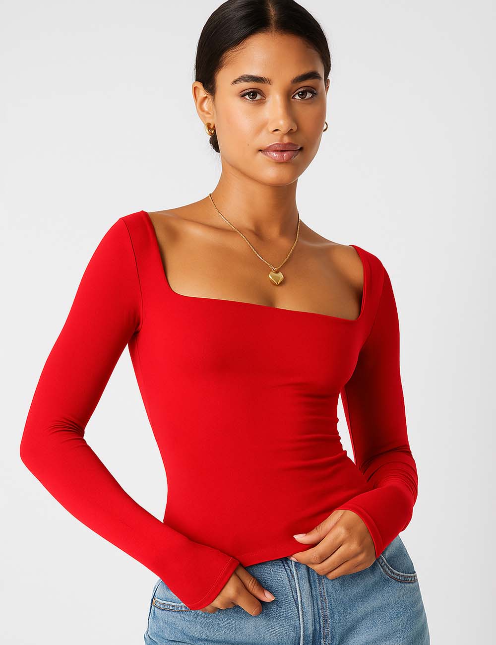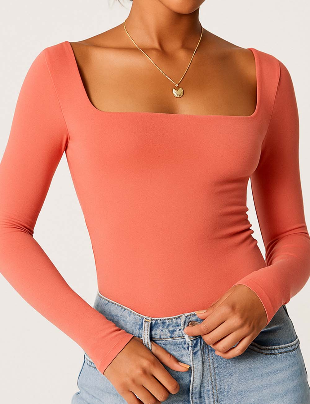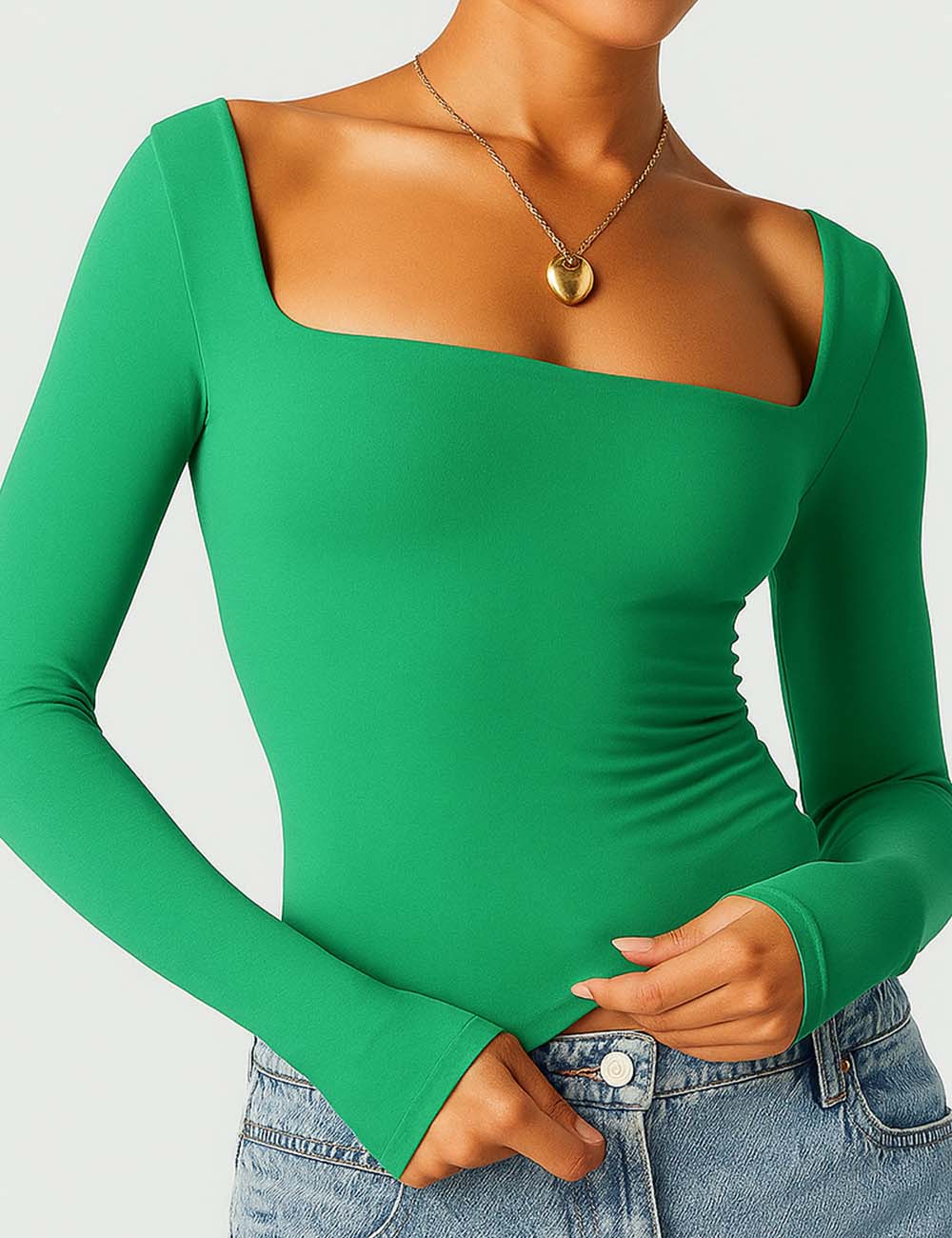 Ladies Clean Line Square Neck Cropped Basic Tee SKT610