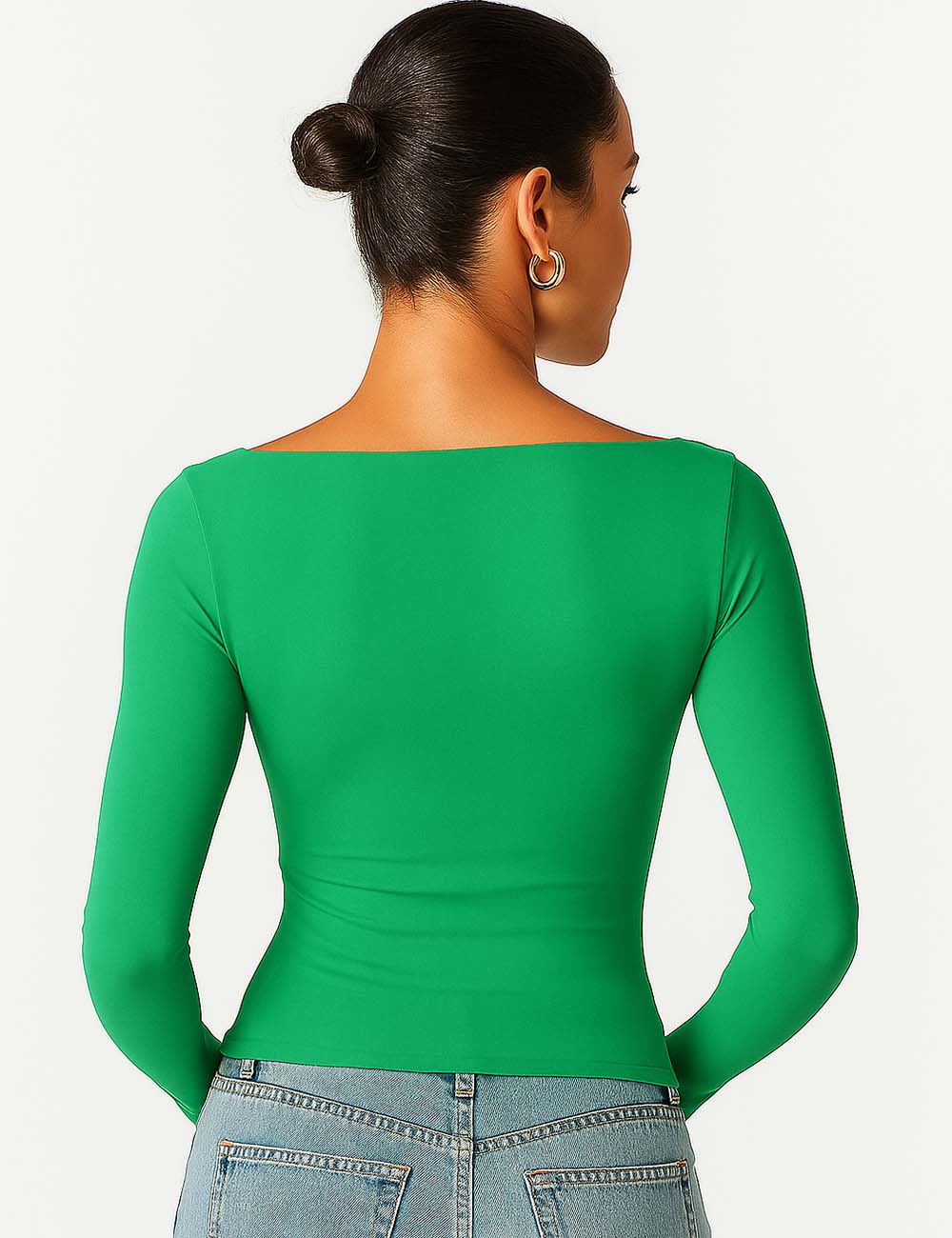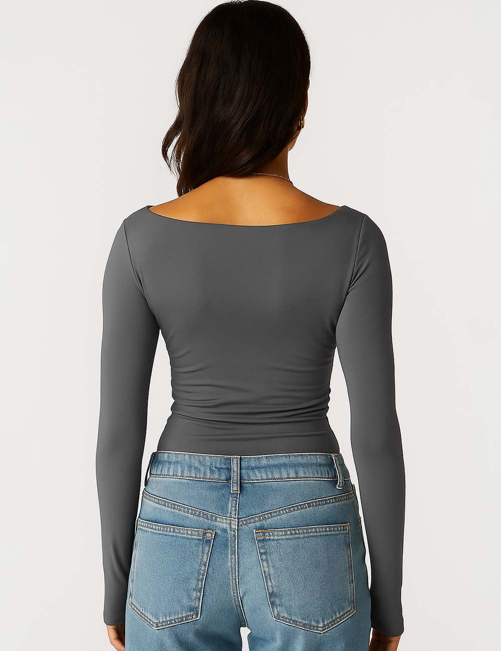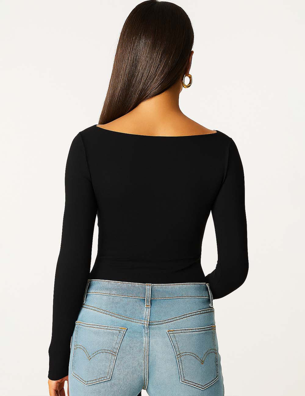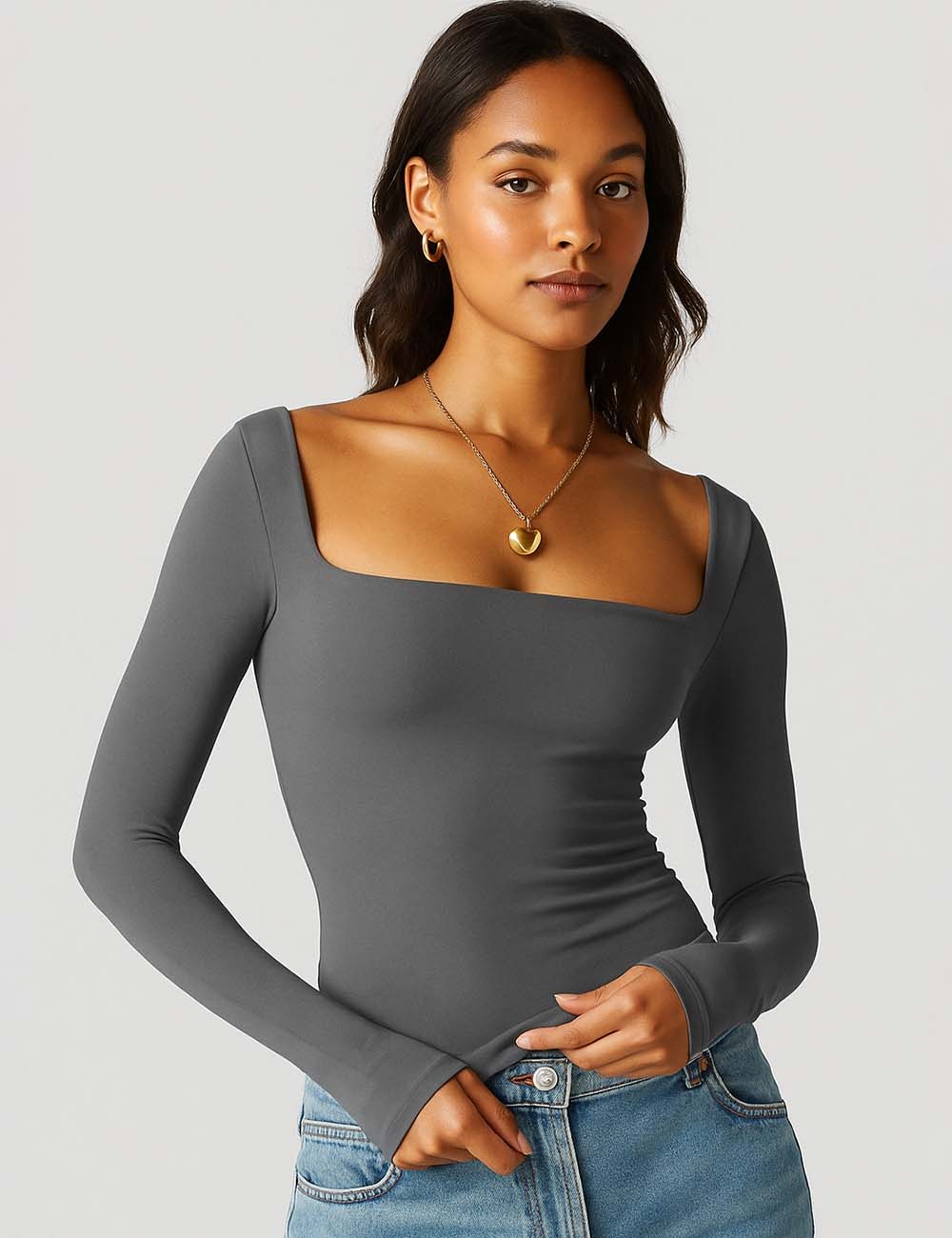 Ladies Clean Line Square Neck Cropped Basic Tee SKT610