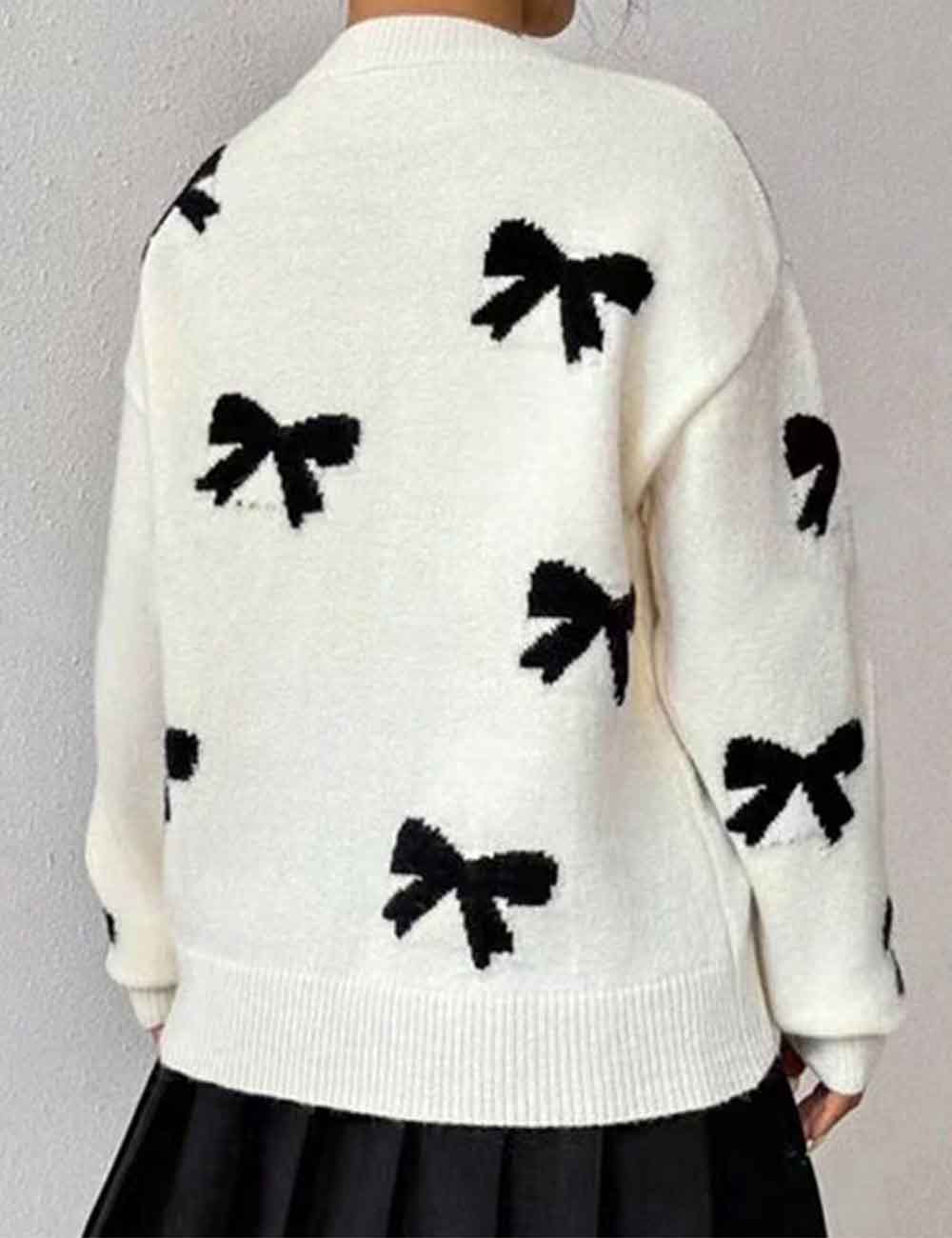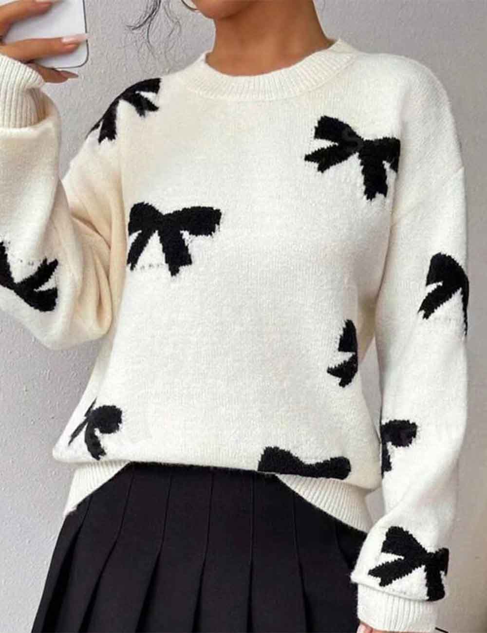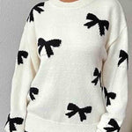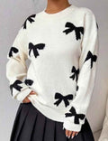 Ladies Color Black Bow Pullover Long Sleeves Sweater