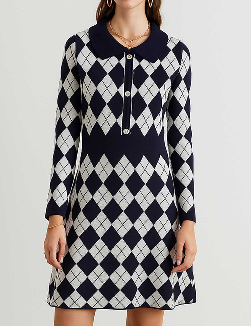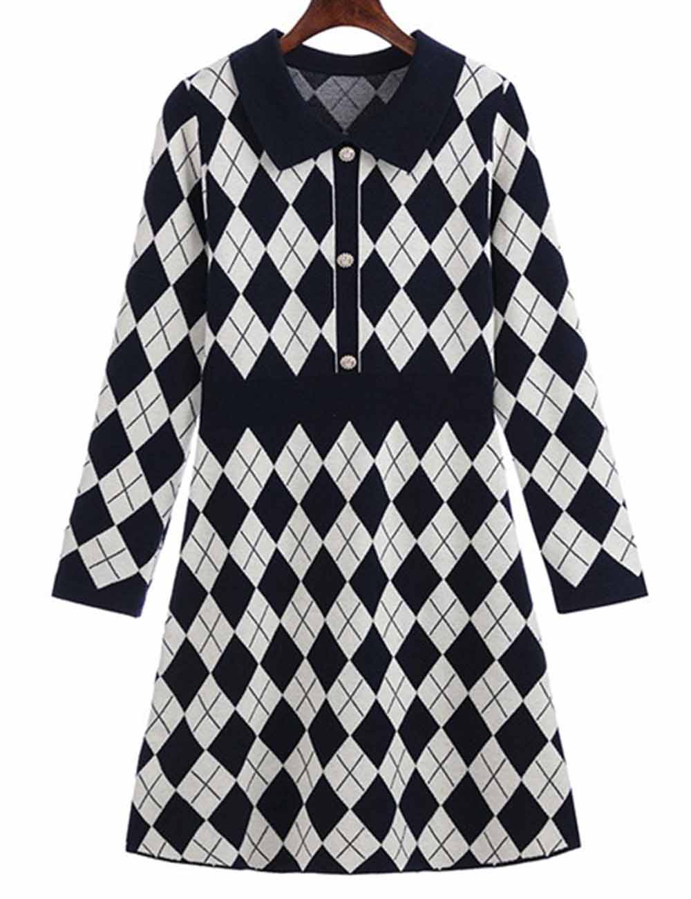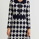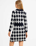 Ladies Color Block Argyle Pattern Knit Midi Dress