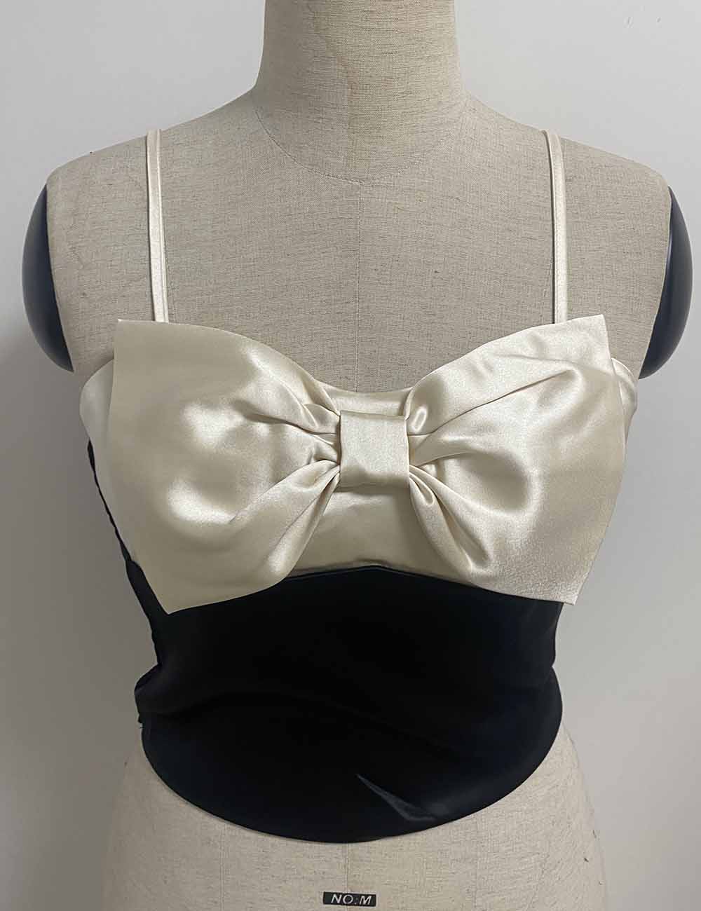 Ladies Color Block Bow String Shoulder Corset Top
