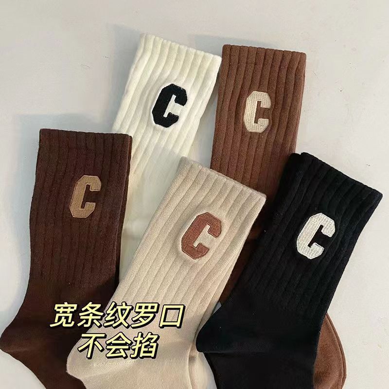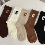 Ladies Color Block "C" Cotton Socks 5 Pairs/Pack SKASC4165