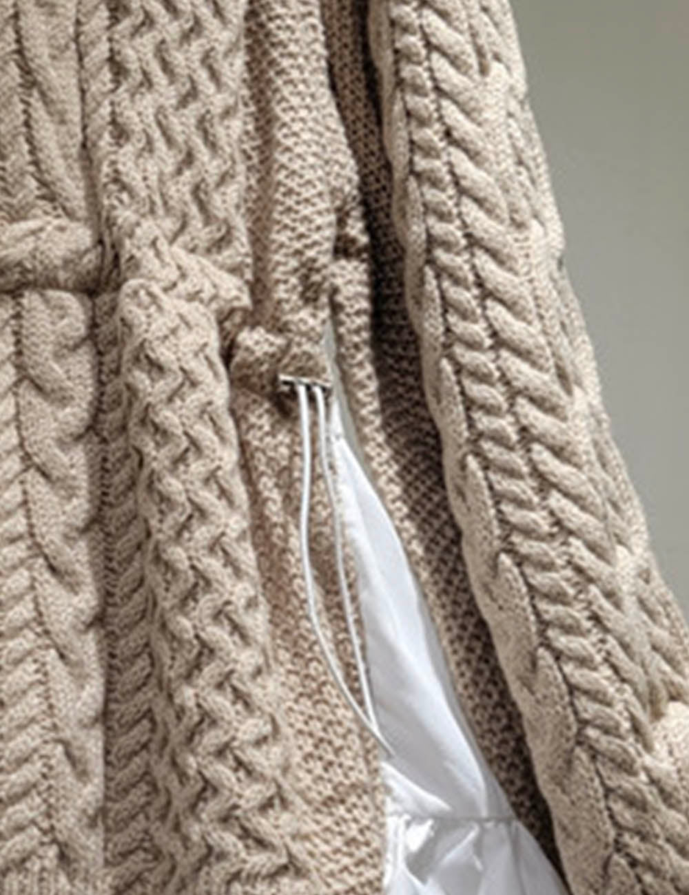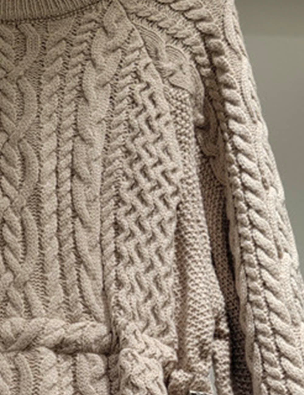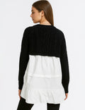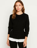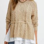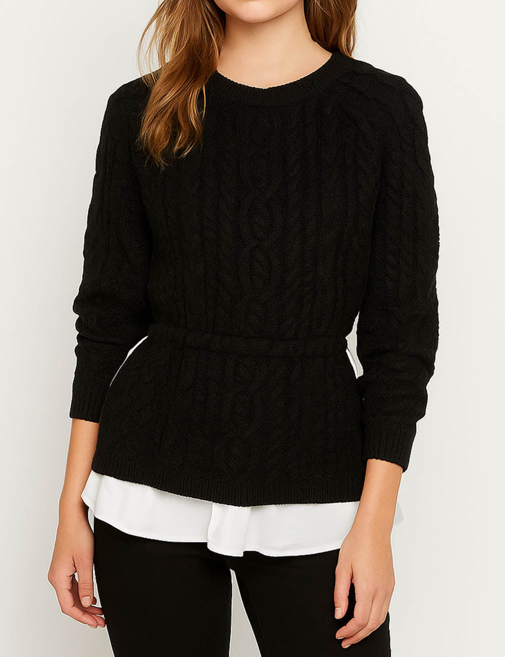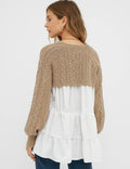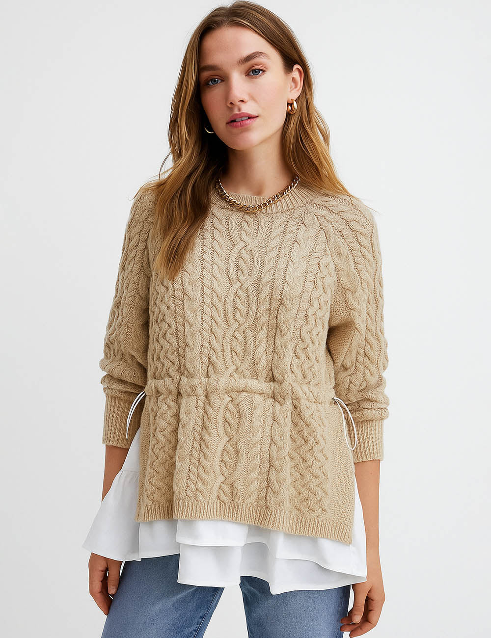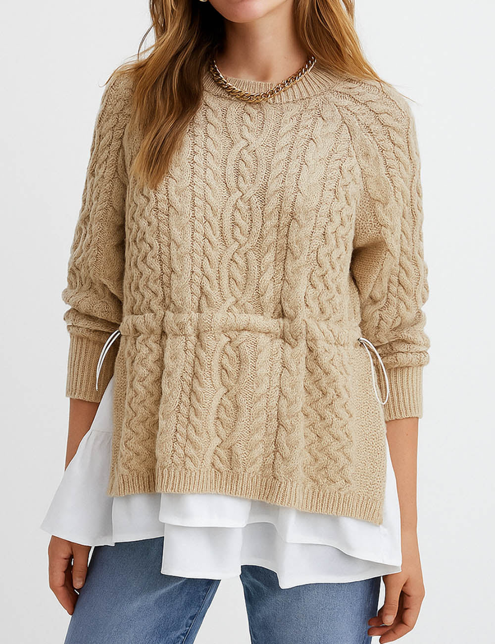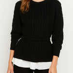 Ladies Color Block Cable Knit Fake 2PCS Sweater Top
