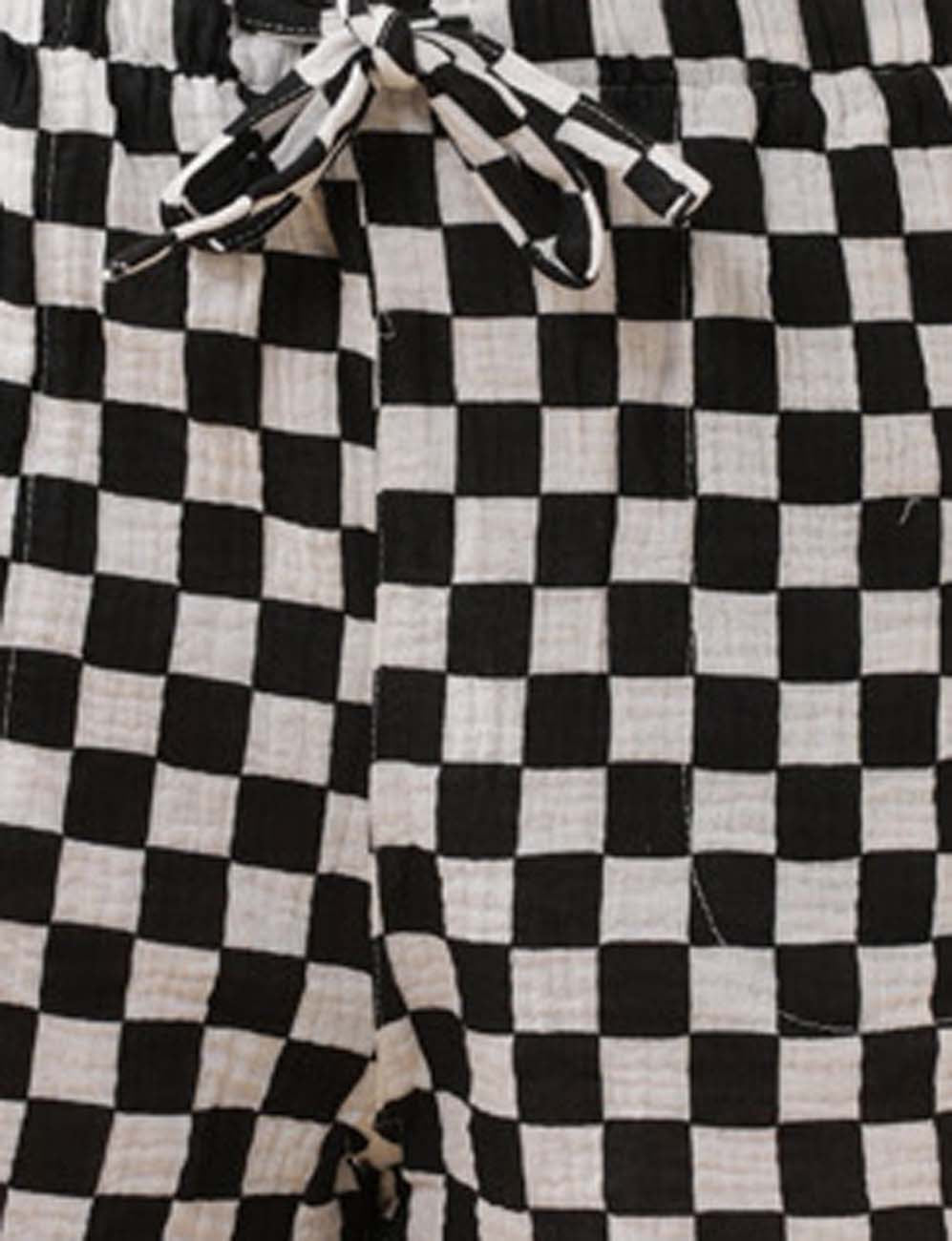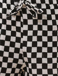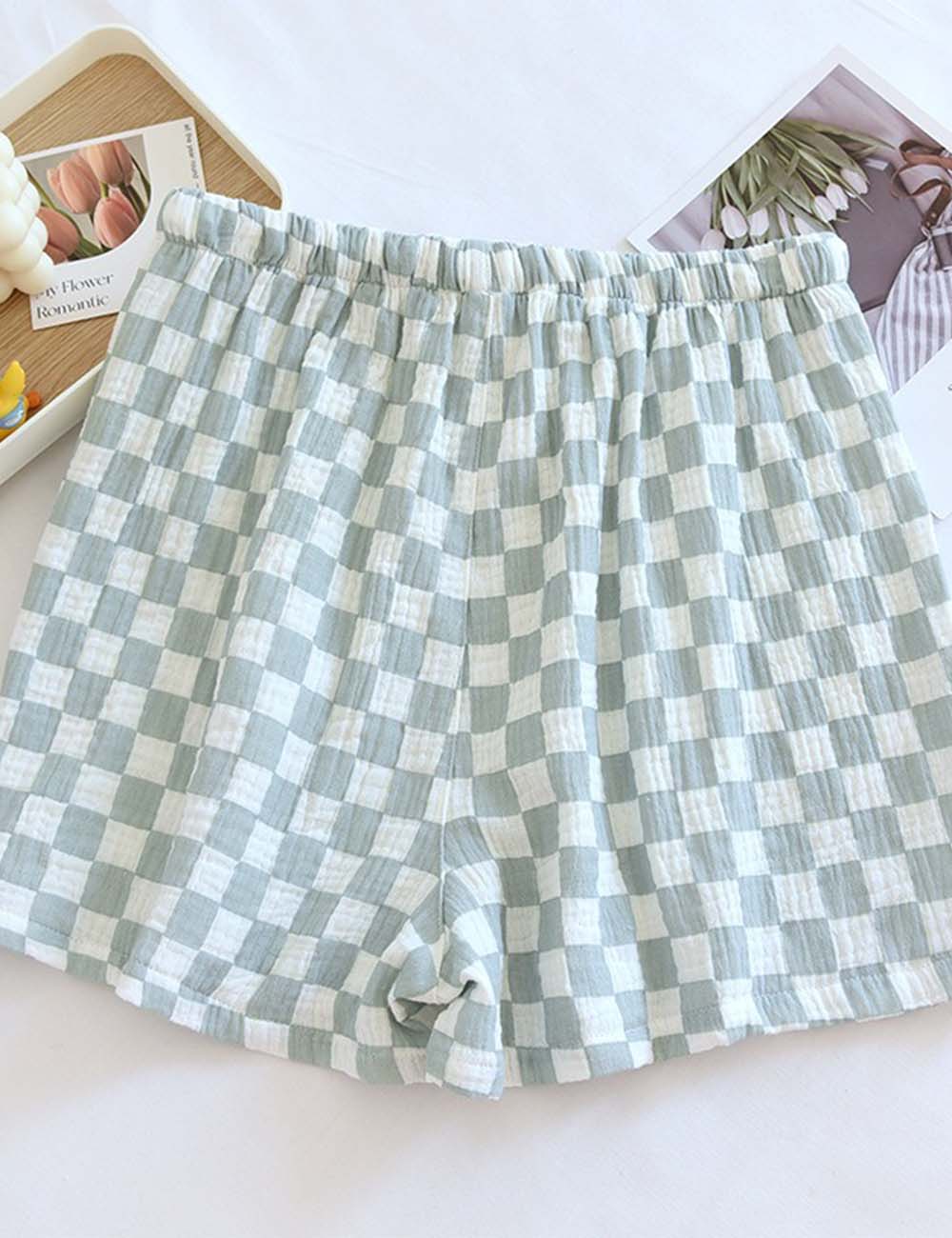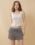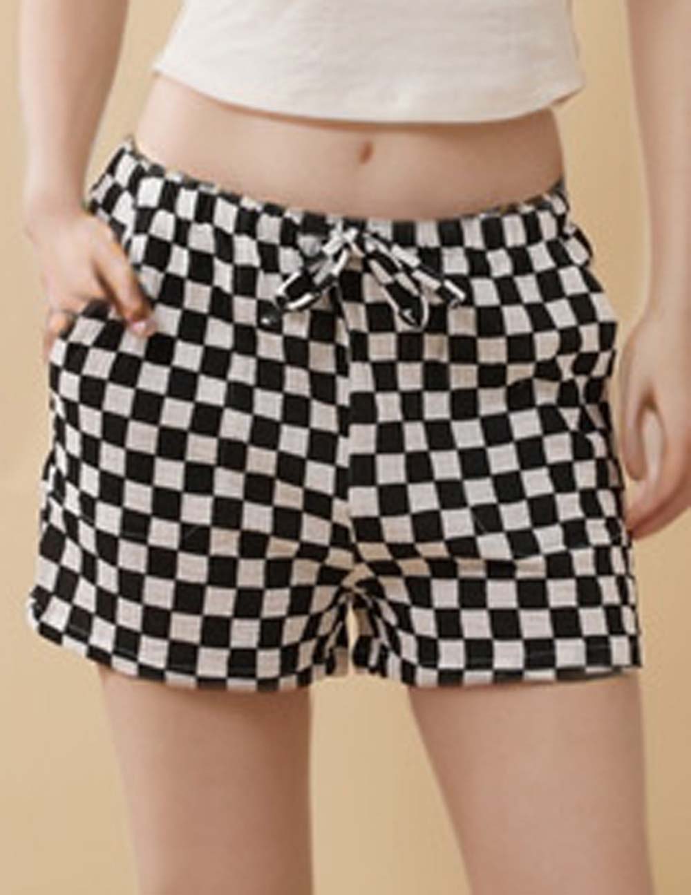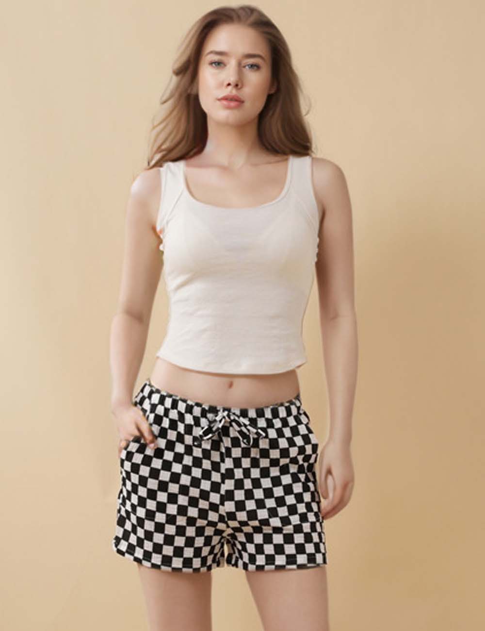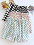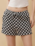 Ladies Color Block Checked Drawstring Loungewear Shorts