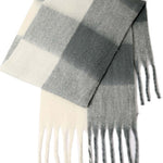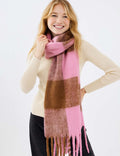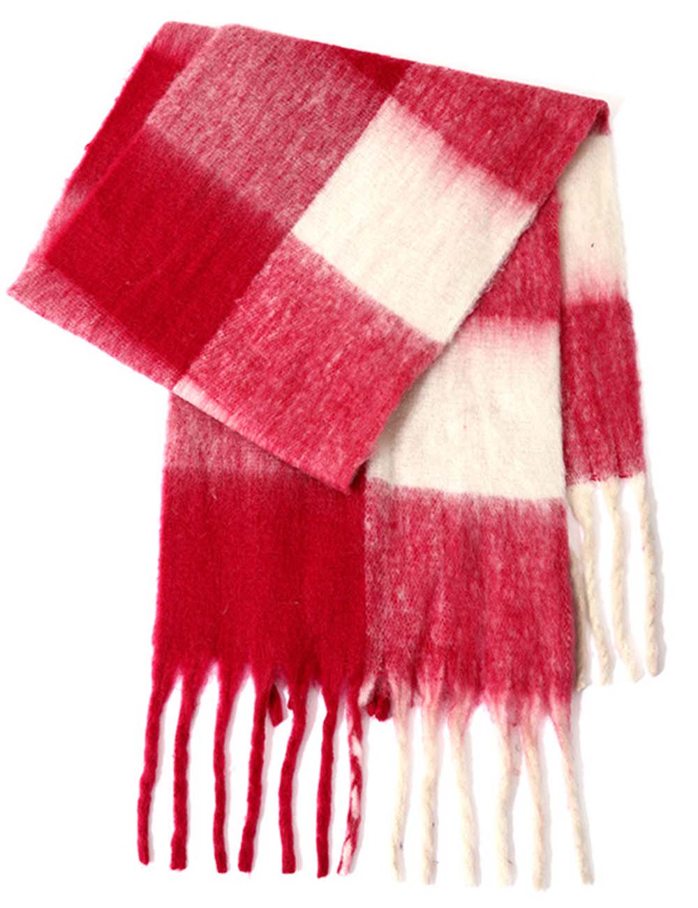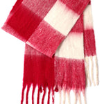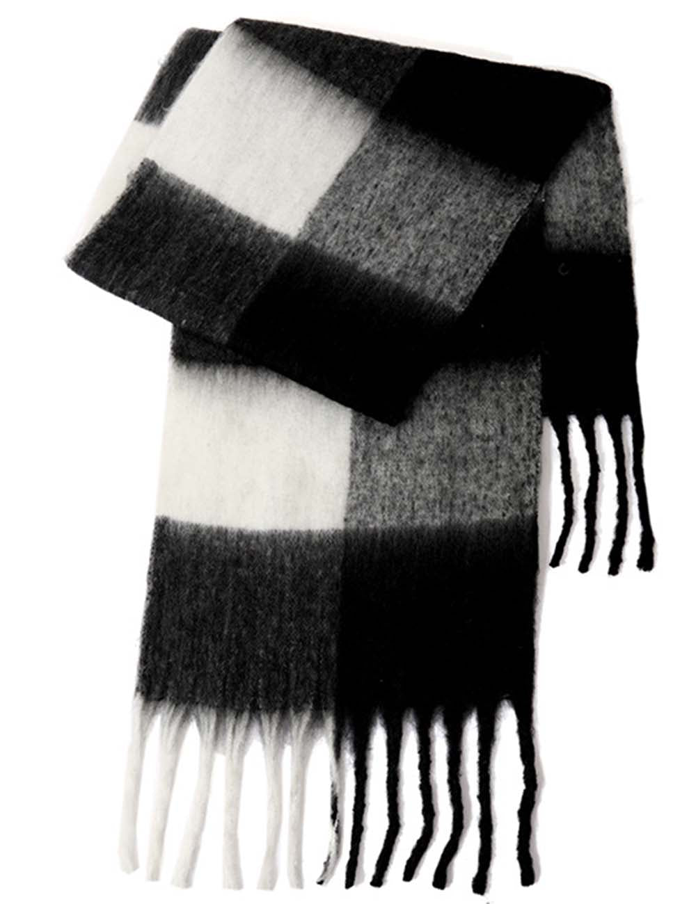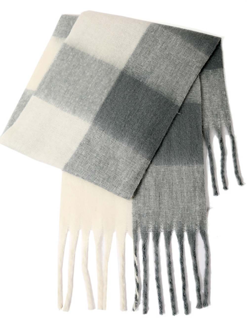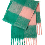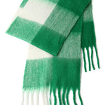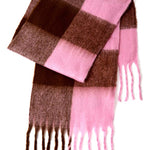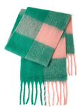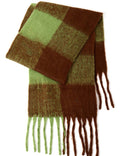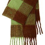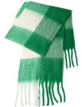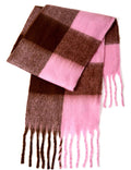 Ladies Color Block Checked Mohair Fringe Knit Scarf