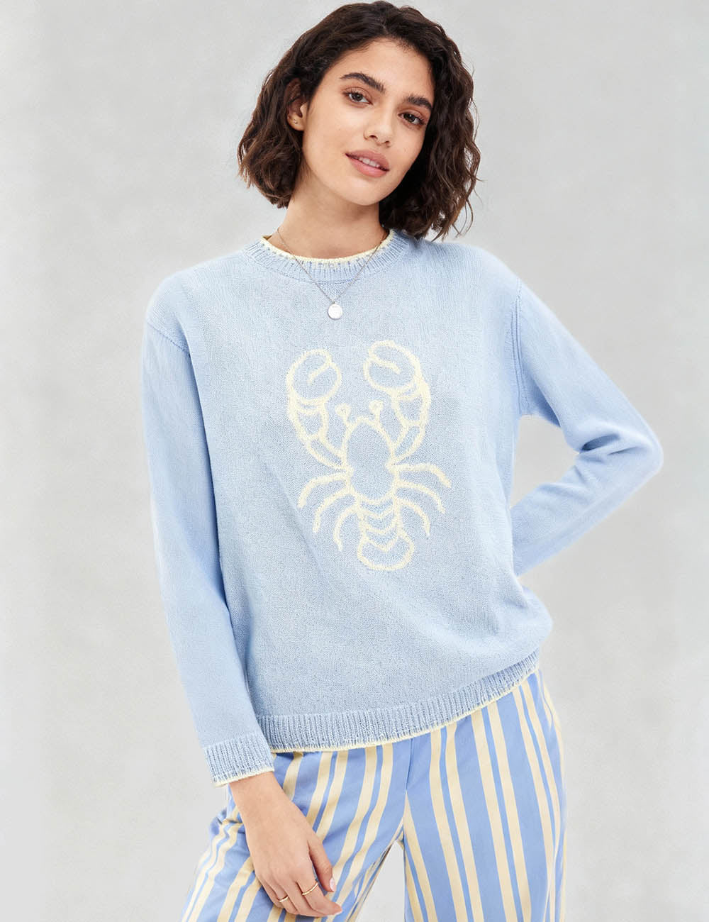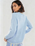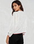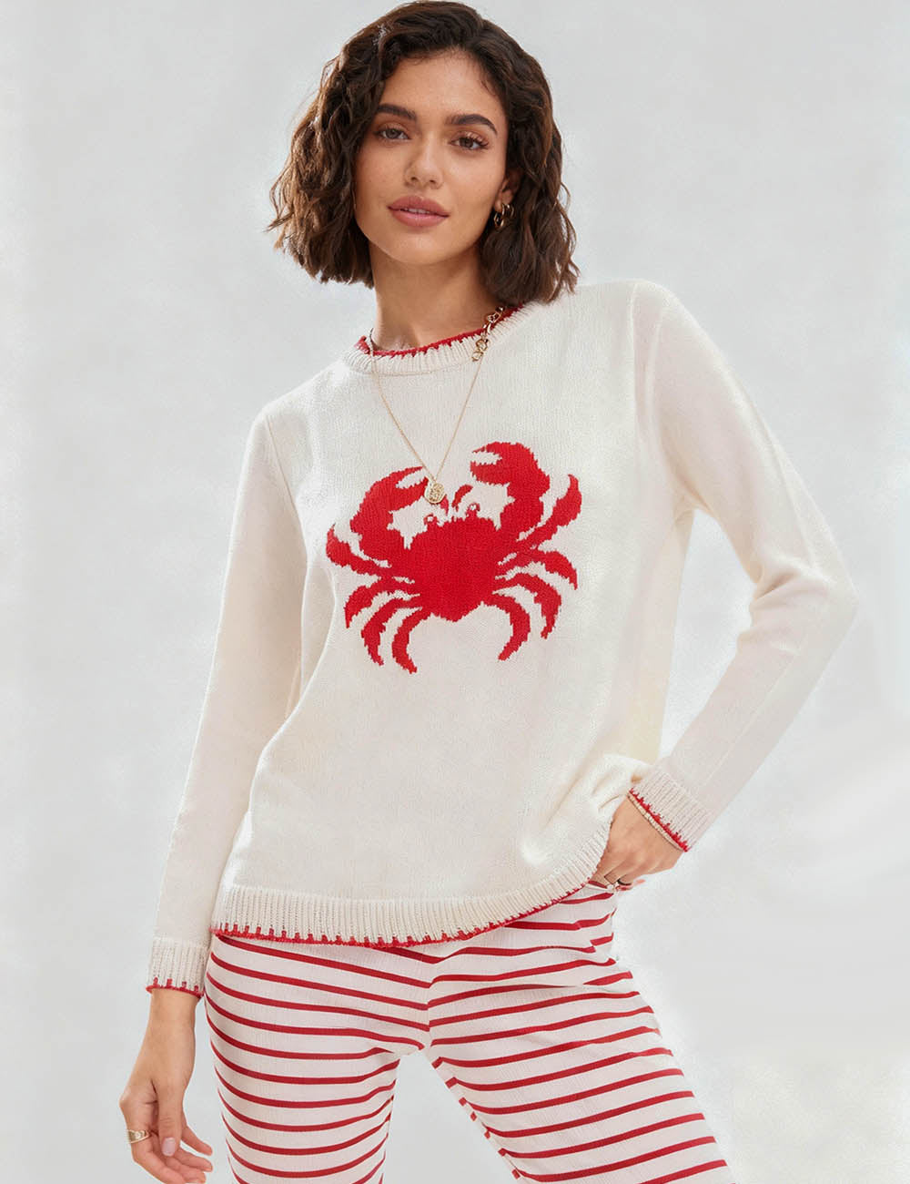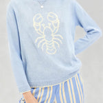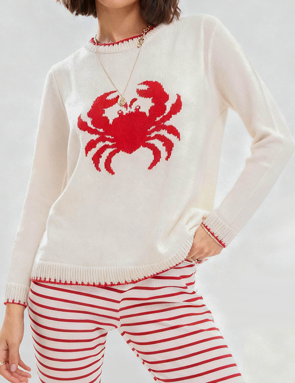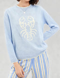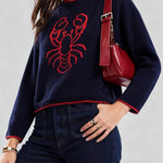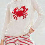 Ladies Color Block Crab Graphic Round Neck Sweater