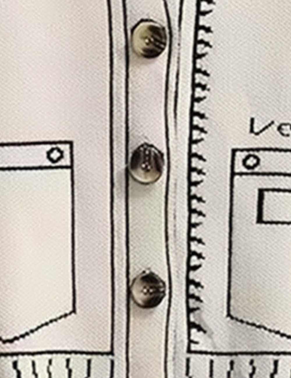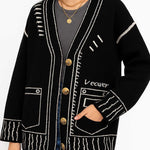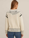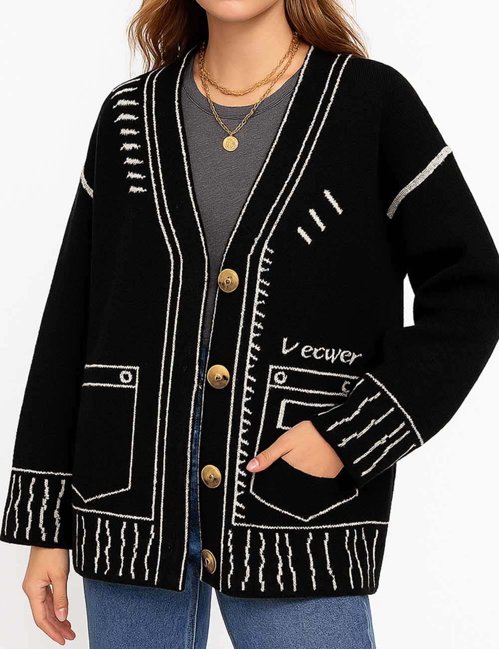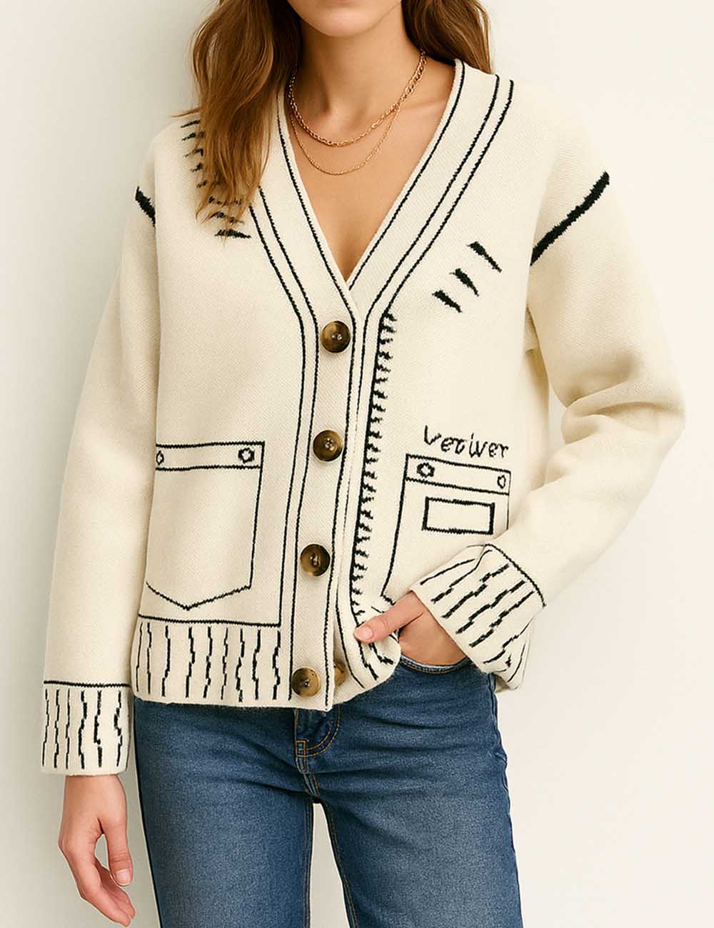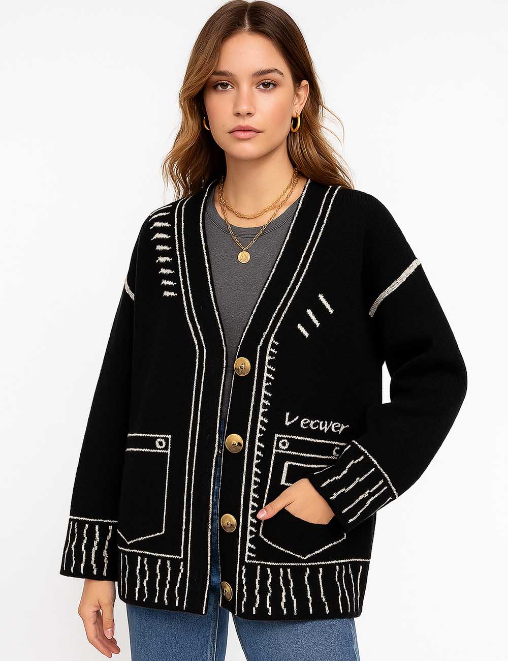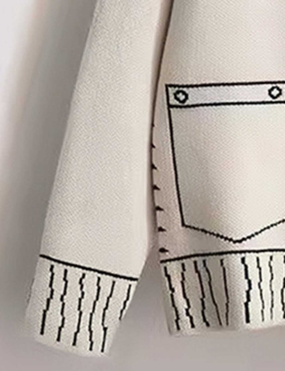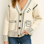 Ladies Color Block Doodle Long Sleeves Knitted Cardigan