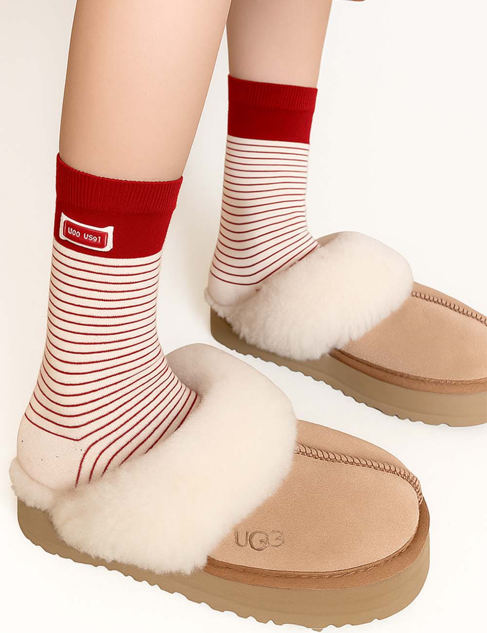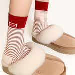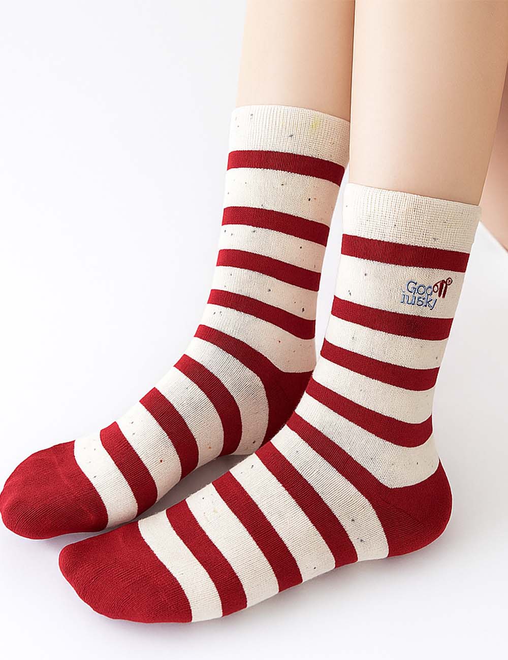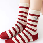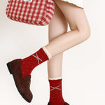 Ladies Color Block Dot Striped Bow Knit Midi Calf Socks