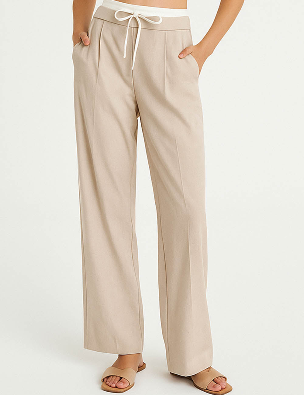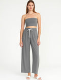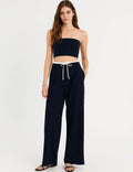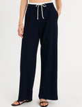 Ladies Color Block Elastic Waist Drawstring Wide Leg Pants